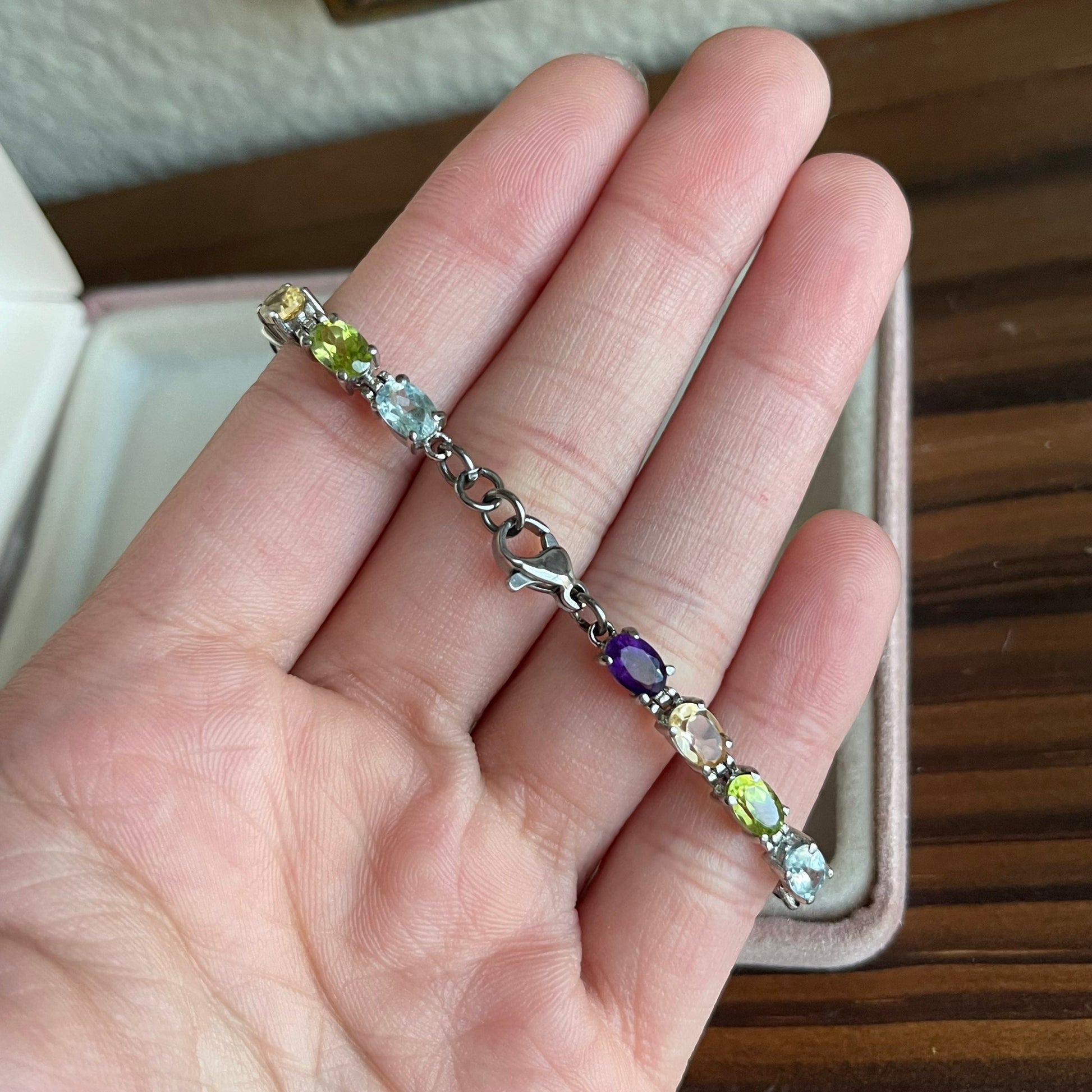 925 Sterling Silver Gemstone glass rhinestone Bracelet