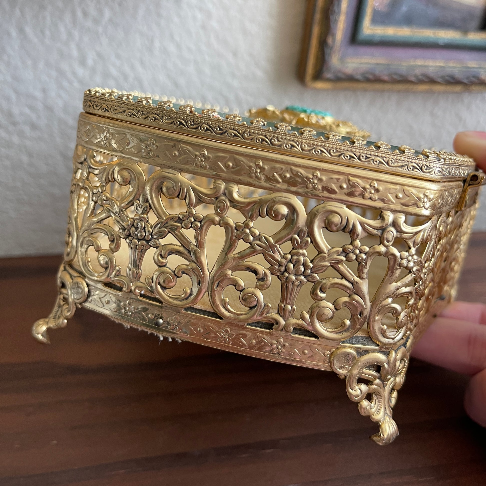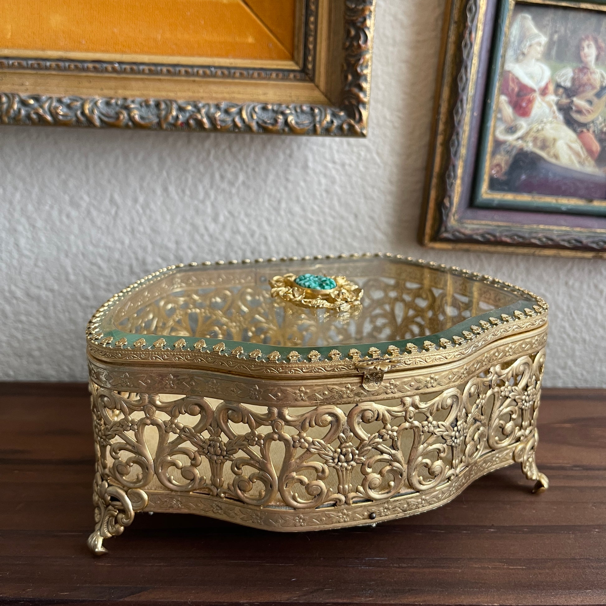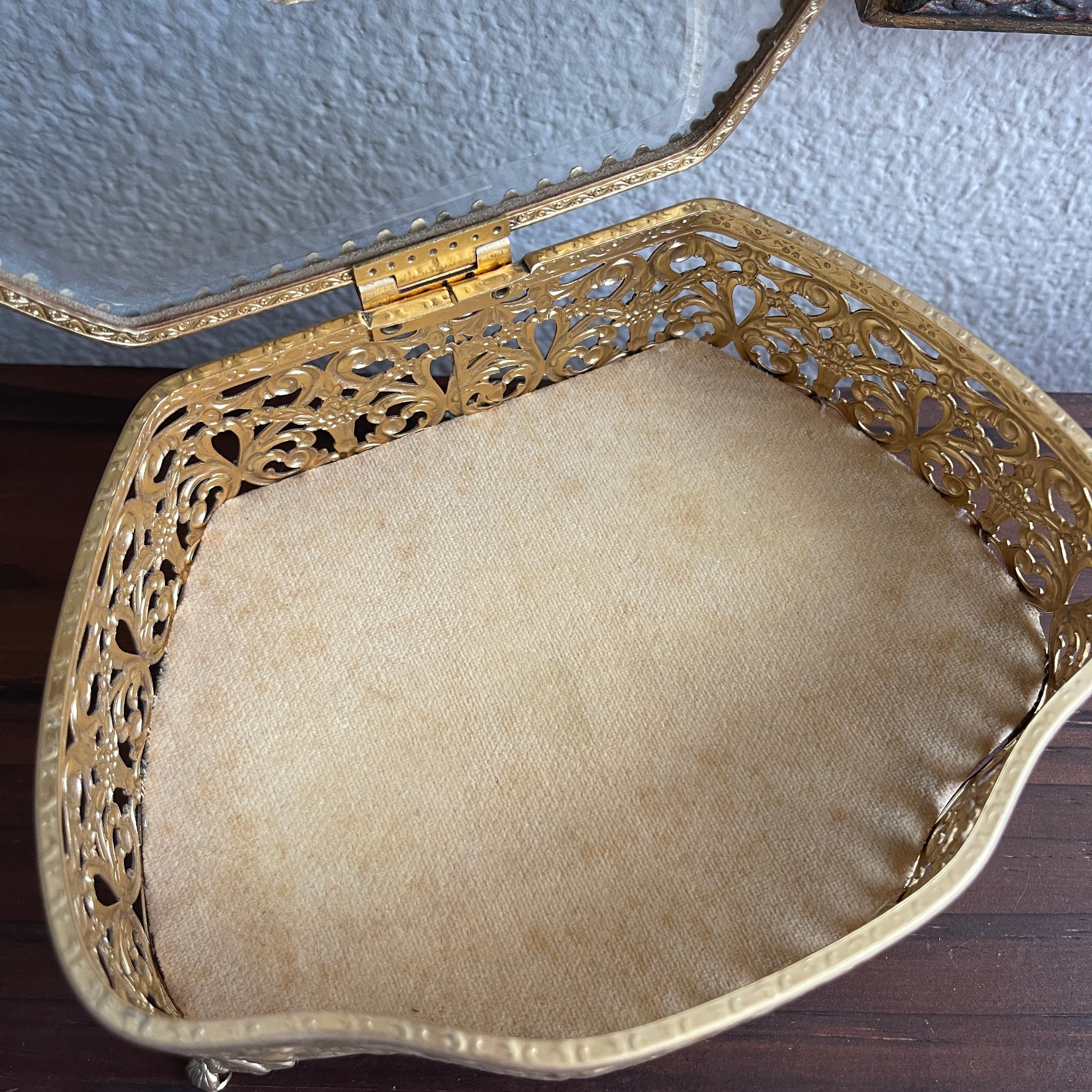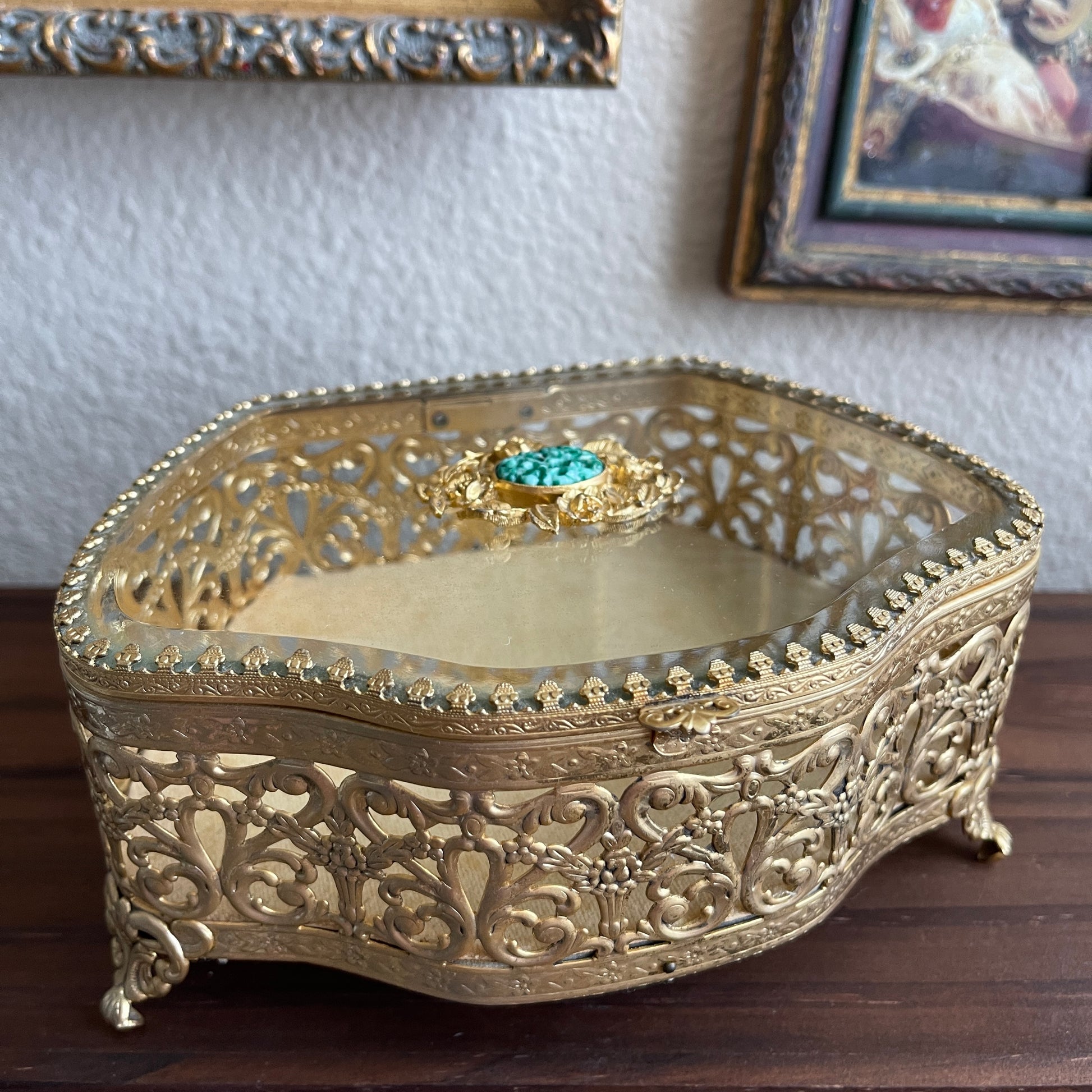 Art Nouveau Gold Gilded Glass Display Jewelry Chests Curio vanity trinket box