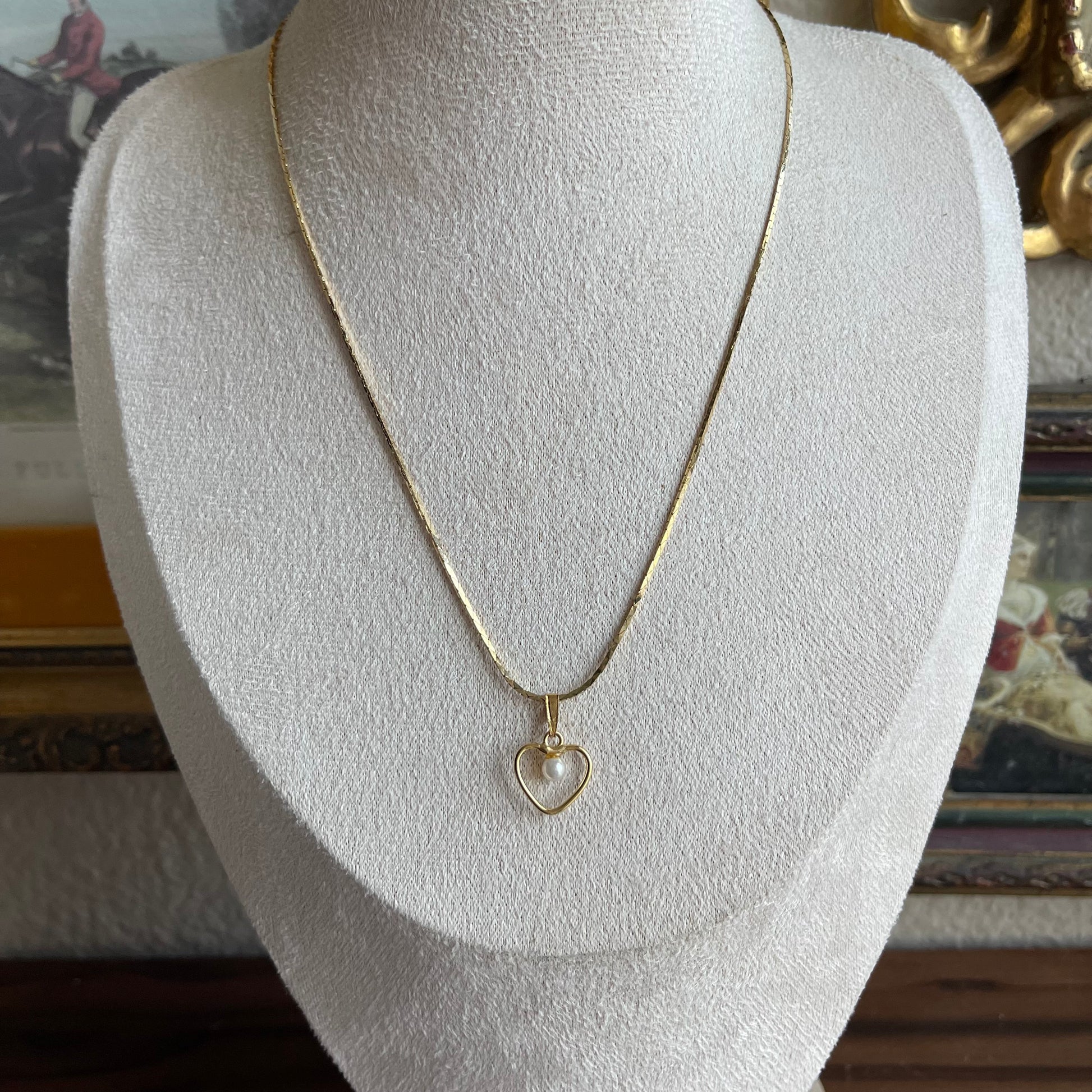 Dainty Gold tone Heart & faux pearl necklace