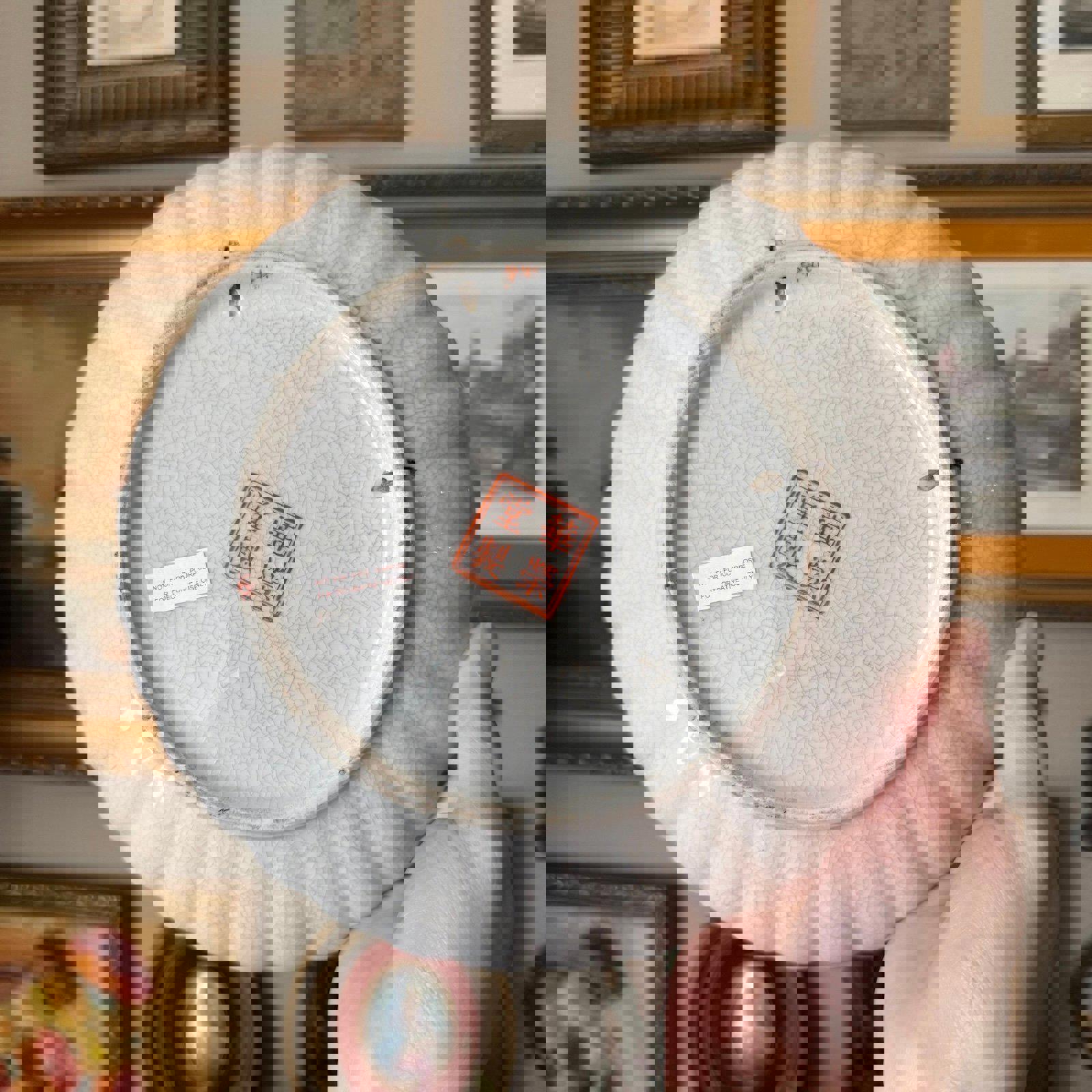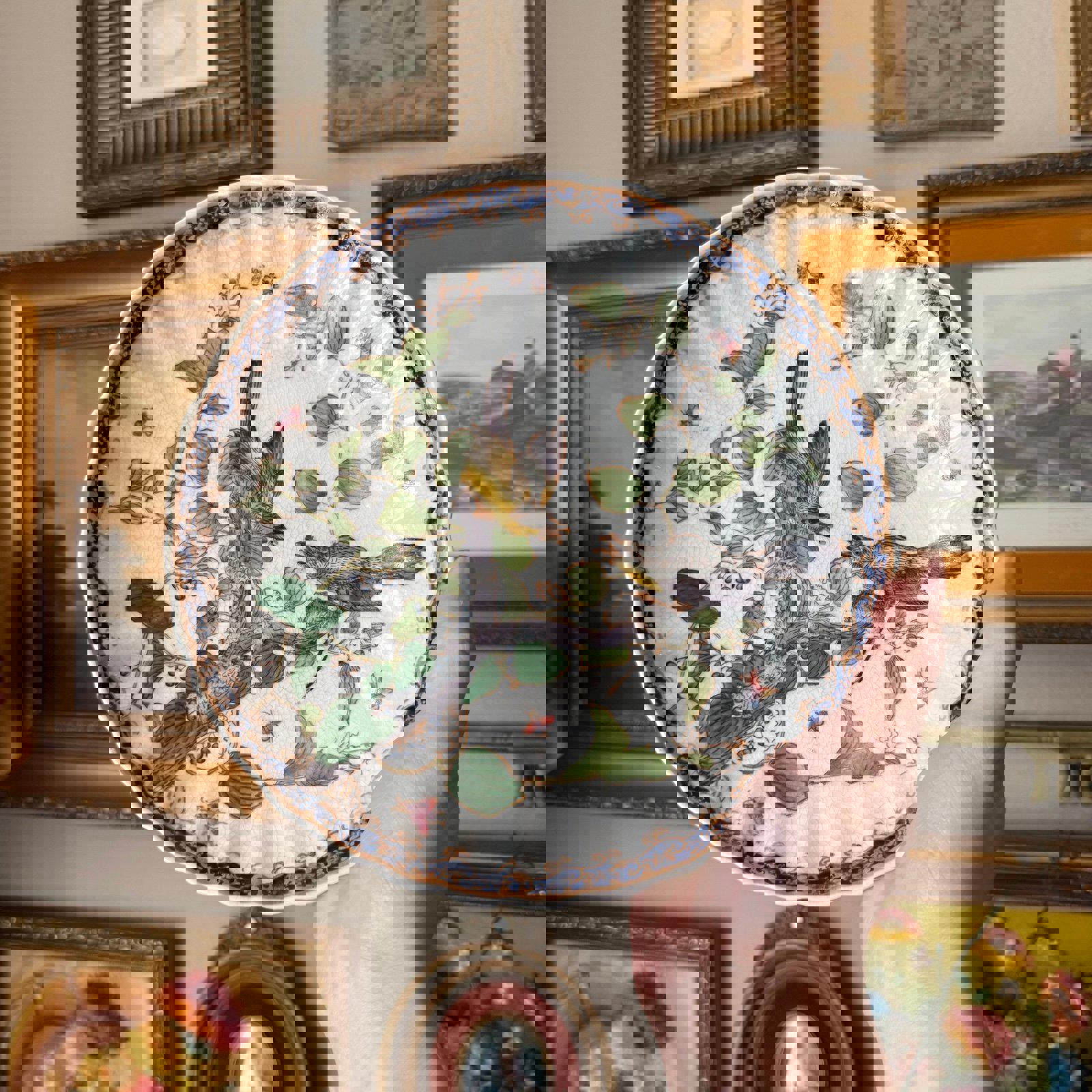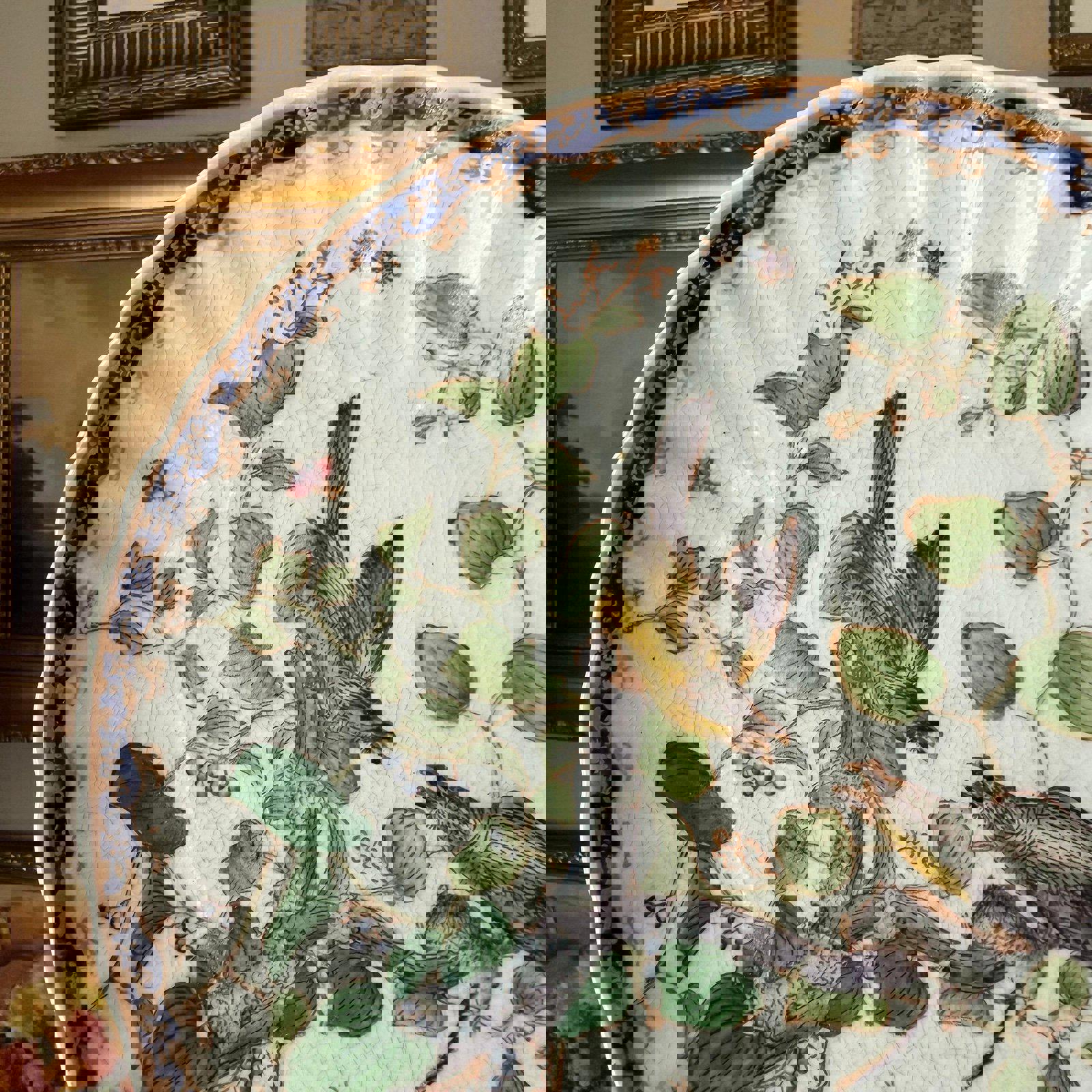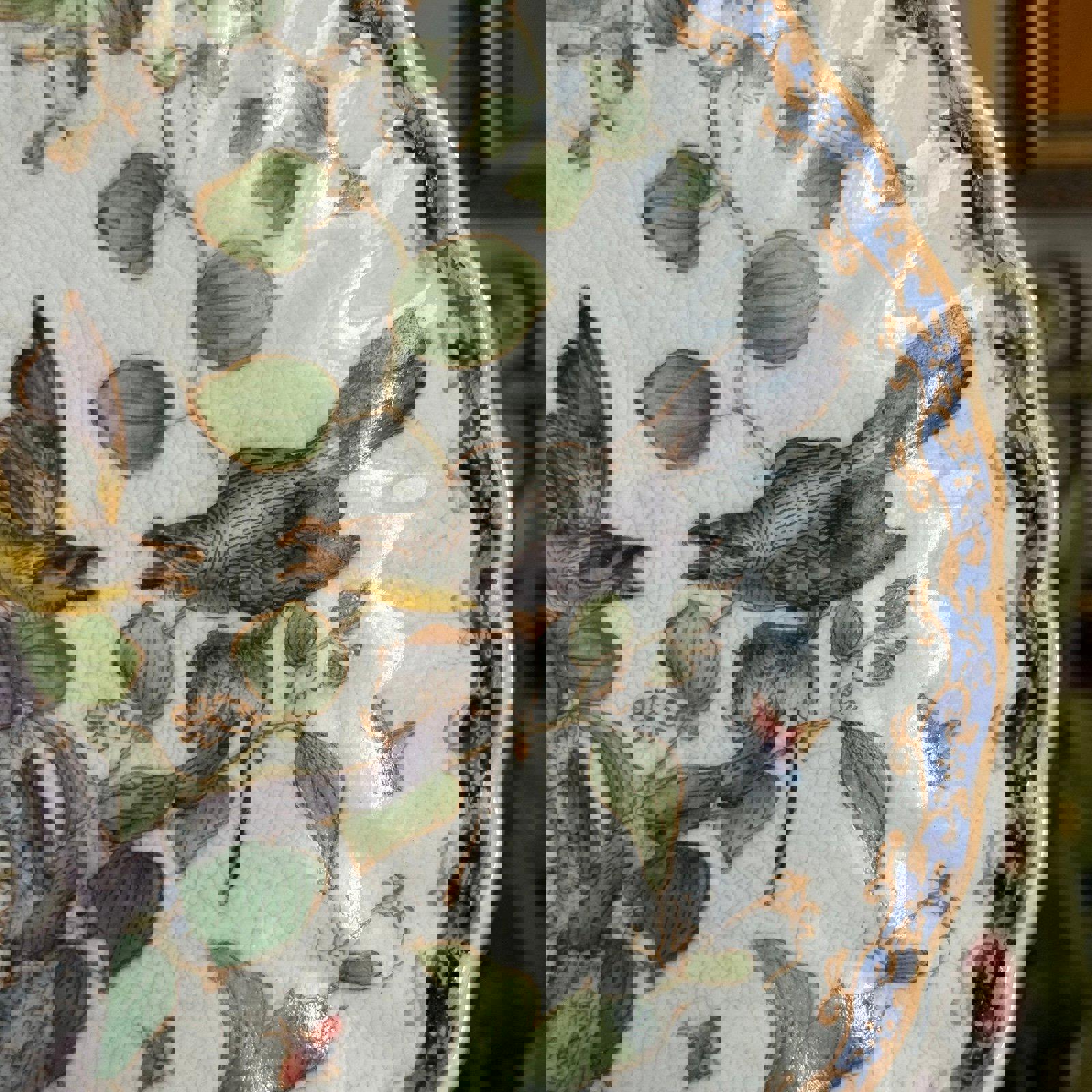 Famille verte-inspired or chinoiserie-style bird and botanical motif with scalloped edges