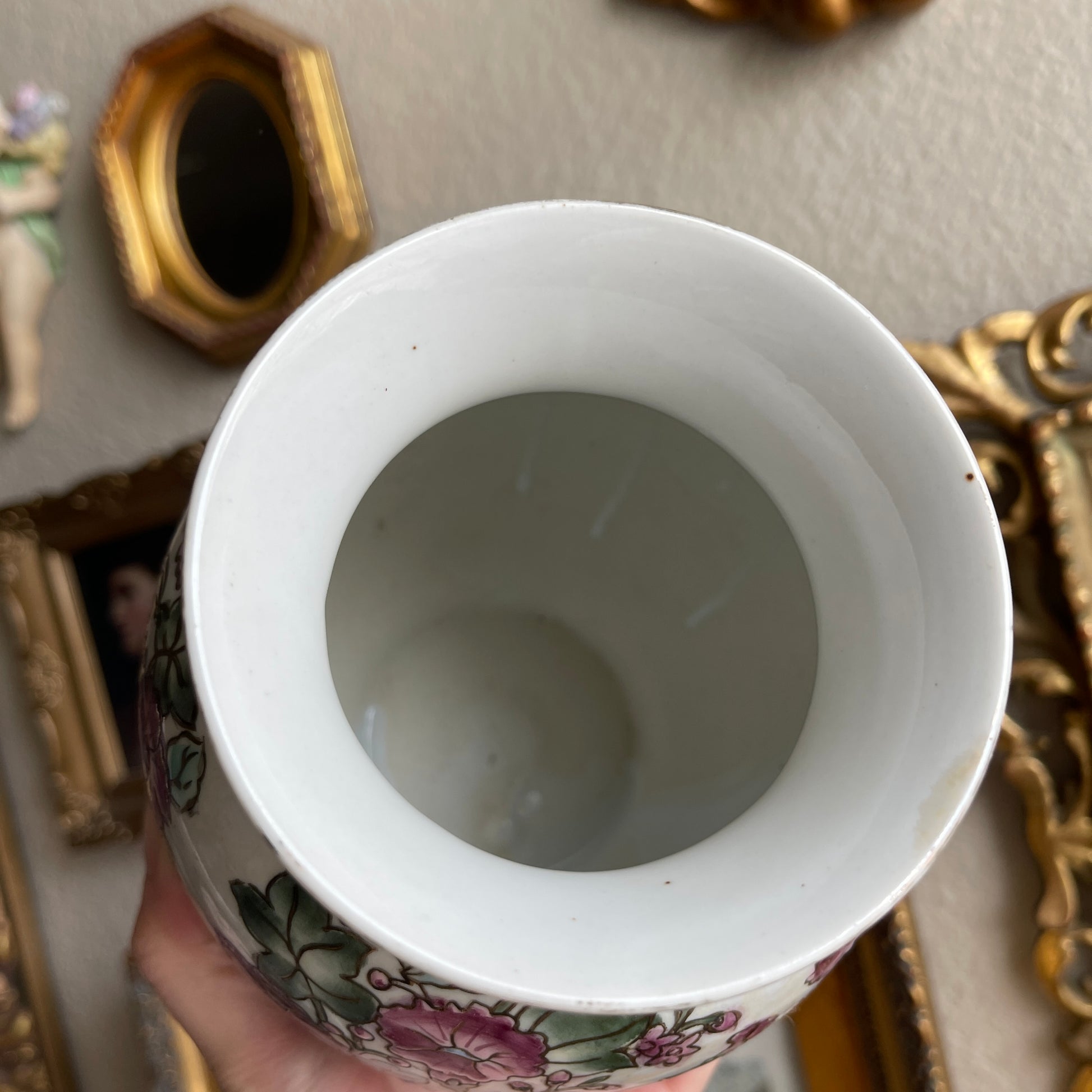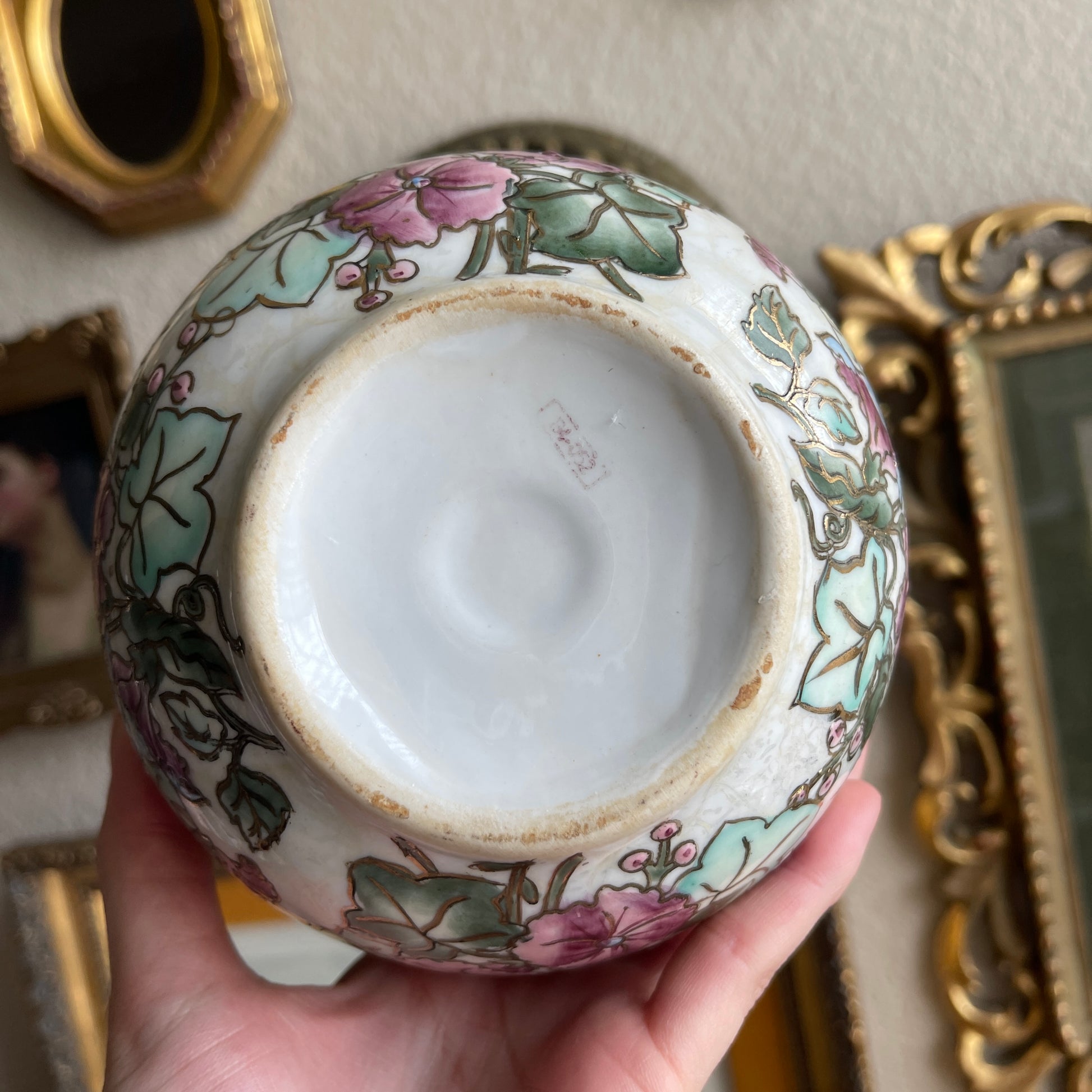 Hand Painted Floral Gold Gilt Purple Petunias Leaves vase