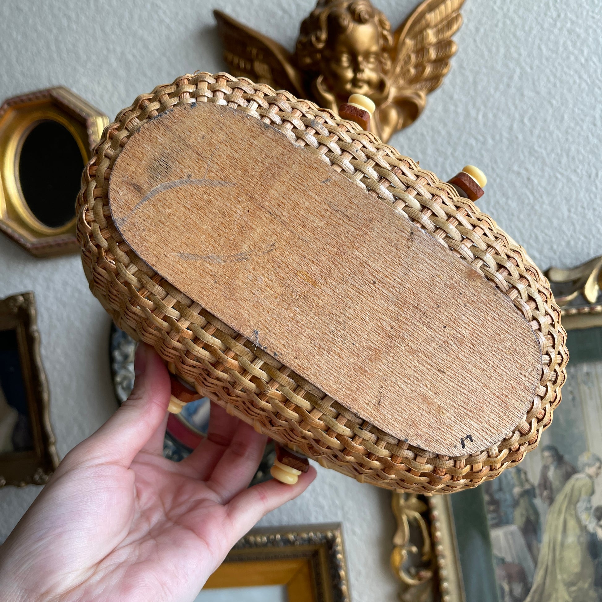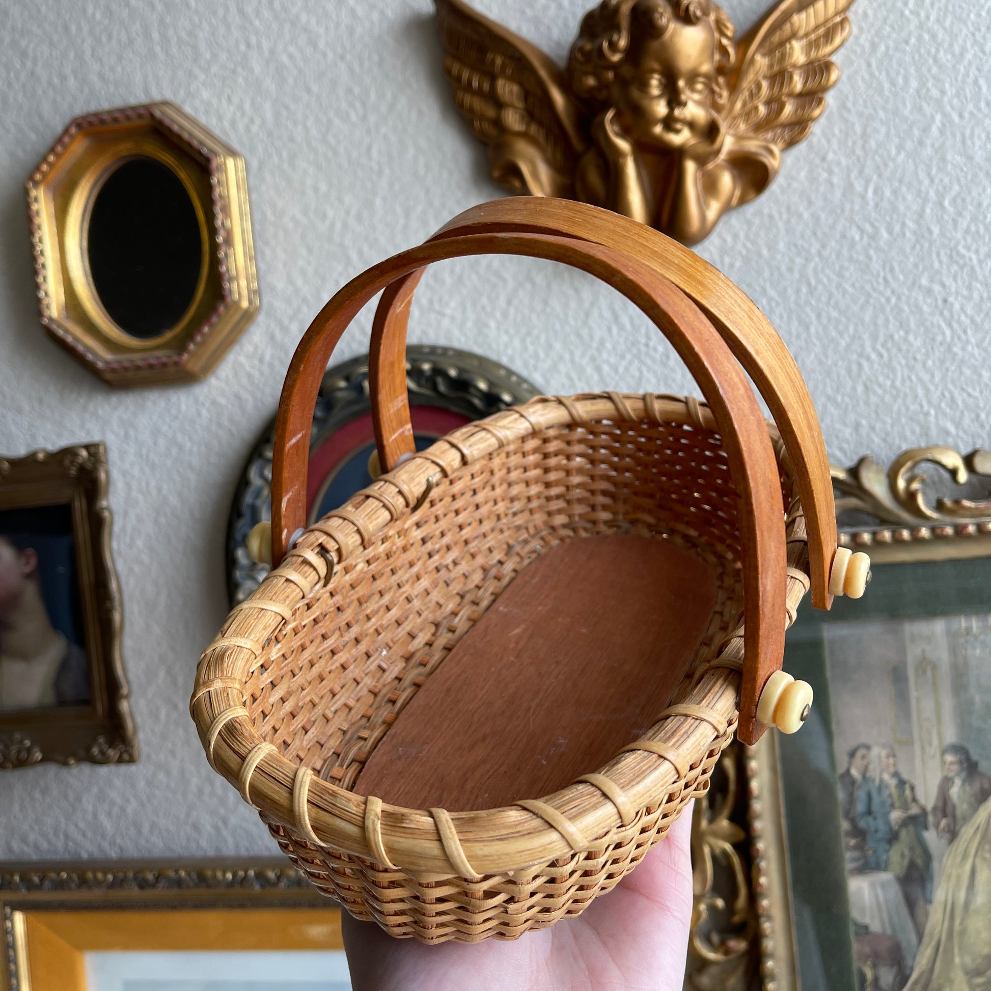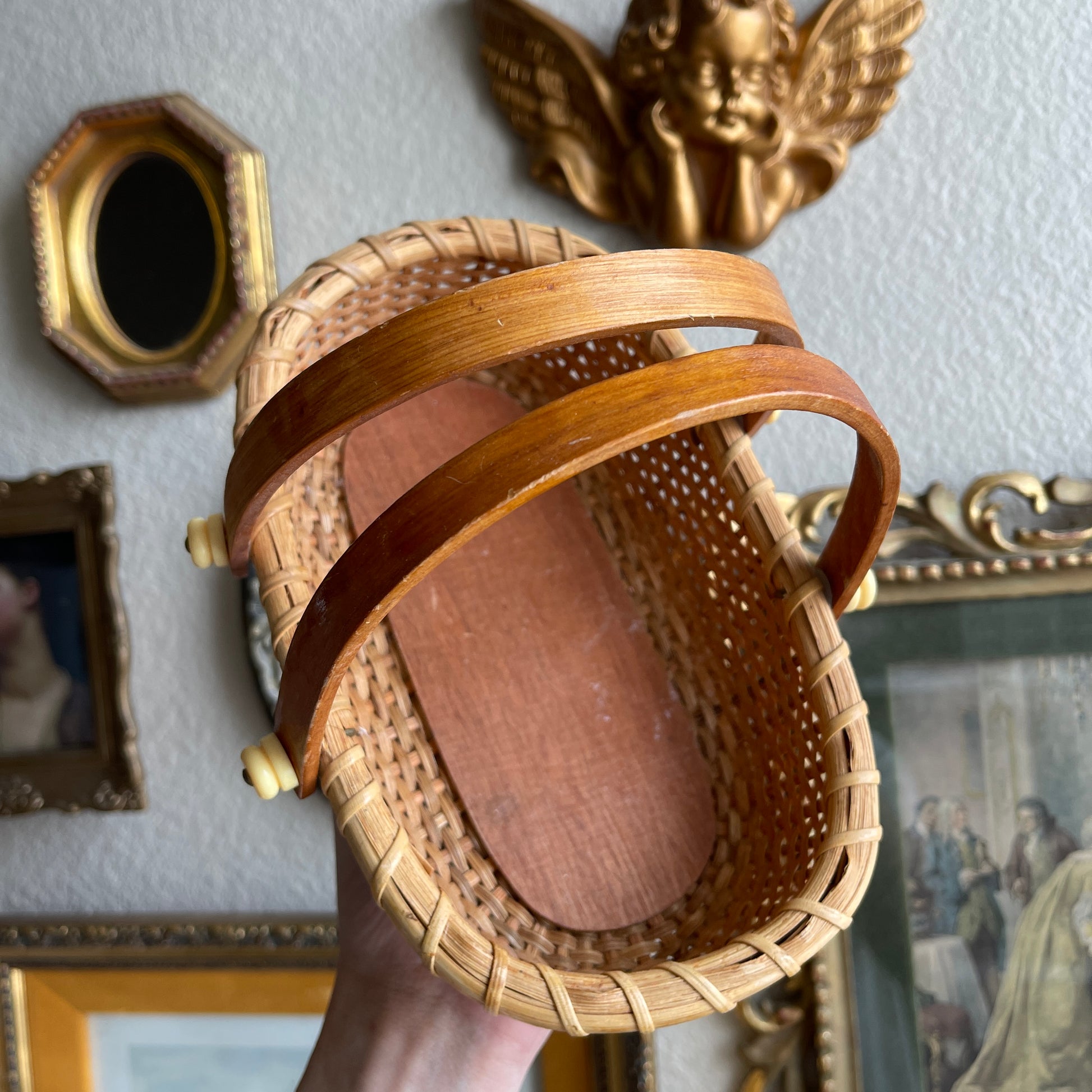 Lightship Style Oval Woven Cane Double Swing Handles basket