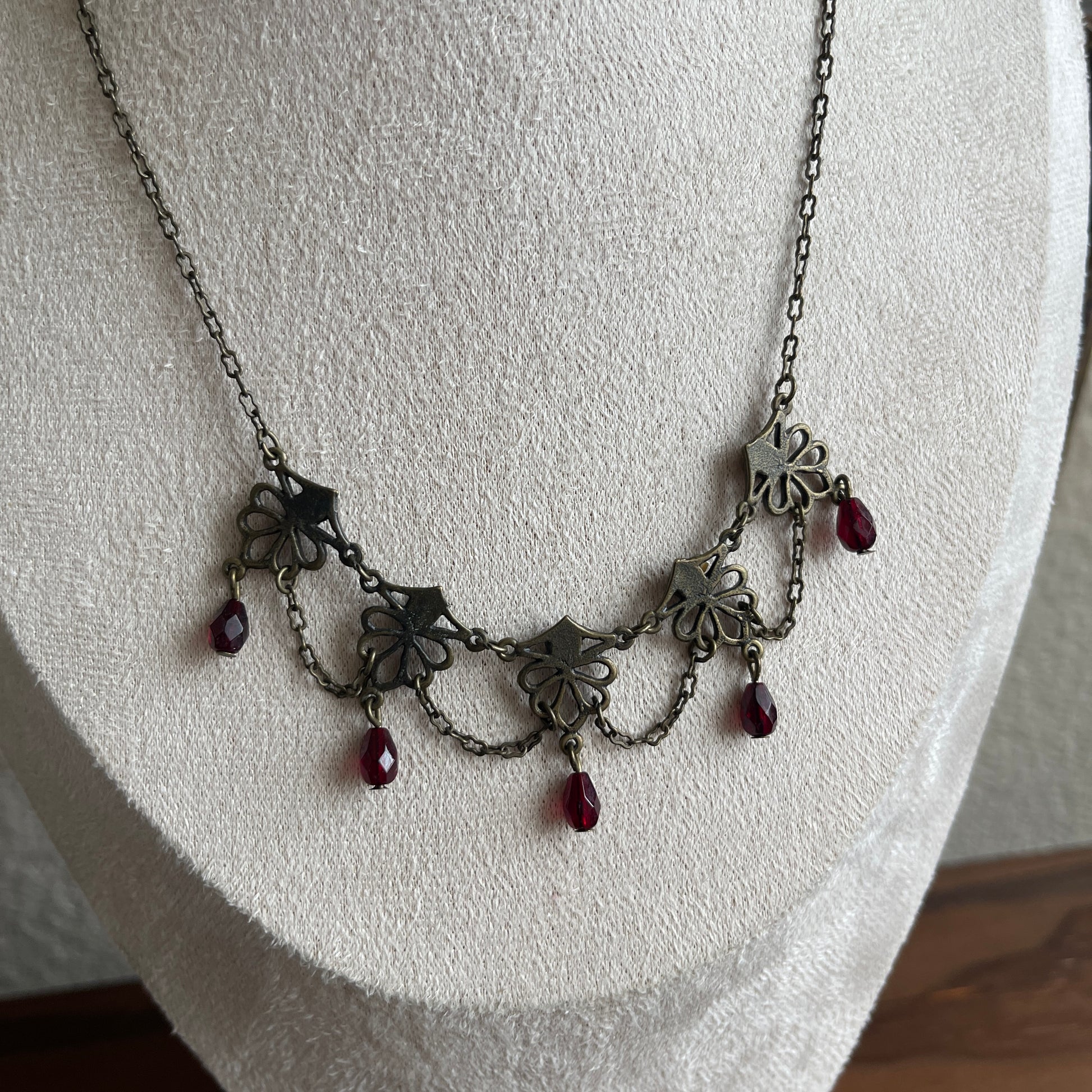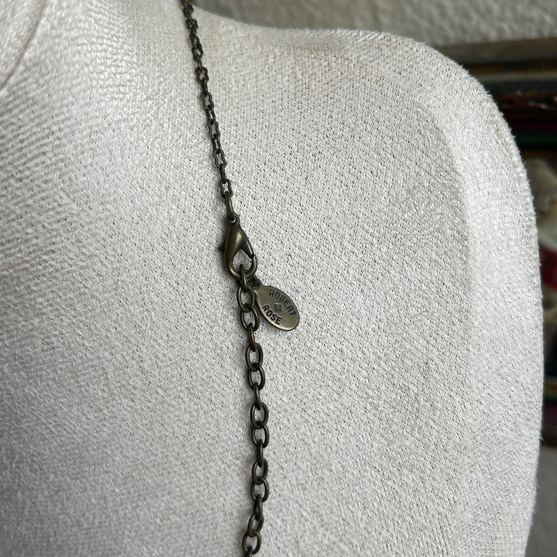 Robert Rose Necklace Amber & Bronze Tone Drape Rhinestone Facted Drop Choker