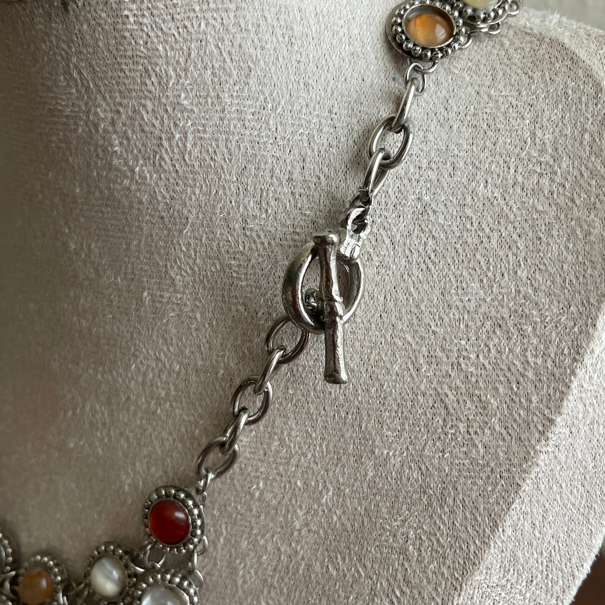 Vintage Indian Silver Tone bib statement carnelian Ethnic agate necklace