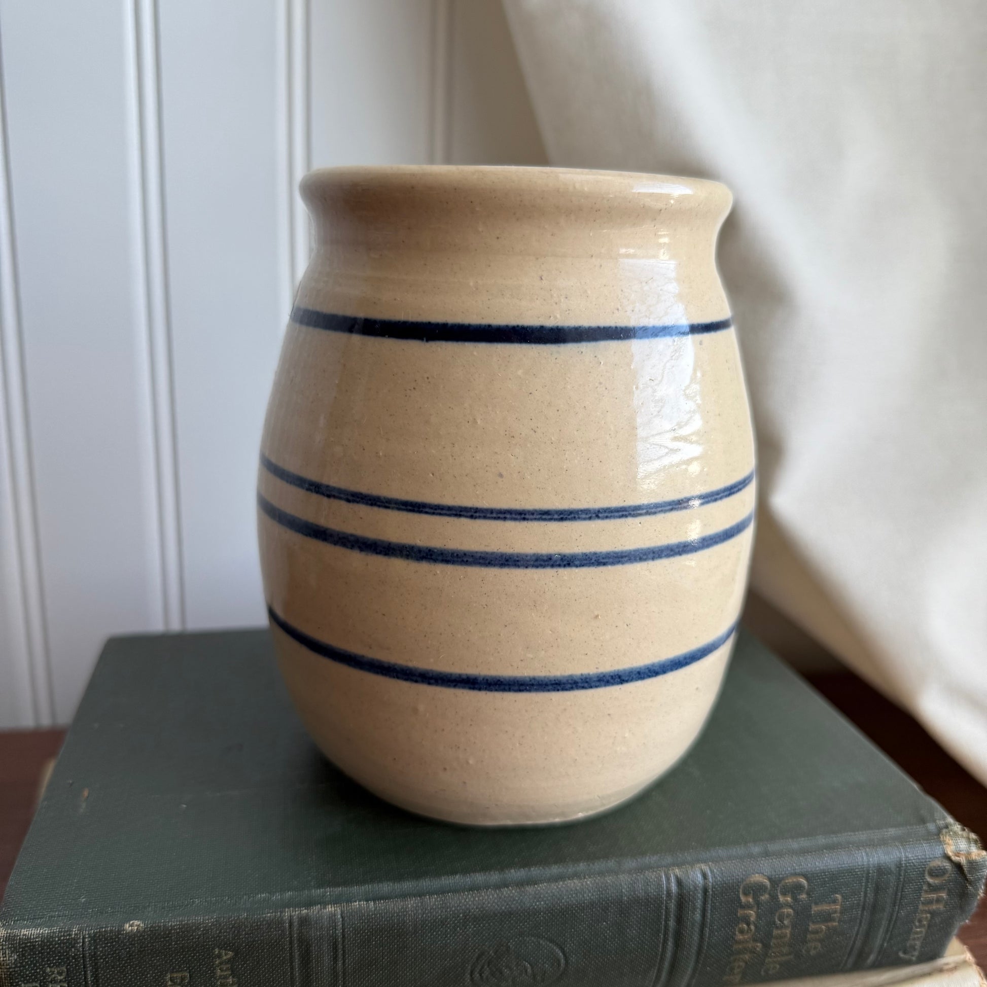 Small Crock Off-White Blue Stripes Kenneth Wingo Pottery