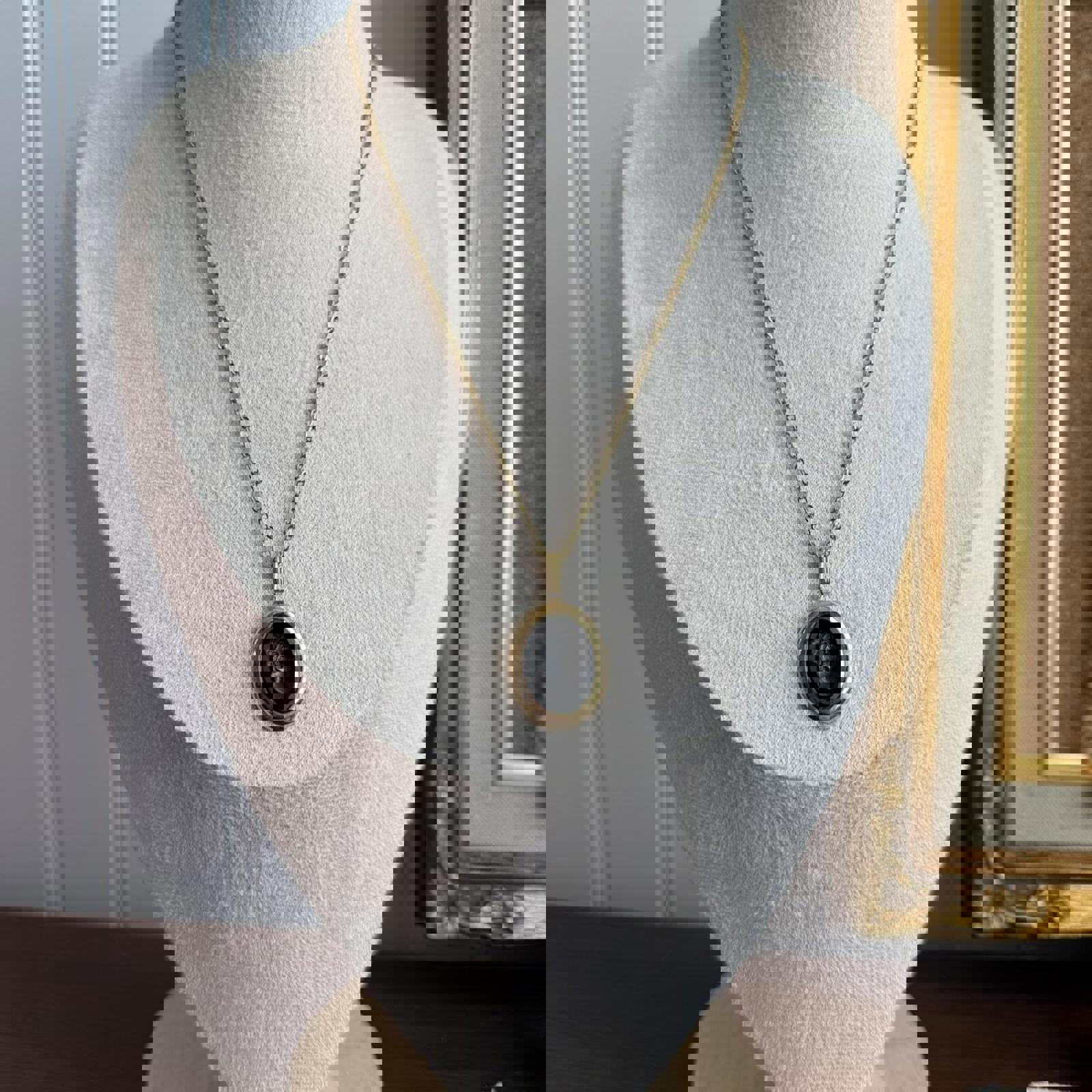 Vintage 1970s Sarah Coventry midnight cameo pendant Necklace