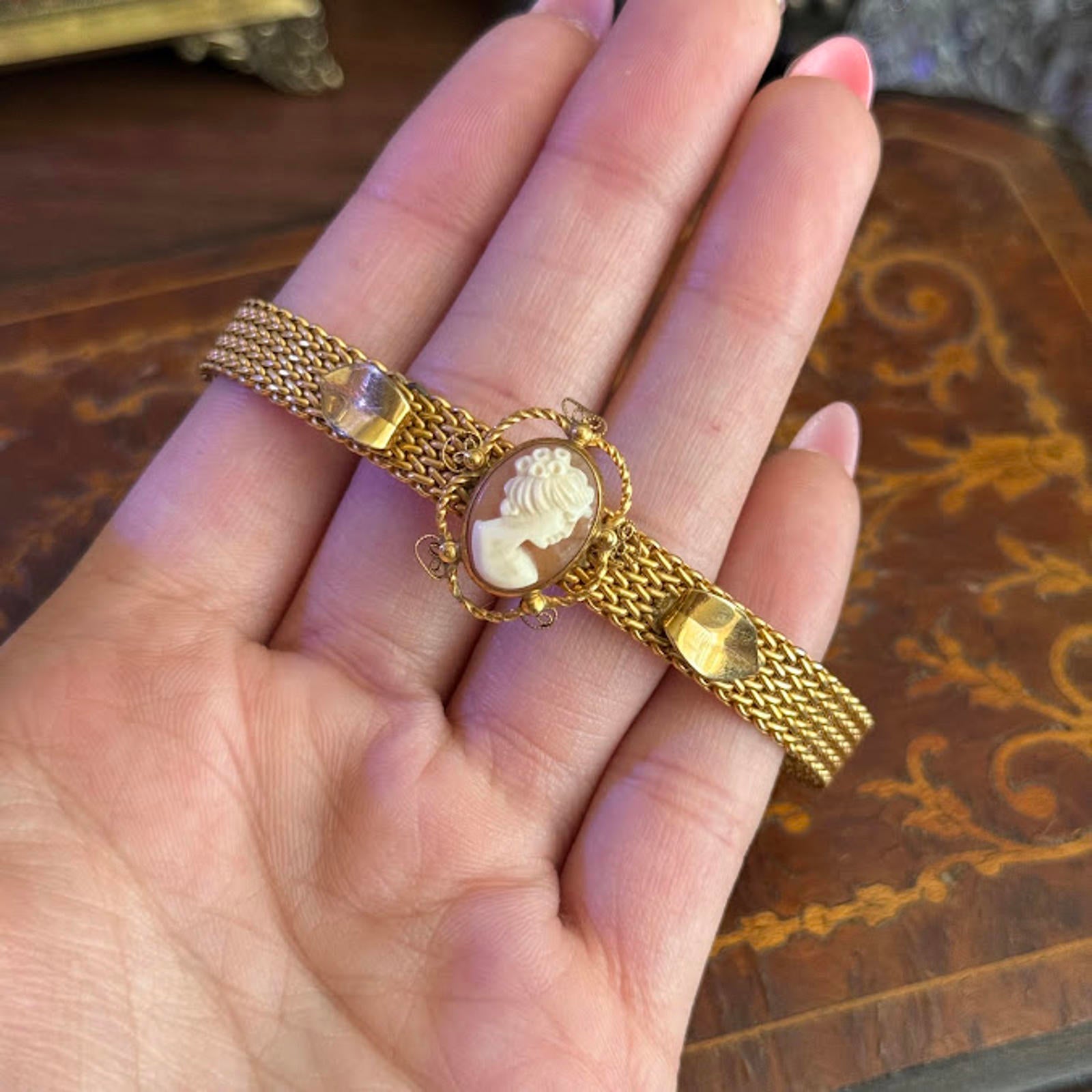Vintage Art Deco 12k gold filled Cameo Mesh Bracelet