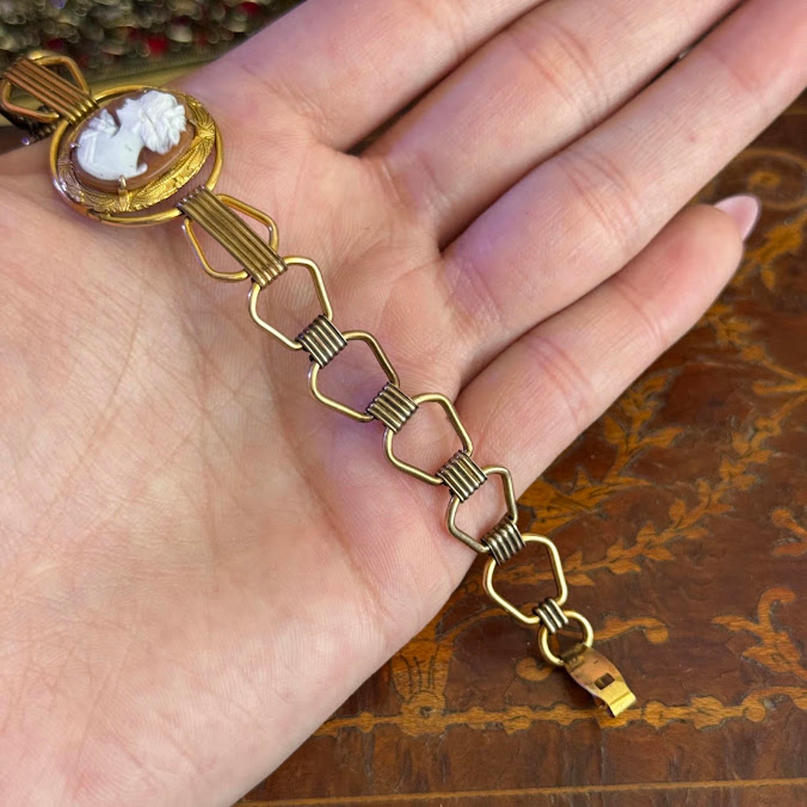 Vintage Art Deco Carved Shell Cameo Bracelet 1/20 10k AMCO