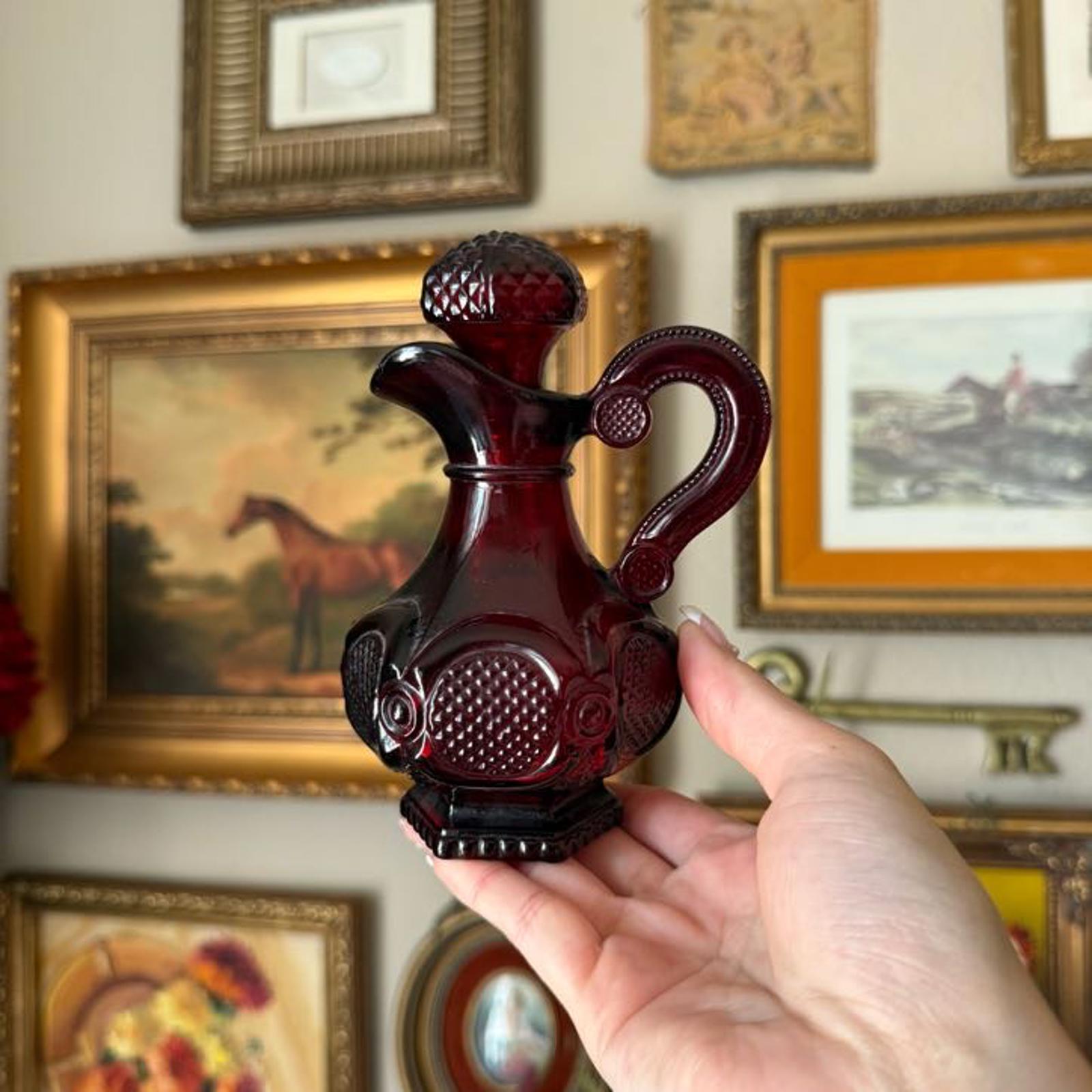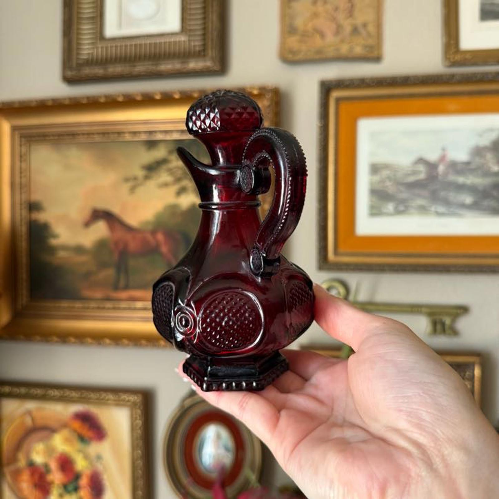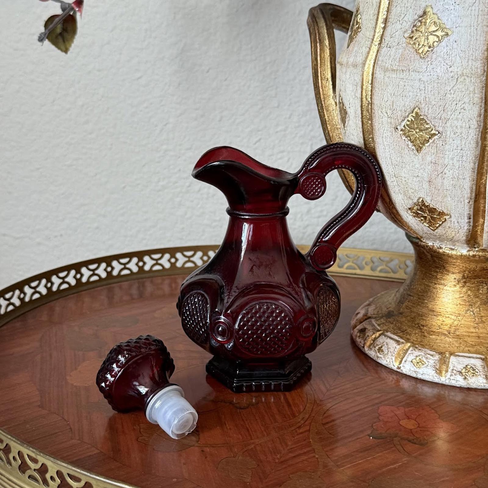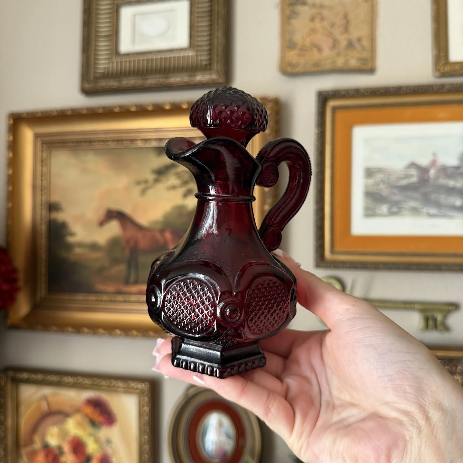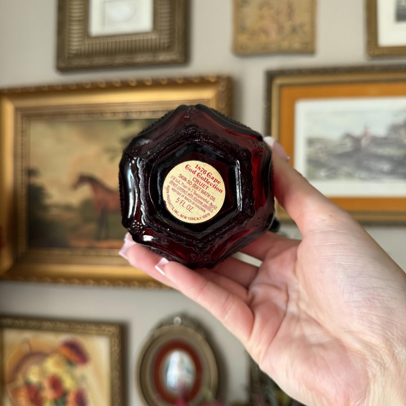 Vintage Avon 1876 Cape Cod Collection Ruby Red Glass Oil Bottle
