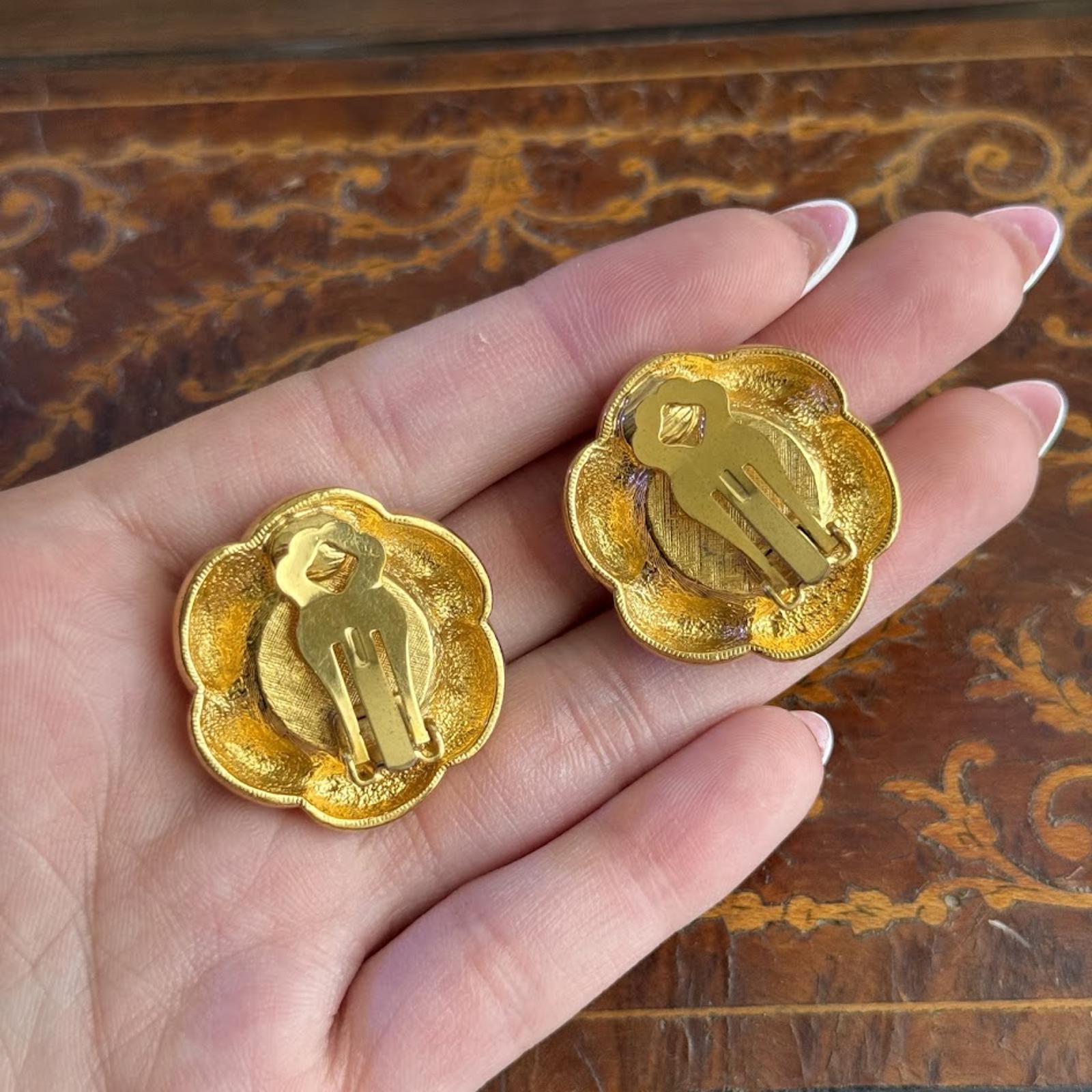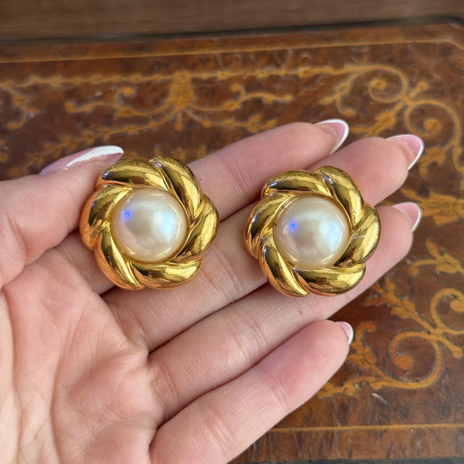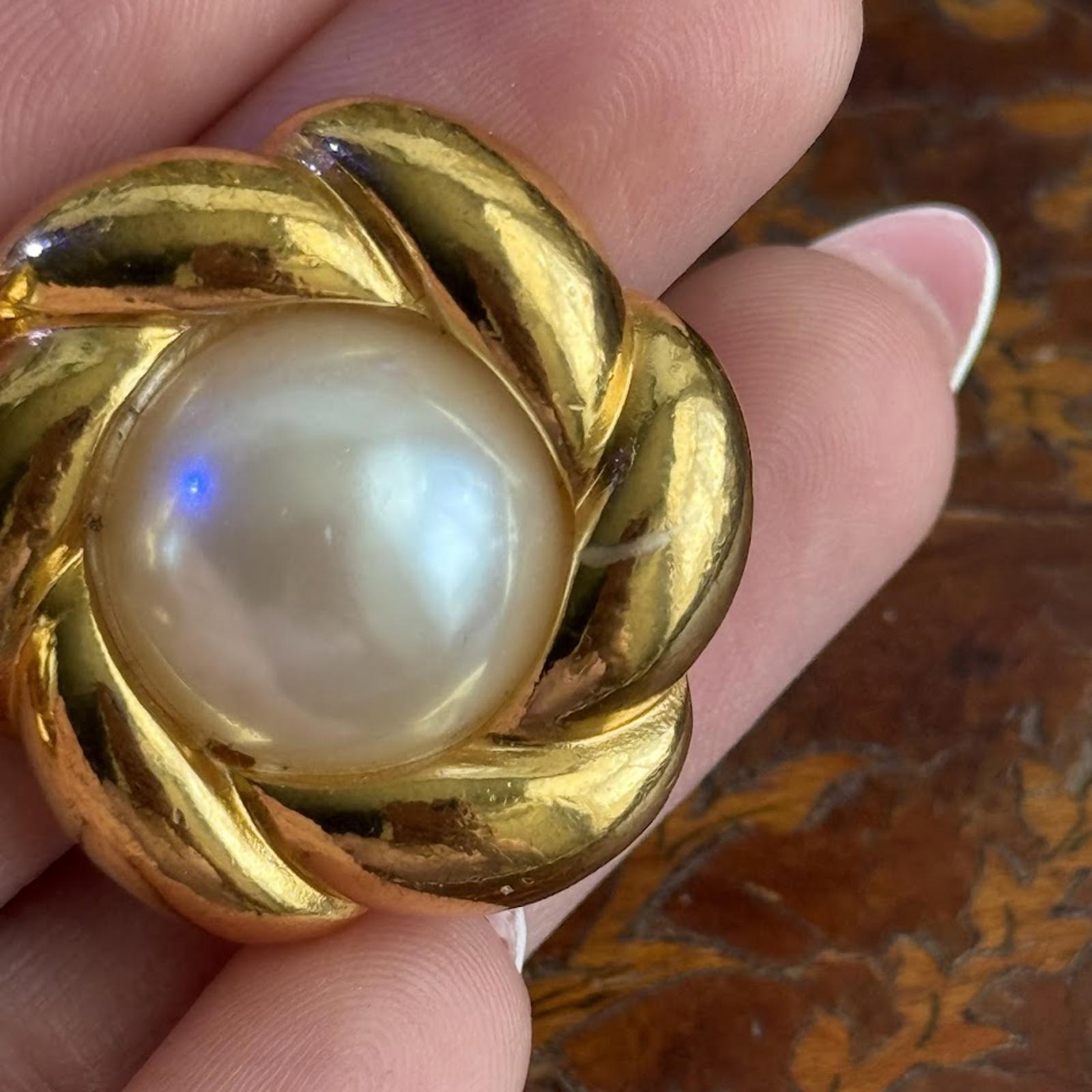 Vintage Avon Faux White Pearl Gold Tone large Clip On Earrings