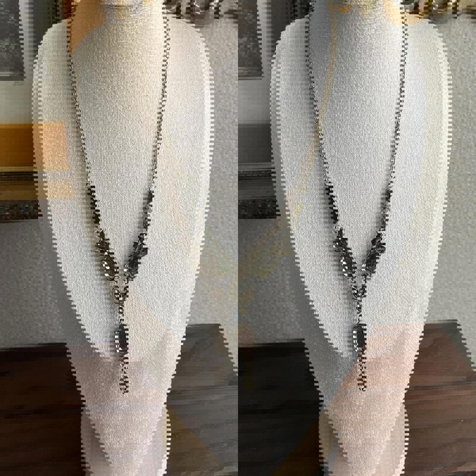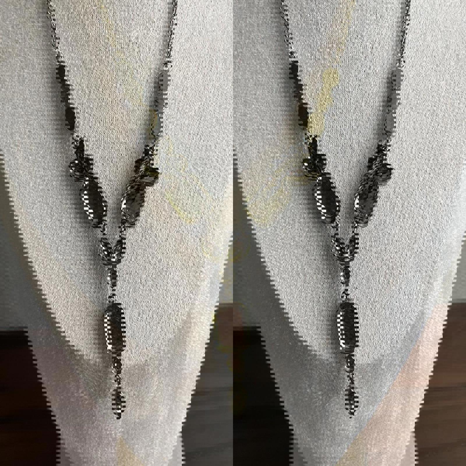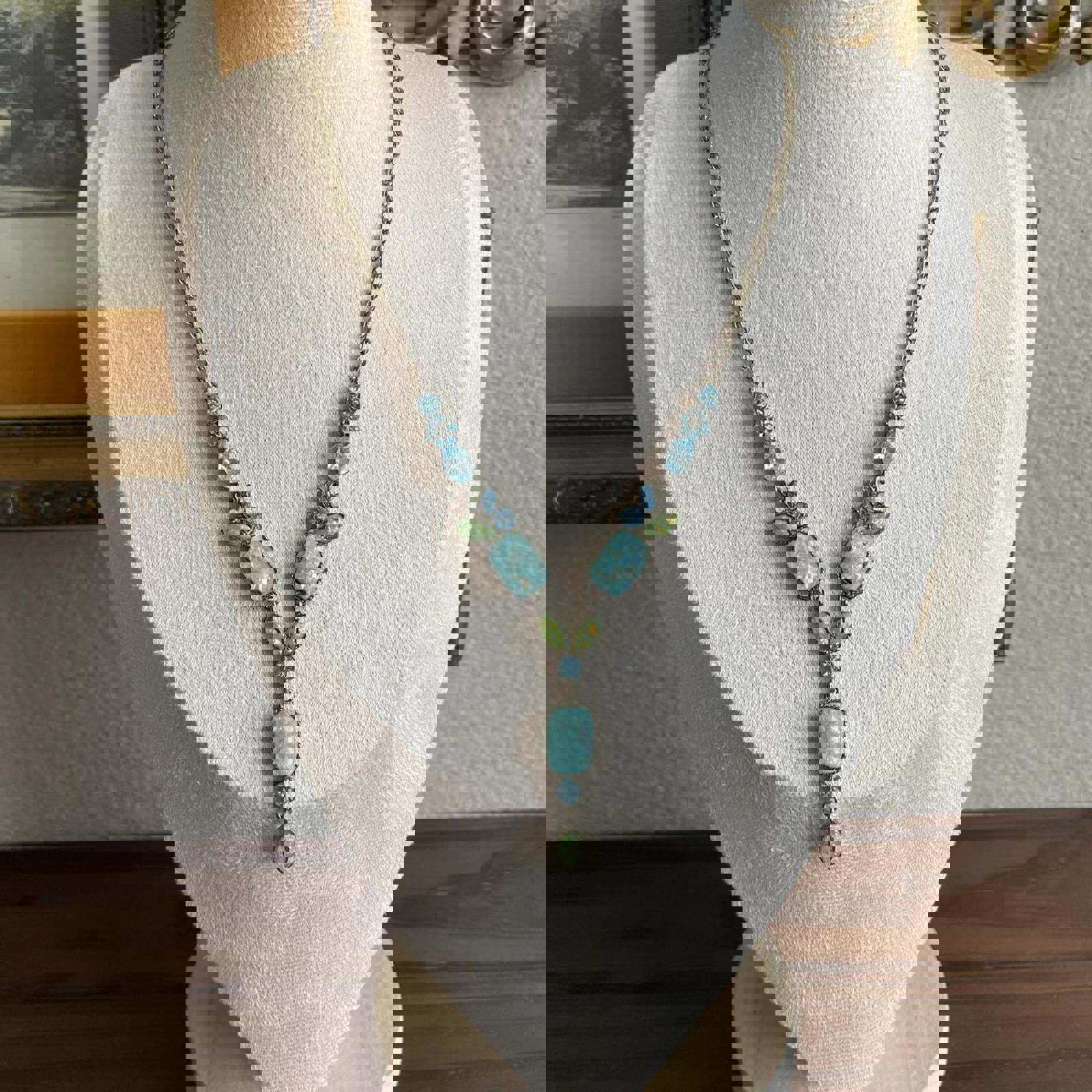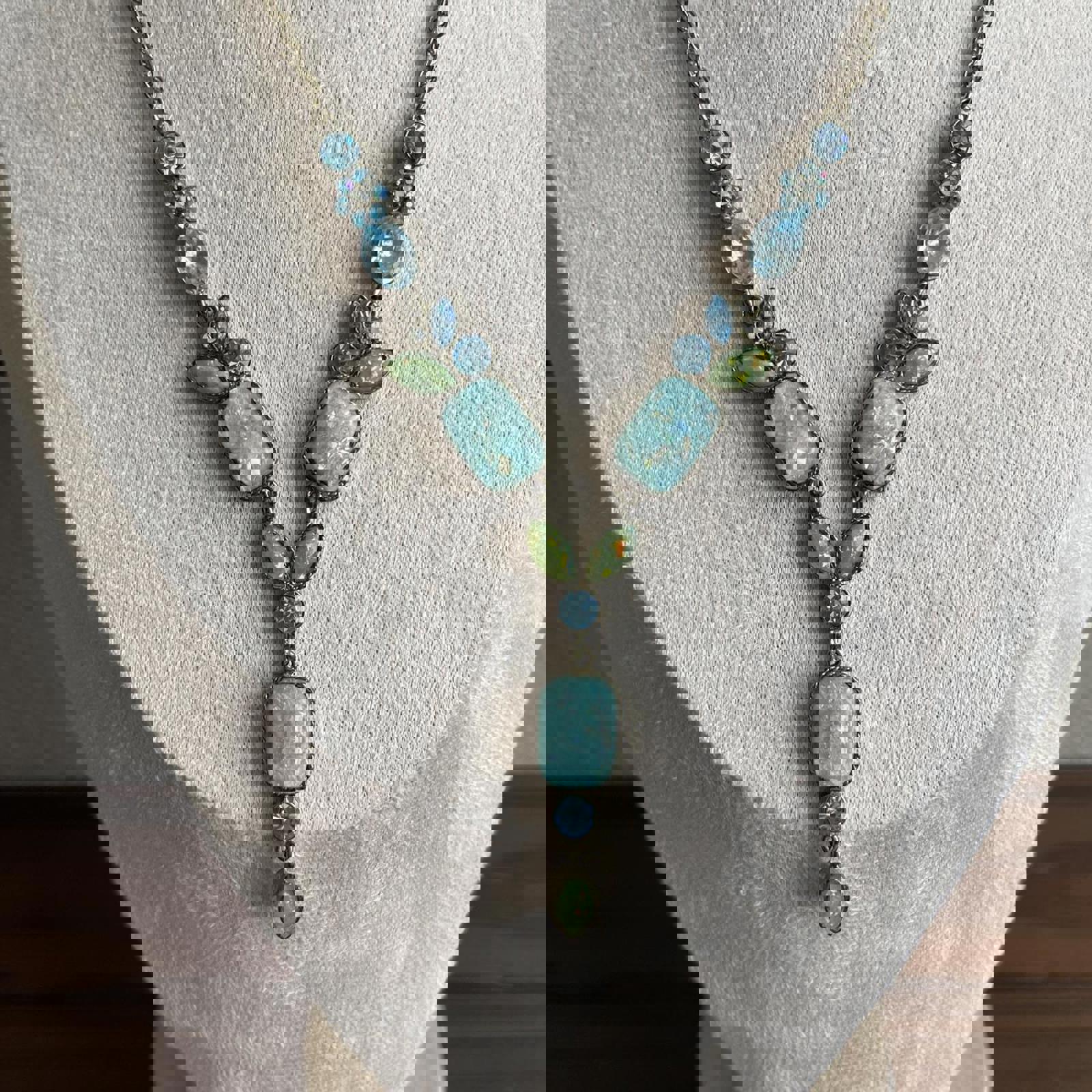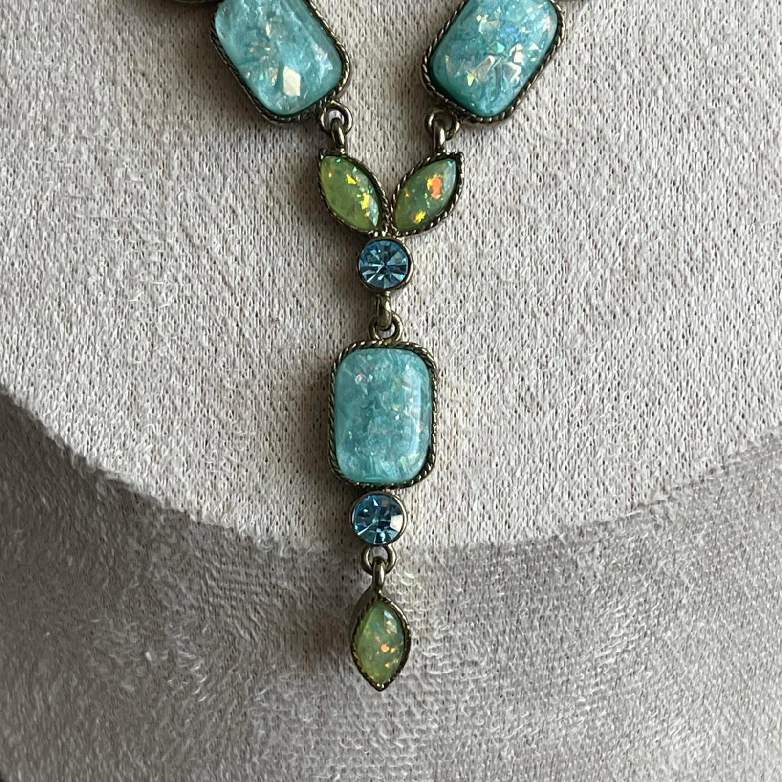 Vintage Avon Opalite Blue Green Blue Topaz Rhinestone Drop Necklace