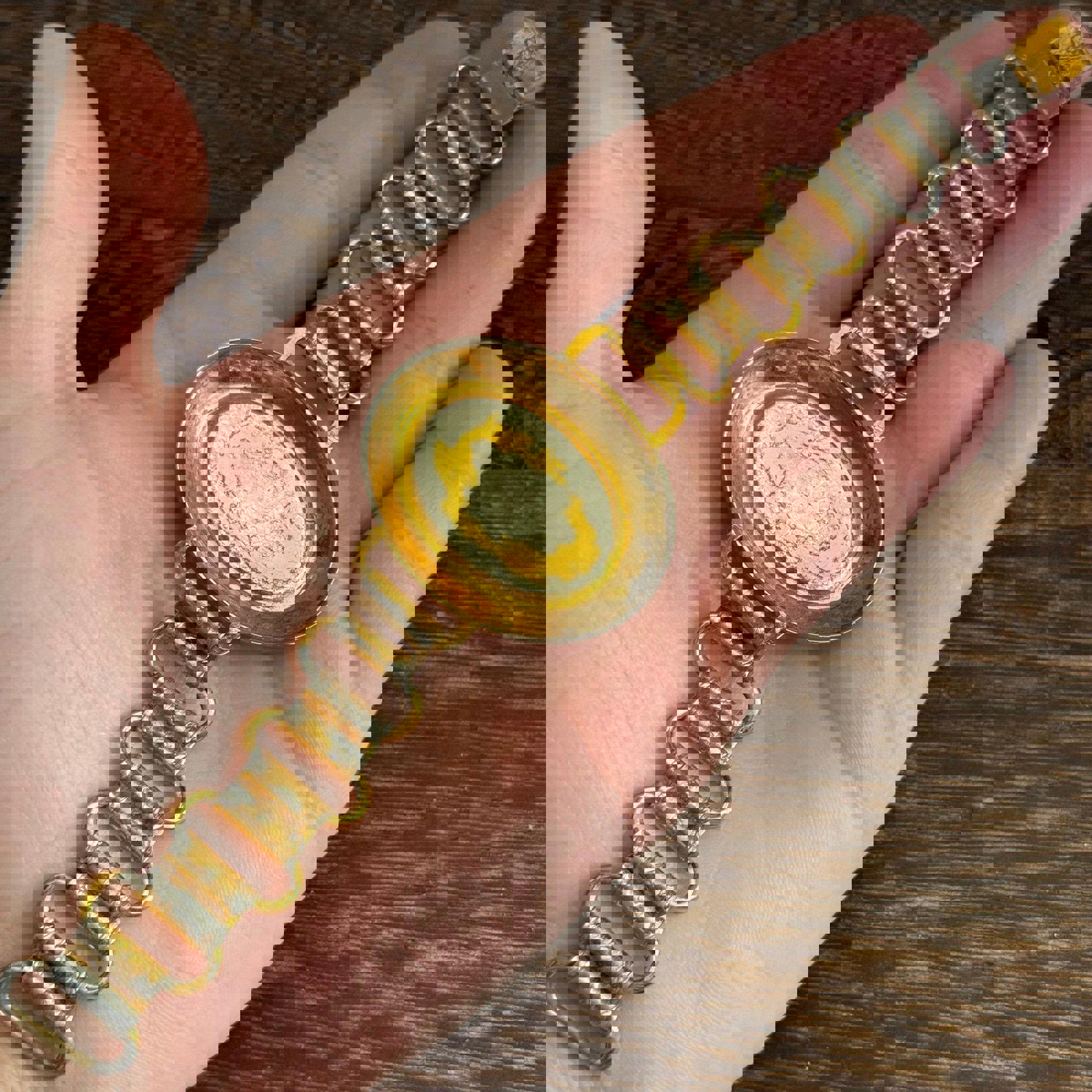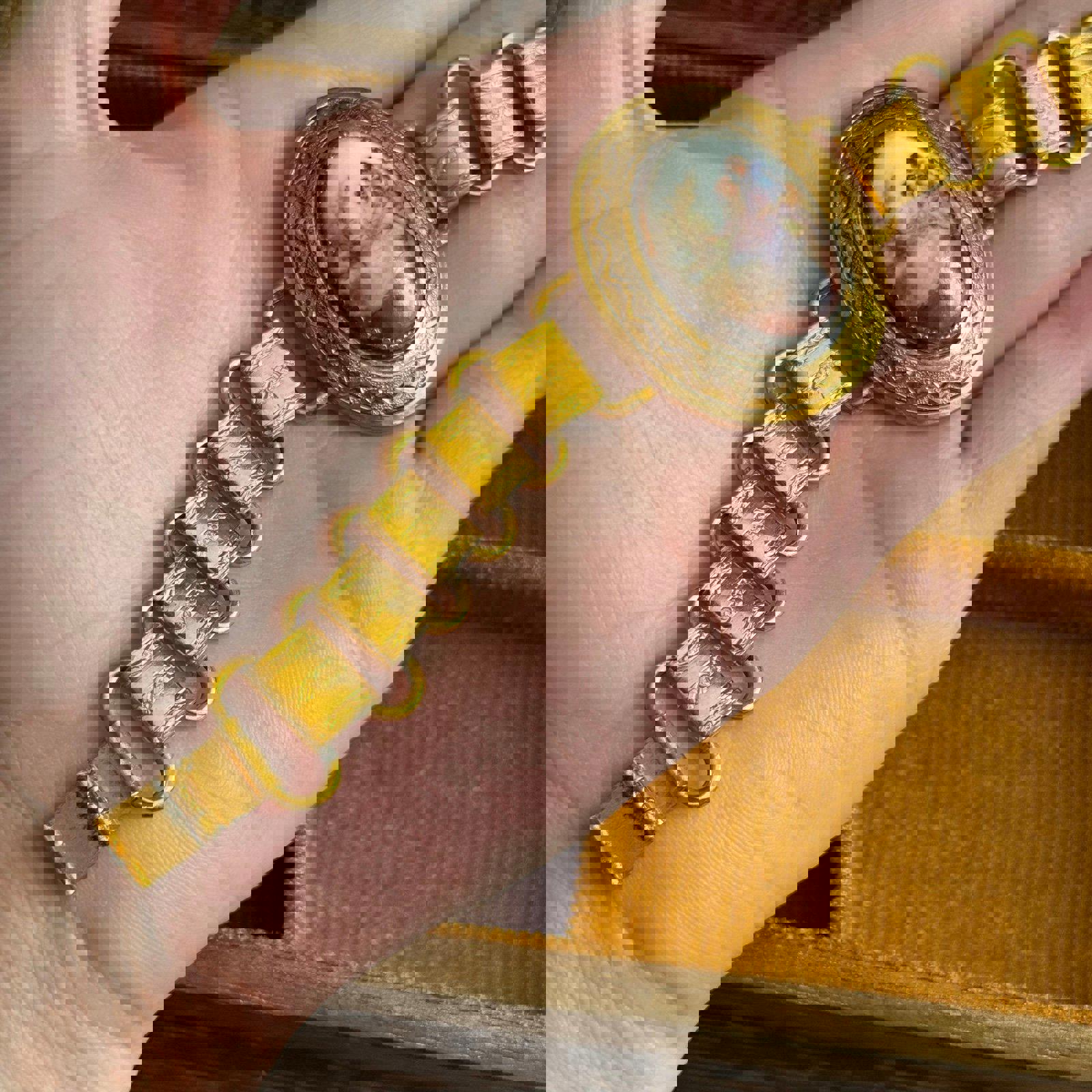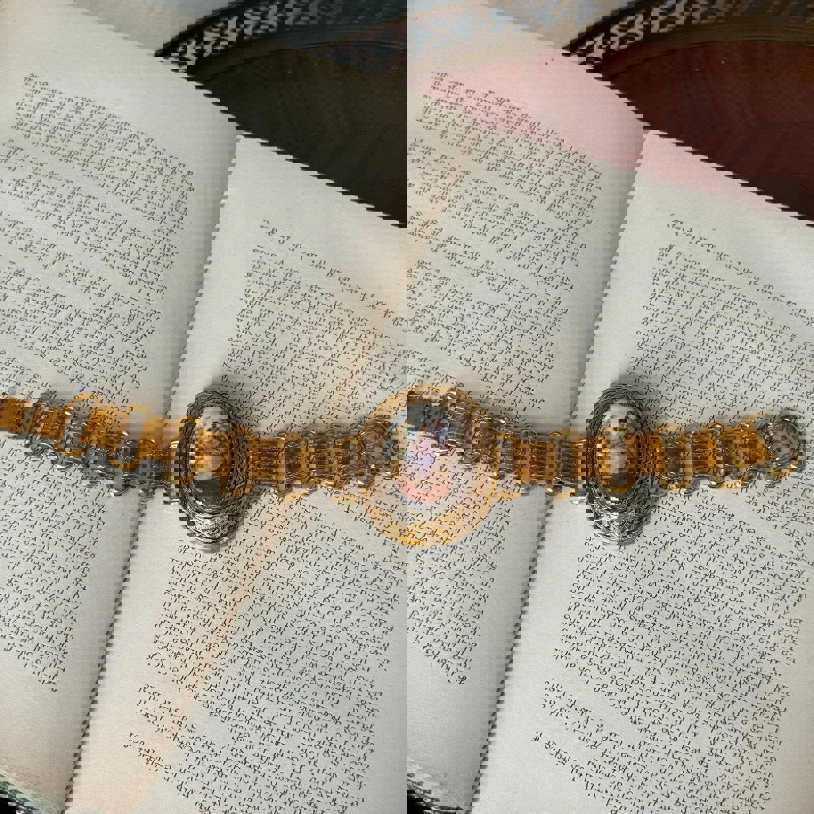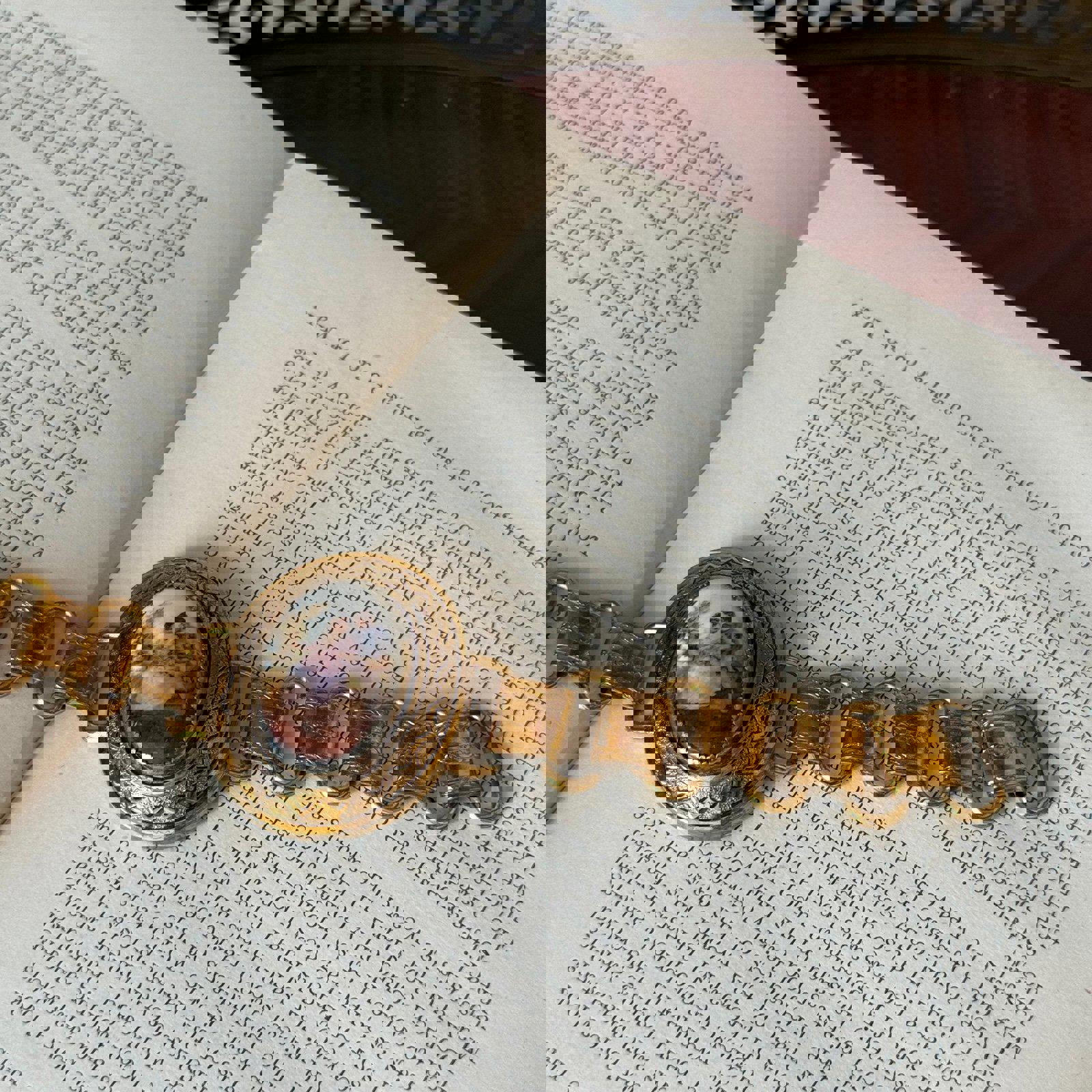 Vintage bookchain bracelet with an oval porcelain cameo in the center
