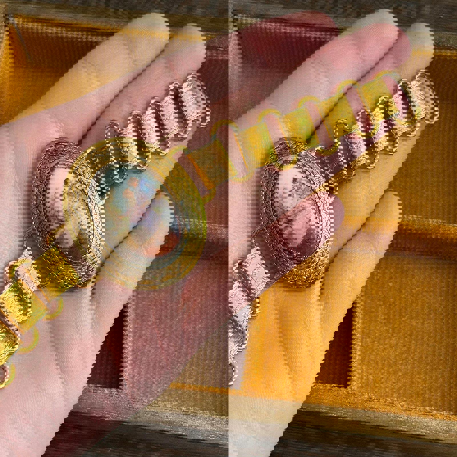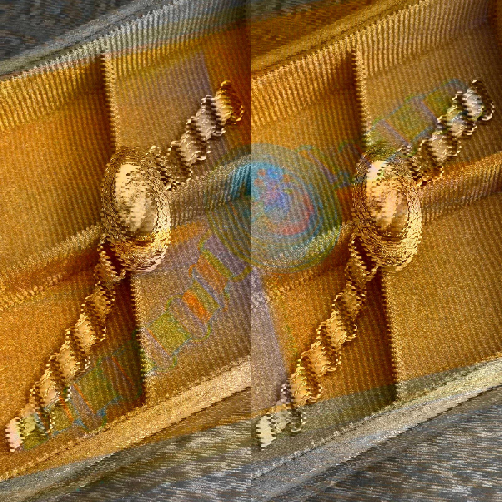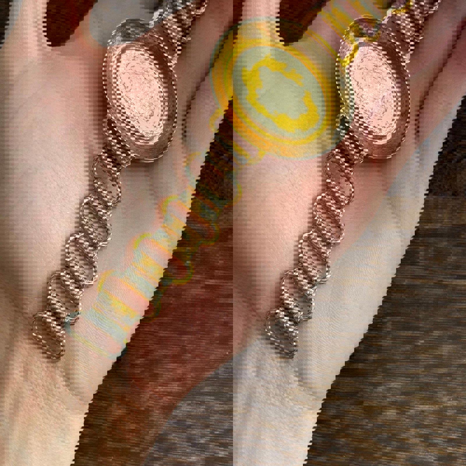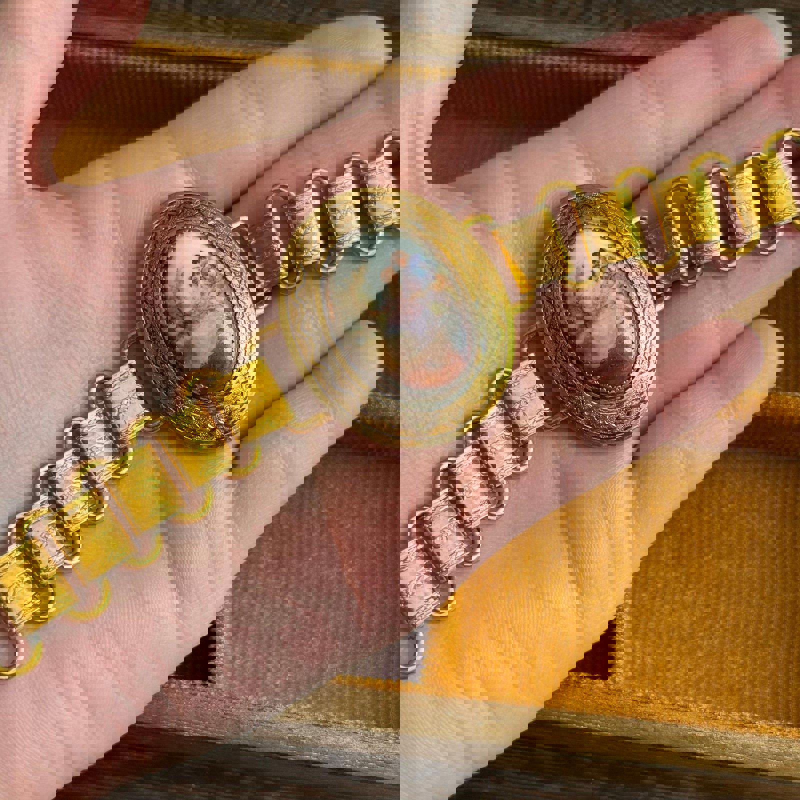 Vintage bookchain bracelet with an oval porcelain cameo in the center