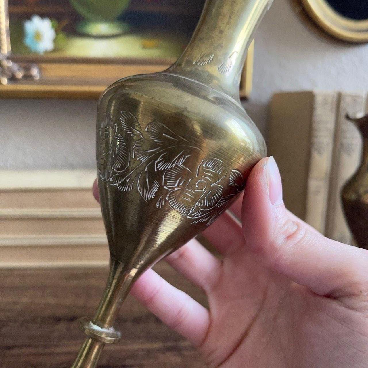 Vintage Brass Floral Vase Etched Ornate Design