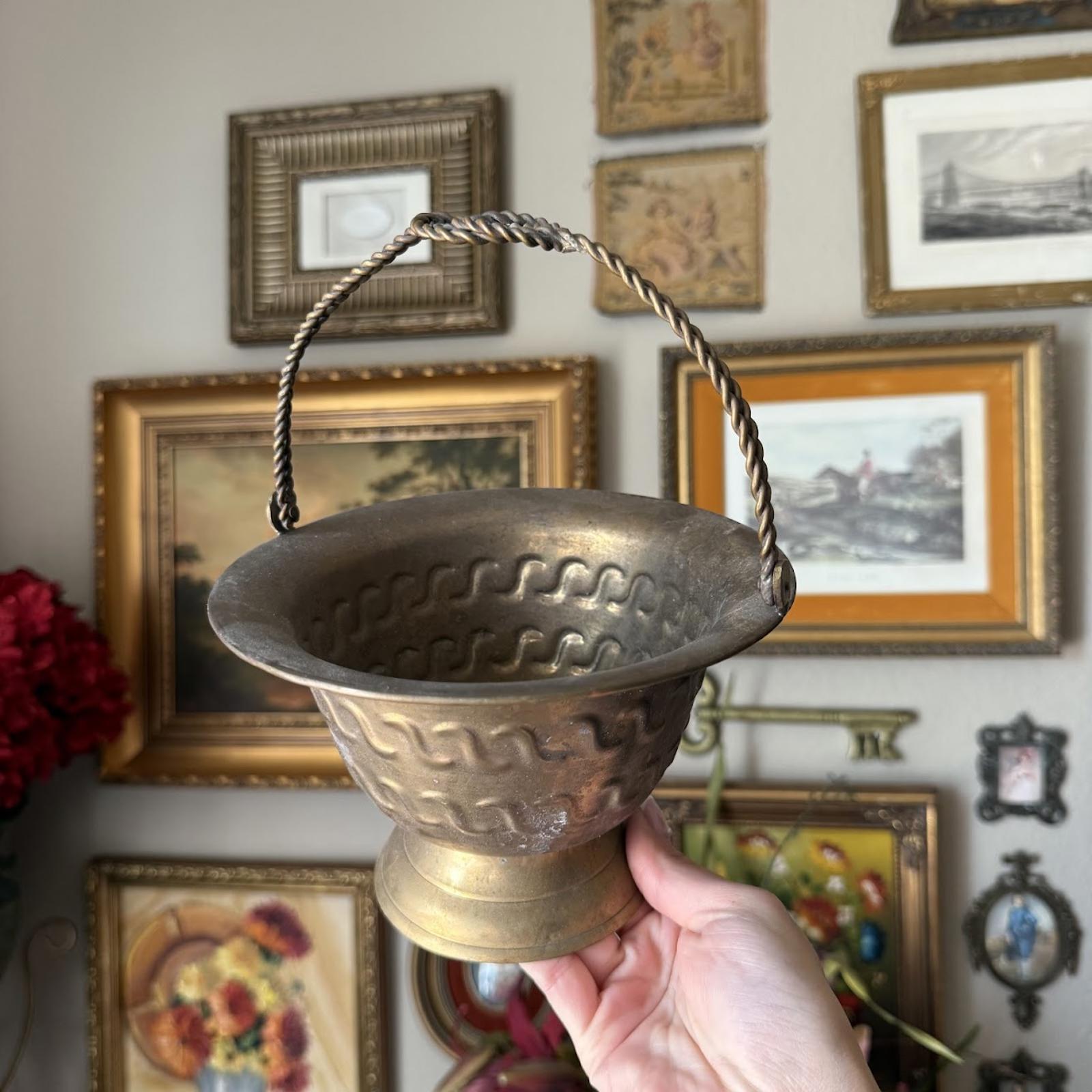 Vintage Brass Rope Basket