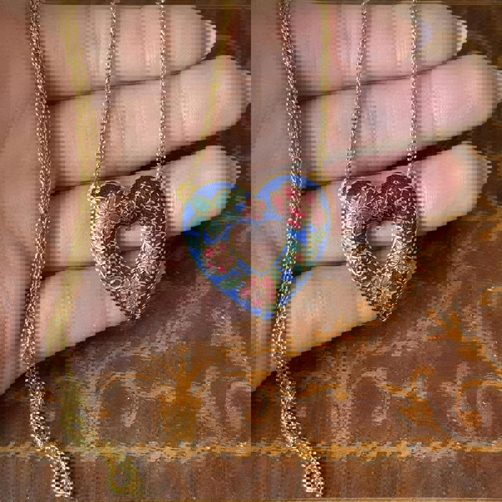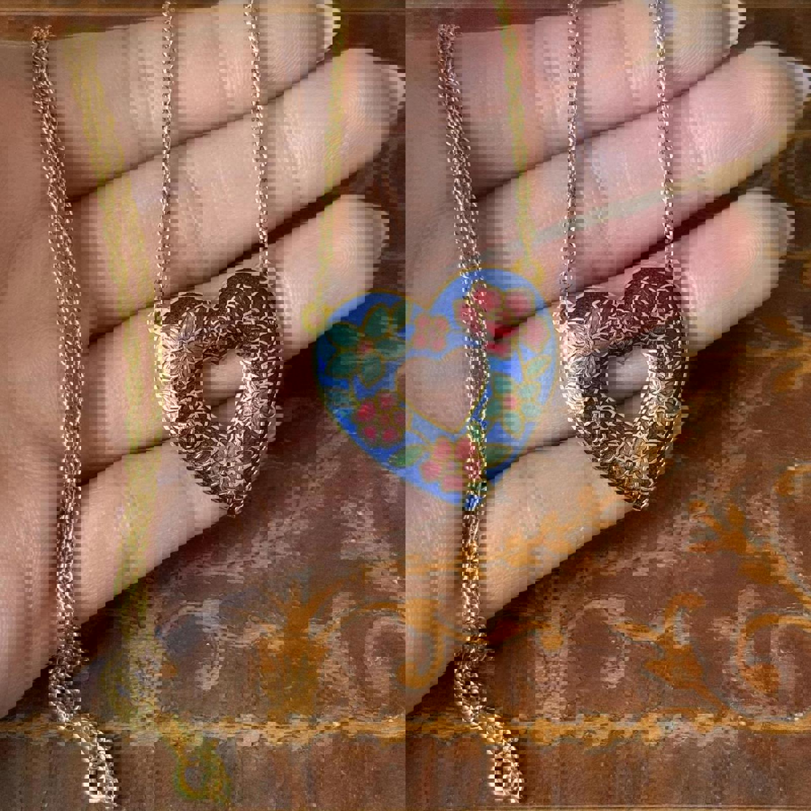 cloisonne, enamel pendant, gold chain, heart necklace, vintage jewelry, statement necklace, decorative jewelry, colorful enamel, elegant accessory, gift idea