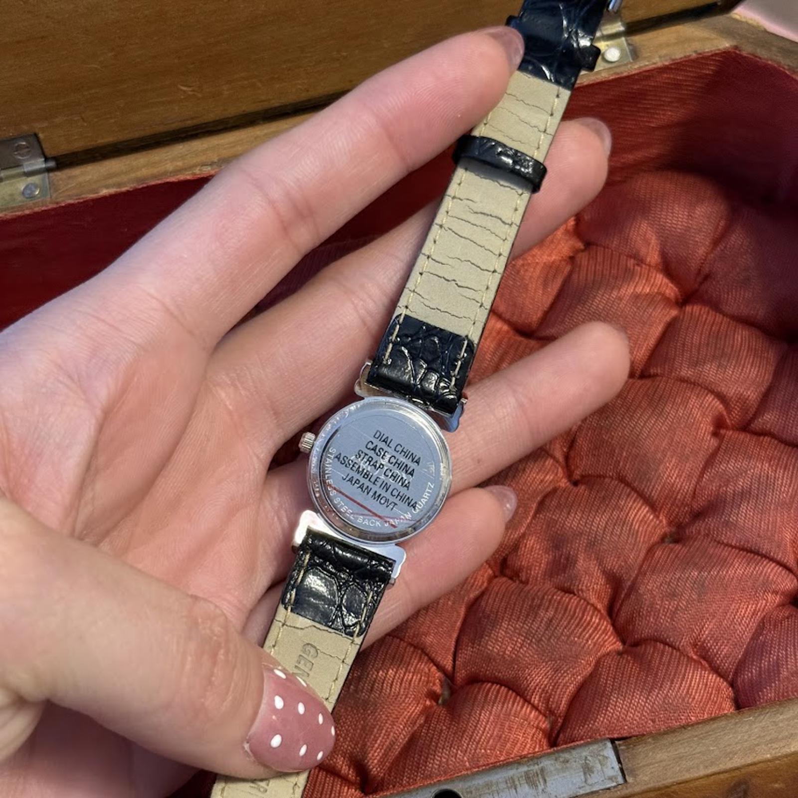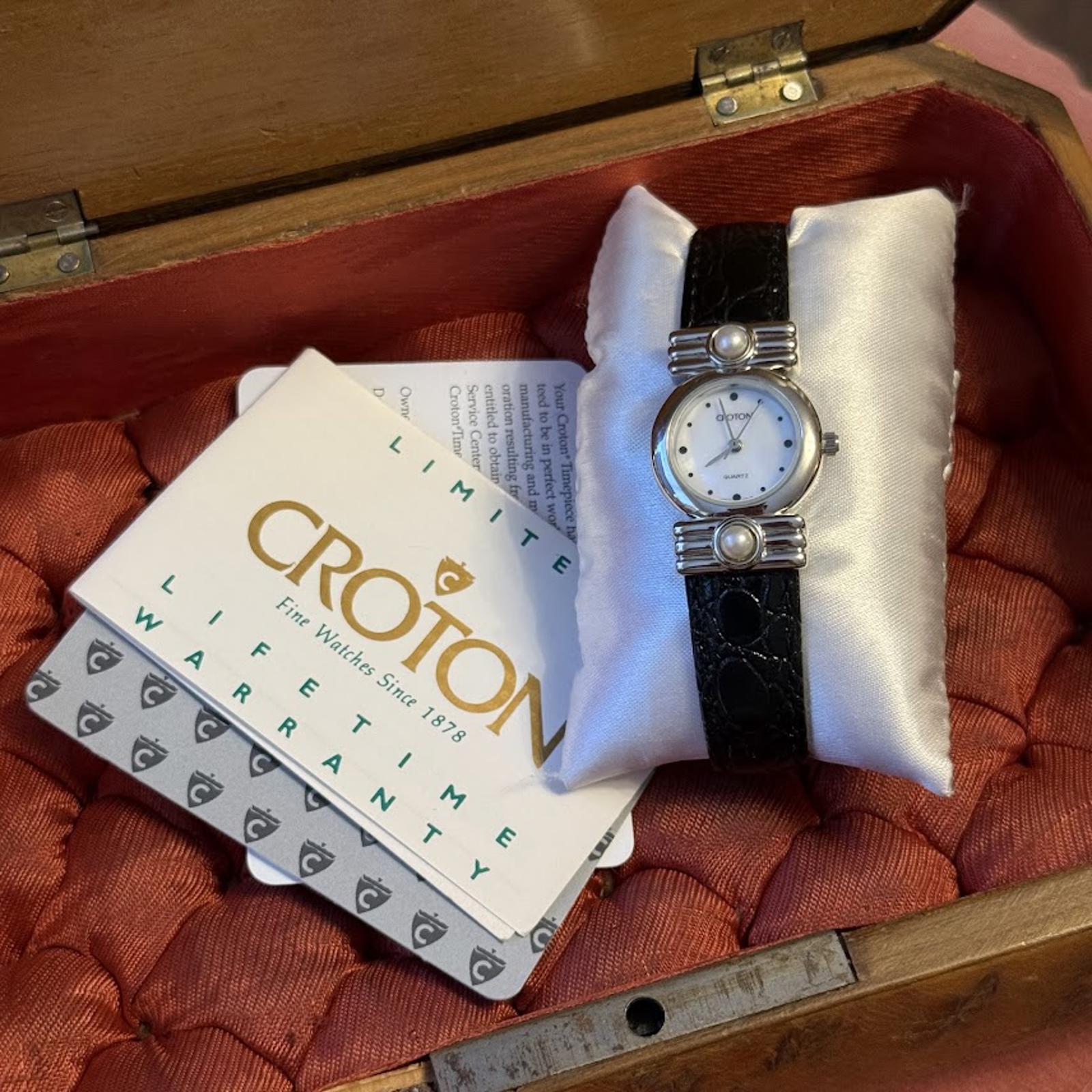 Vintage Croton Black Genuine leather & Mother of pearl Watch