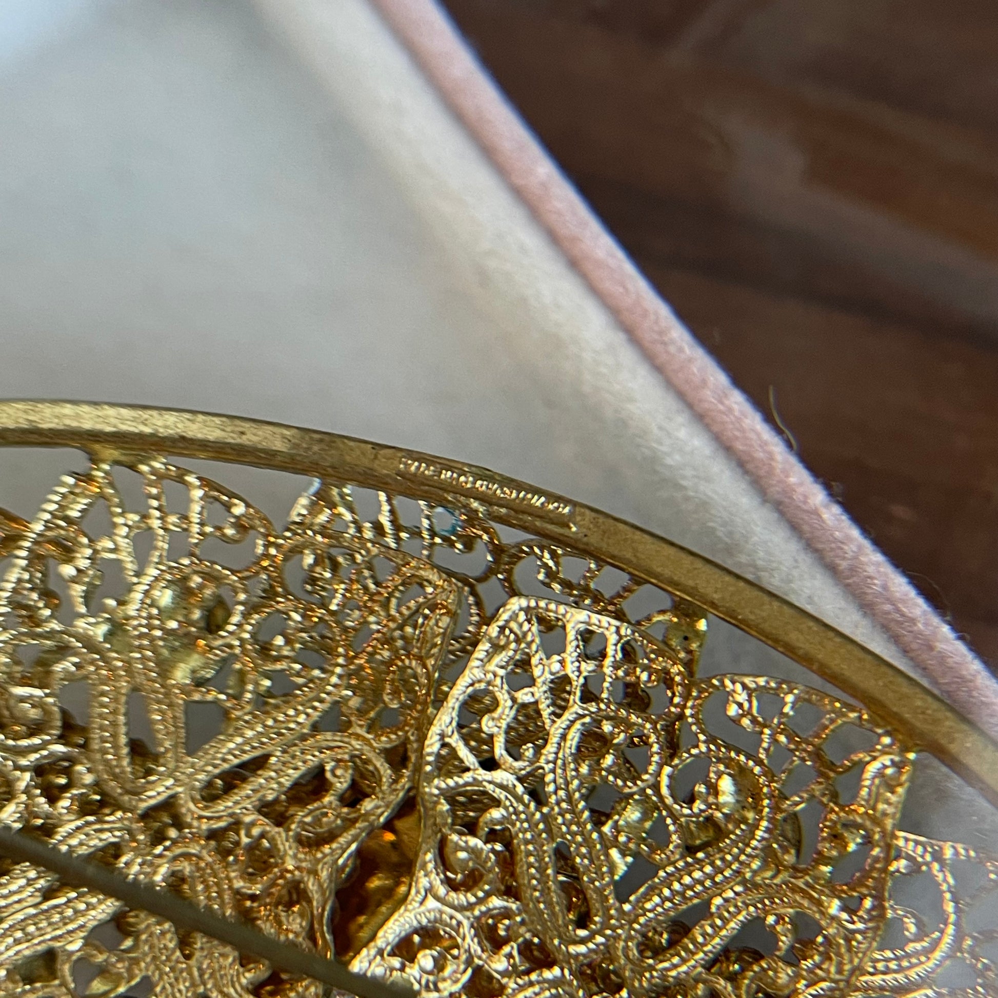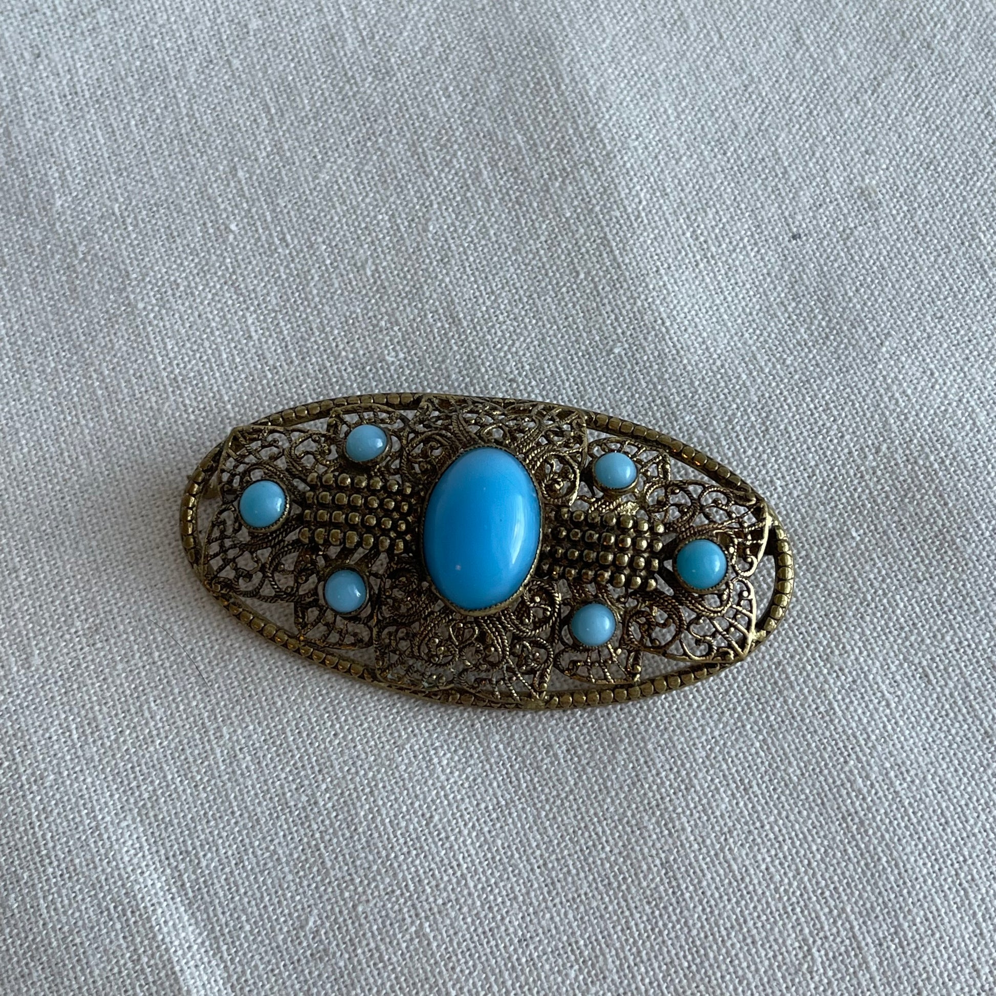 Vintage CZECH Signed Gold Tone Filigree Turquoise Glass Pin Brooch