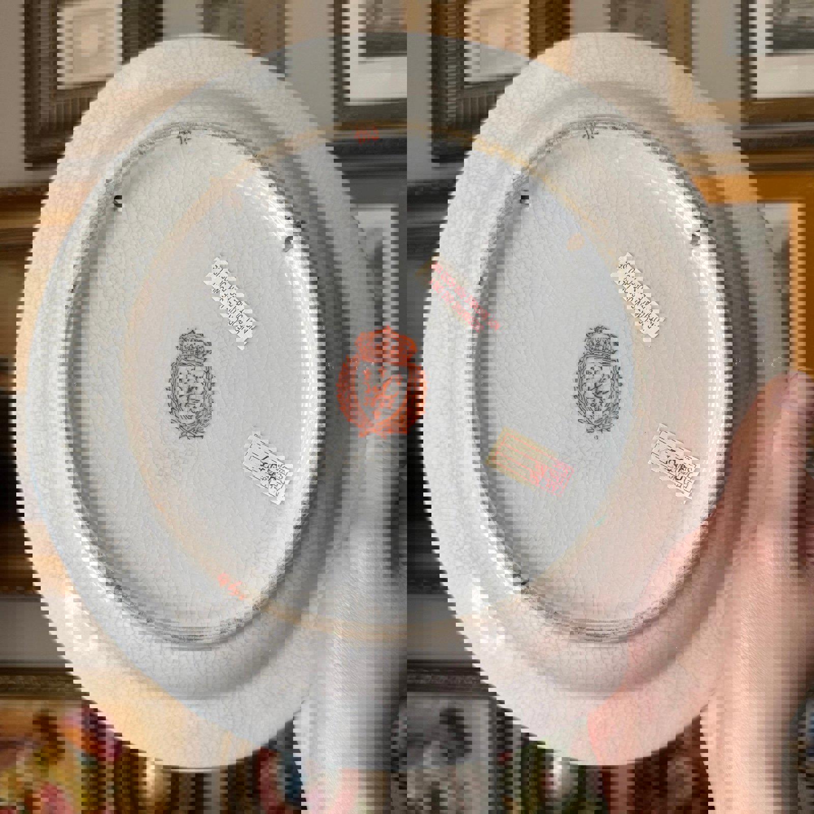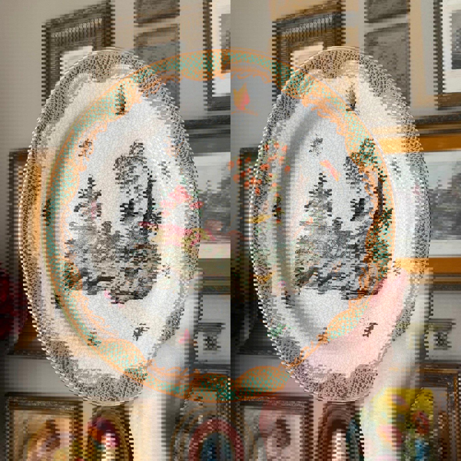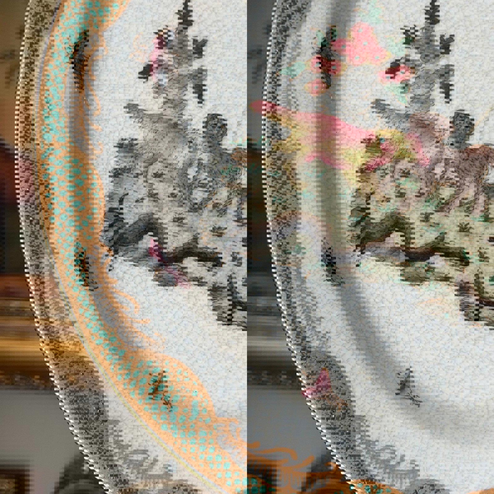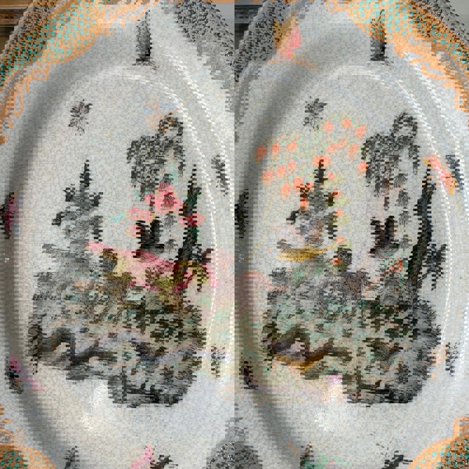 Vintage Decorative Porcelain Plate Crackle Glaze Dog & Bird Scene