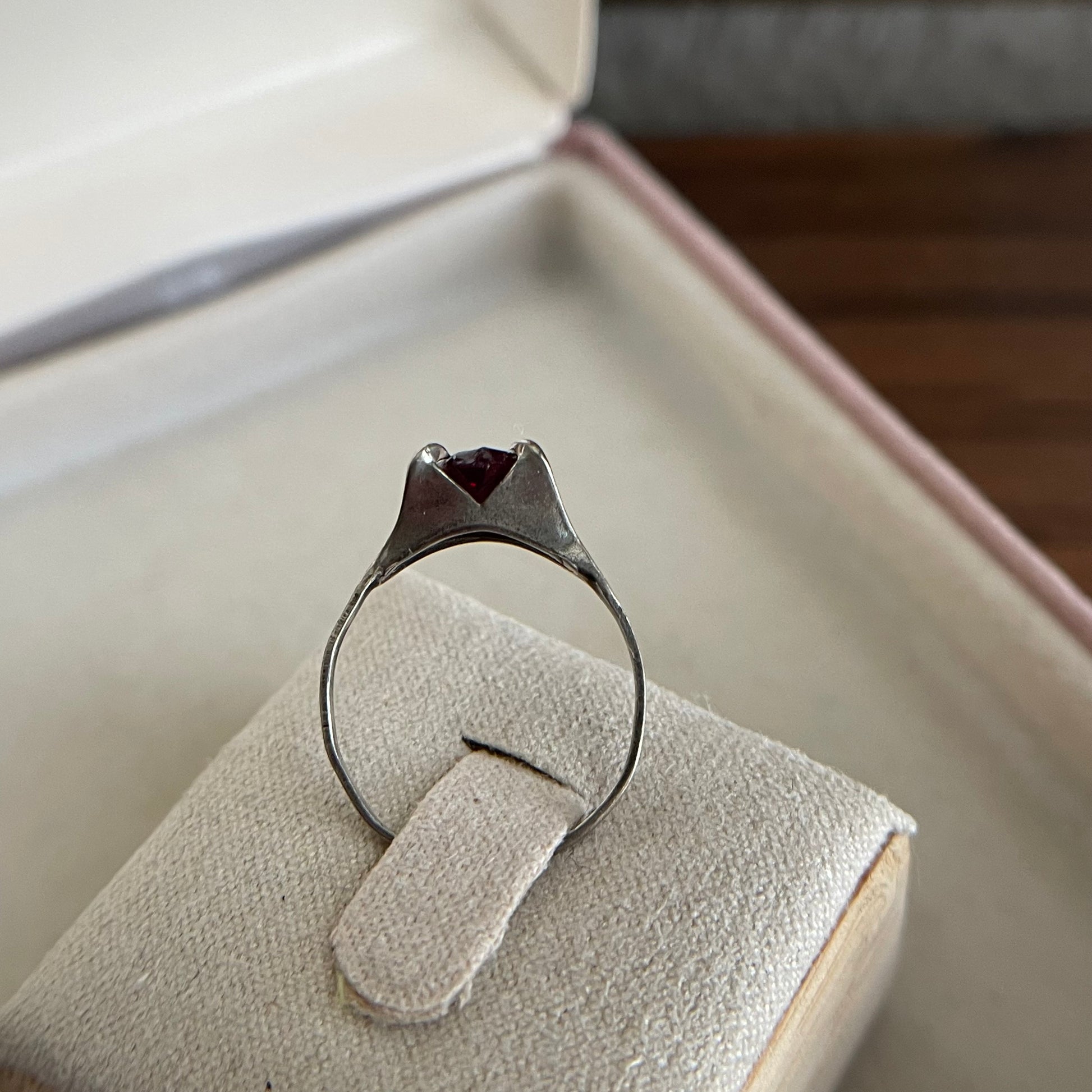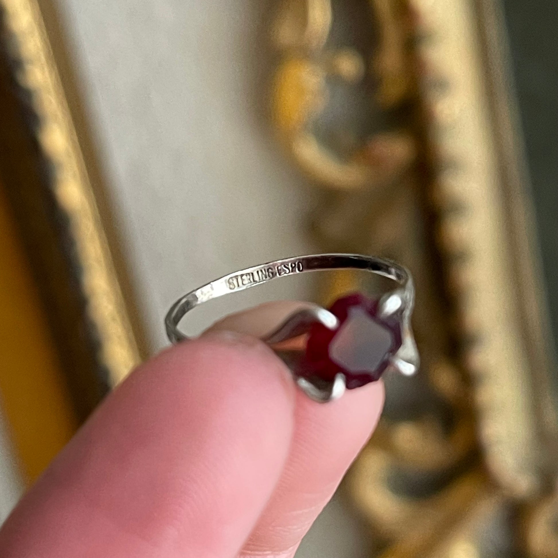 Vintage Designer Joseph Esposito Espo Red Glass Sterling Silver Ring