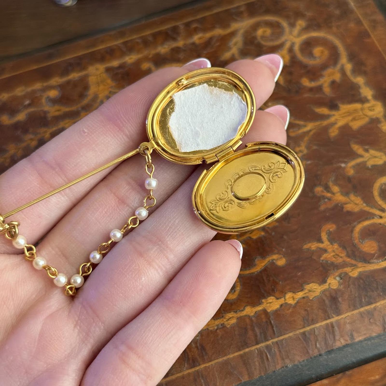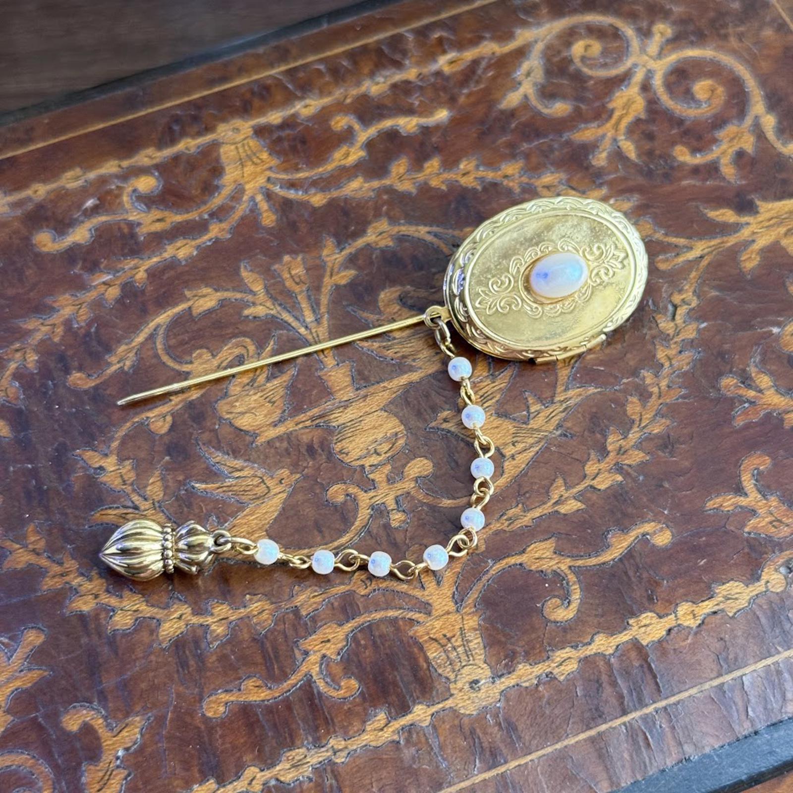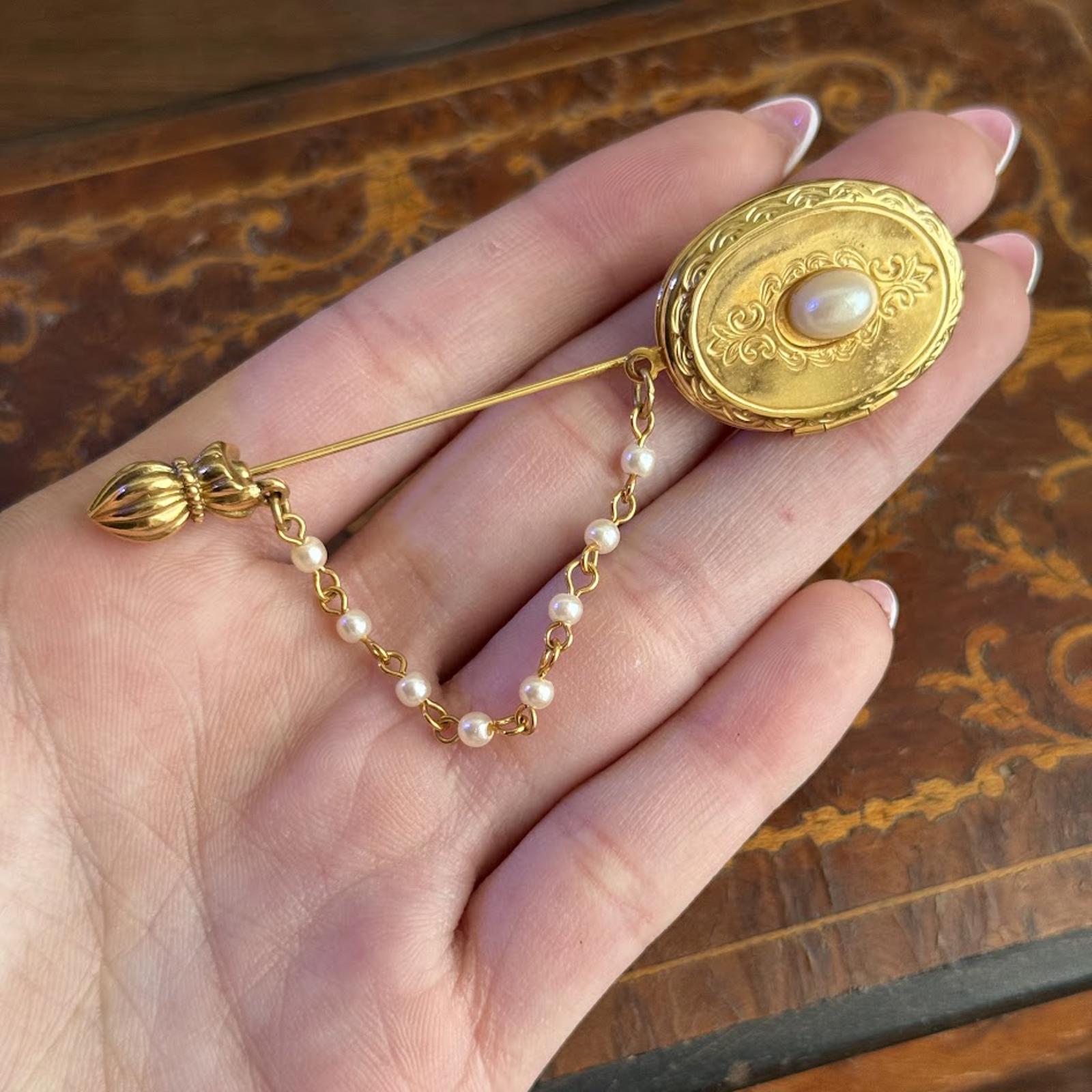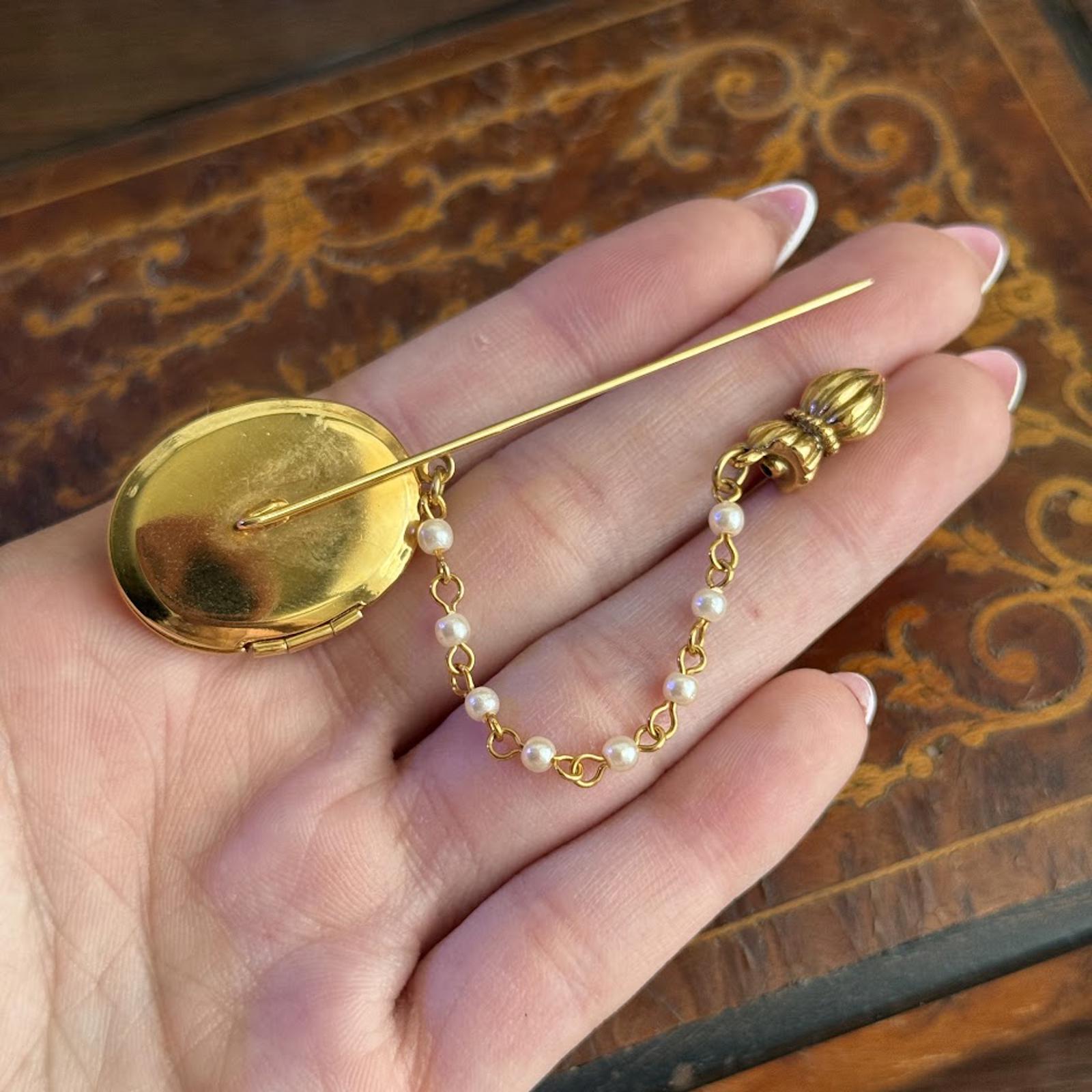Vintage Faux Pearl & Dangle Chain Locket Stick Pin
