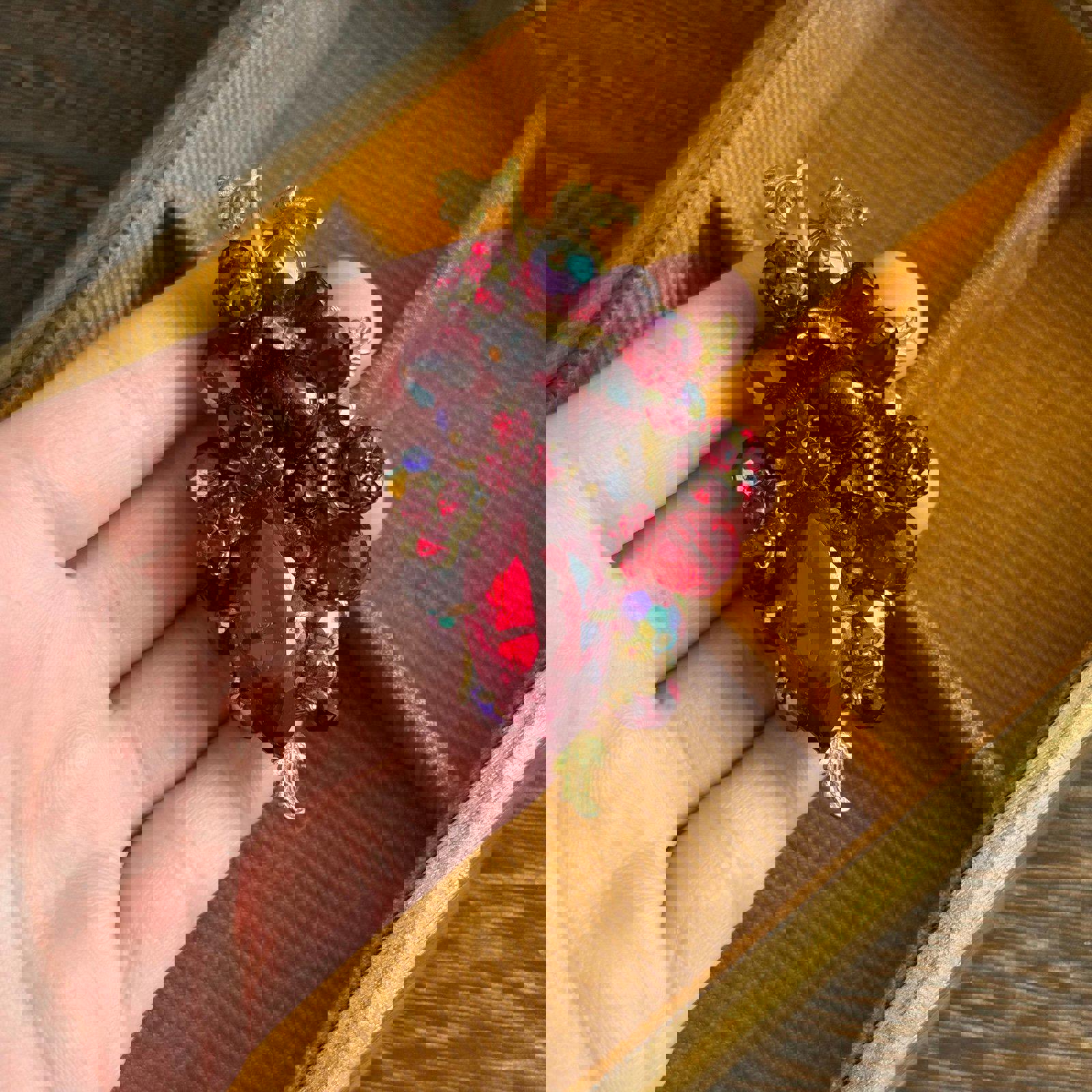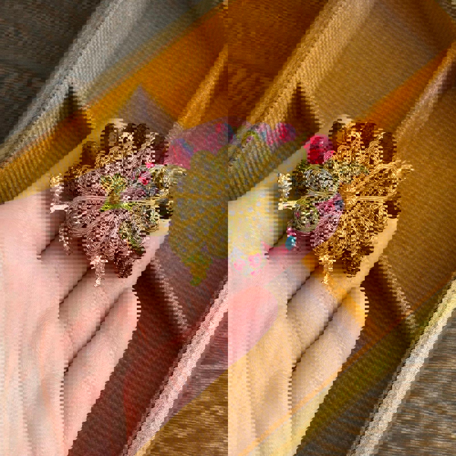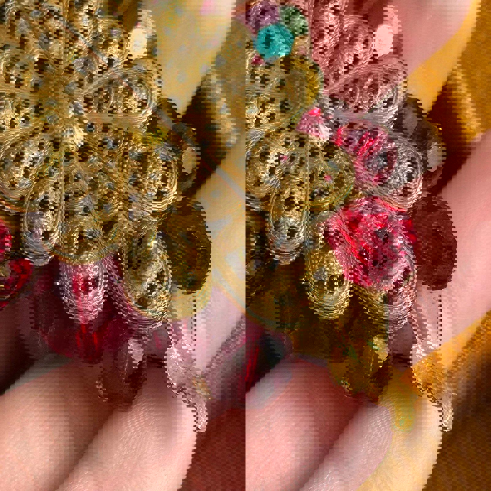 Vintage filigree brooch Bright red faceted glass beads Brooch