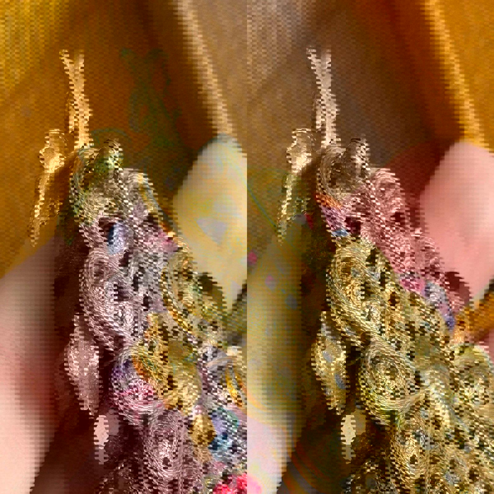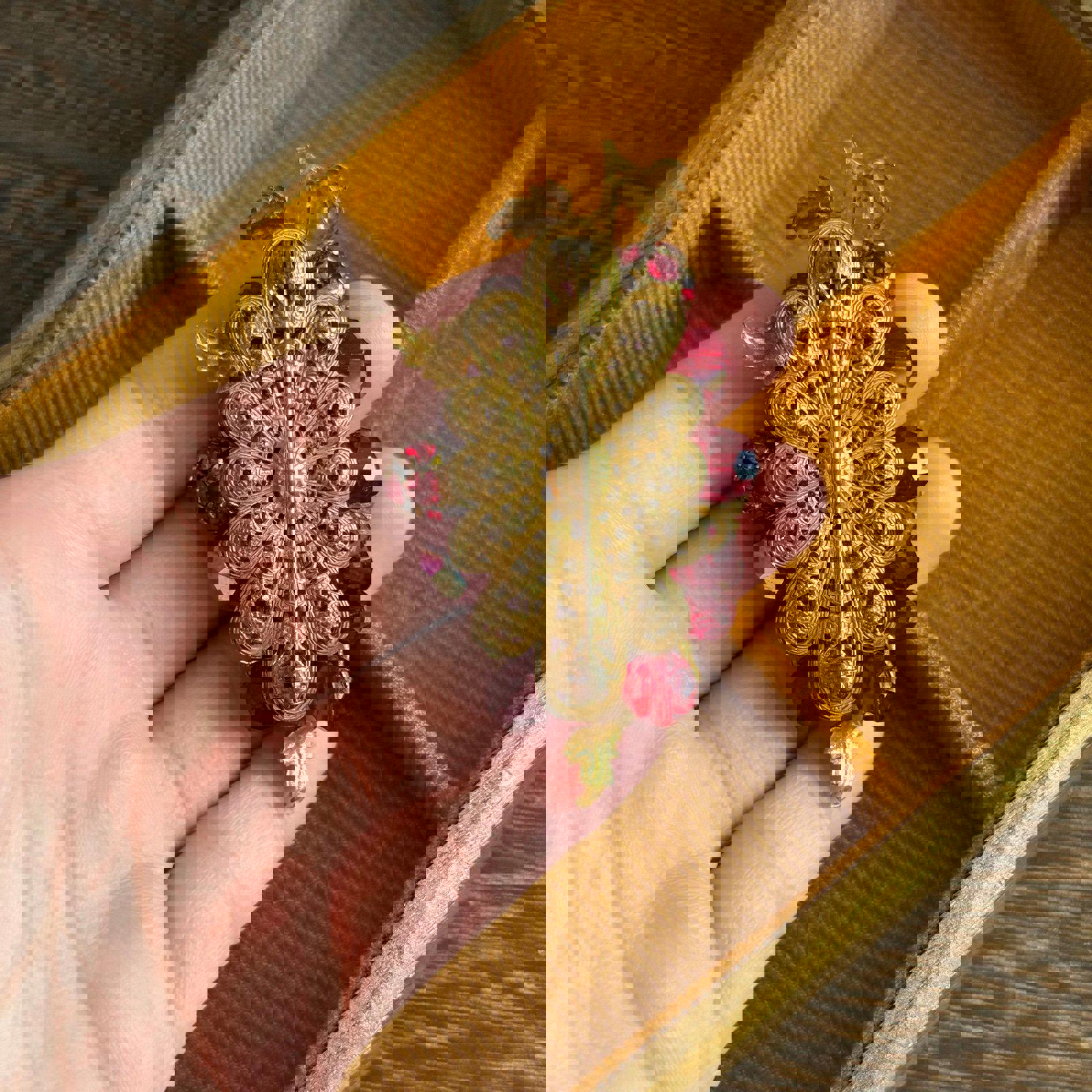 Vintage filigree Bright red faceted glass beads Brooch