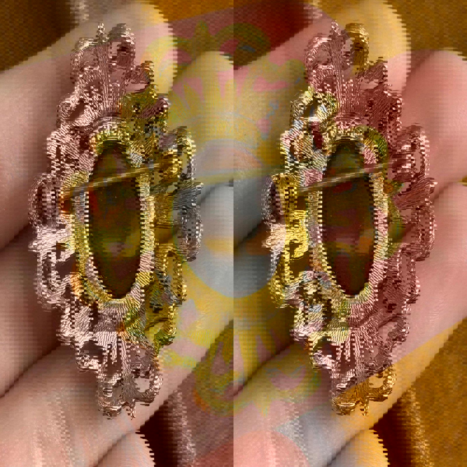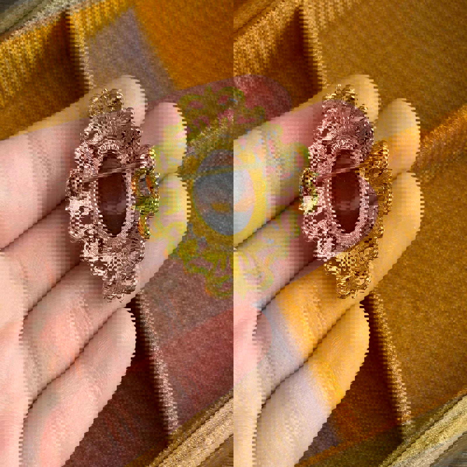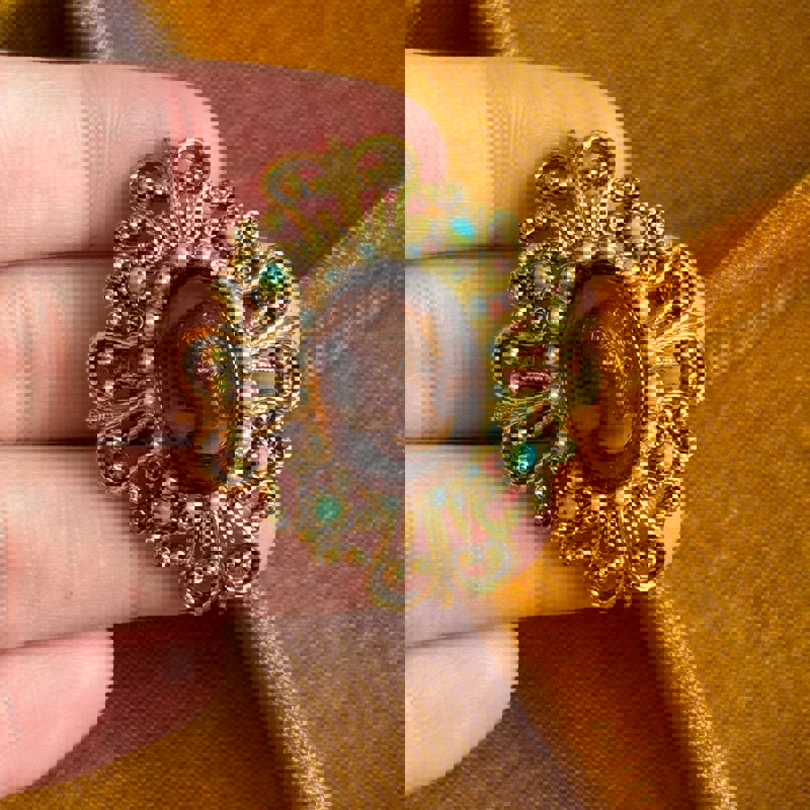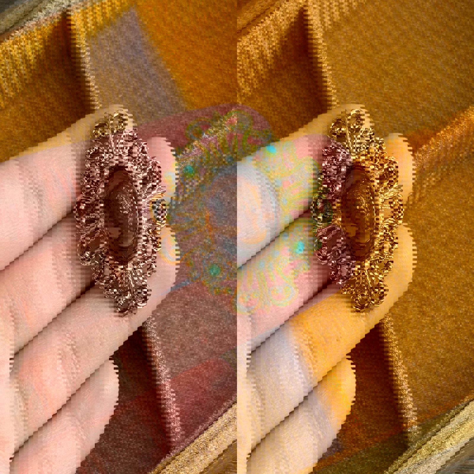 Vintage Florenza Cameo Brooch with Faux Turquoise and Pearls