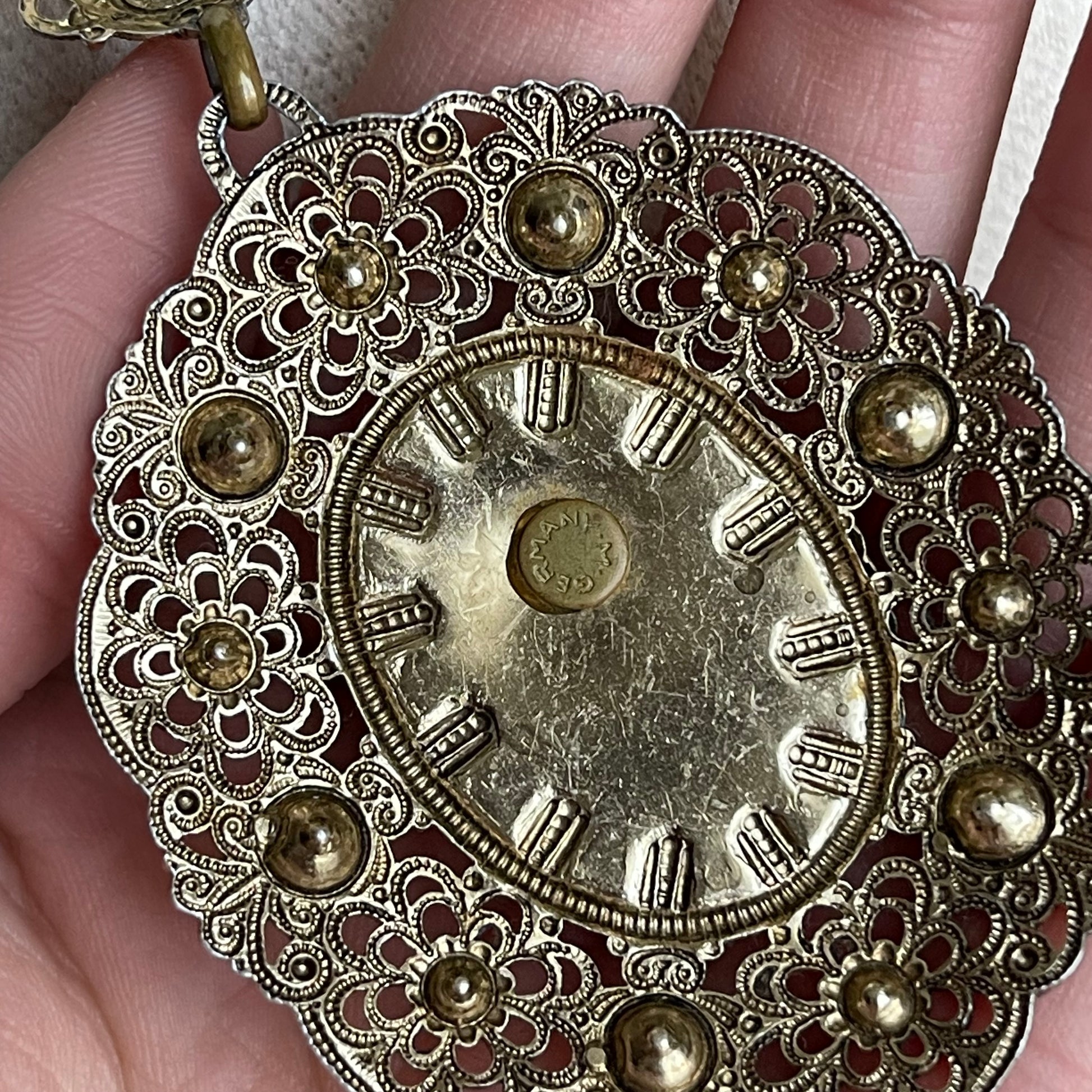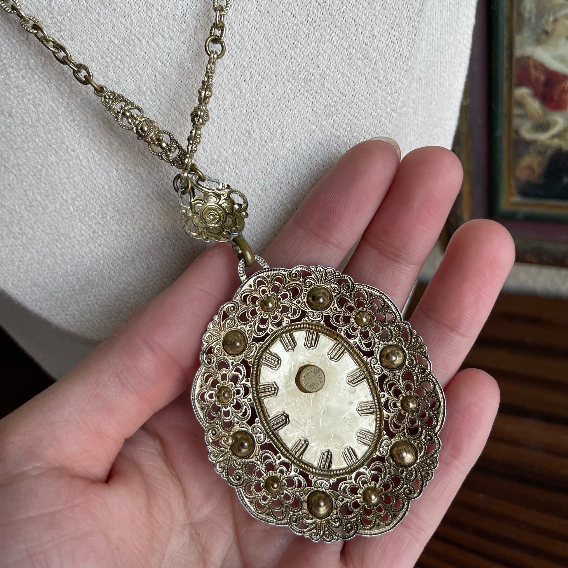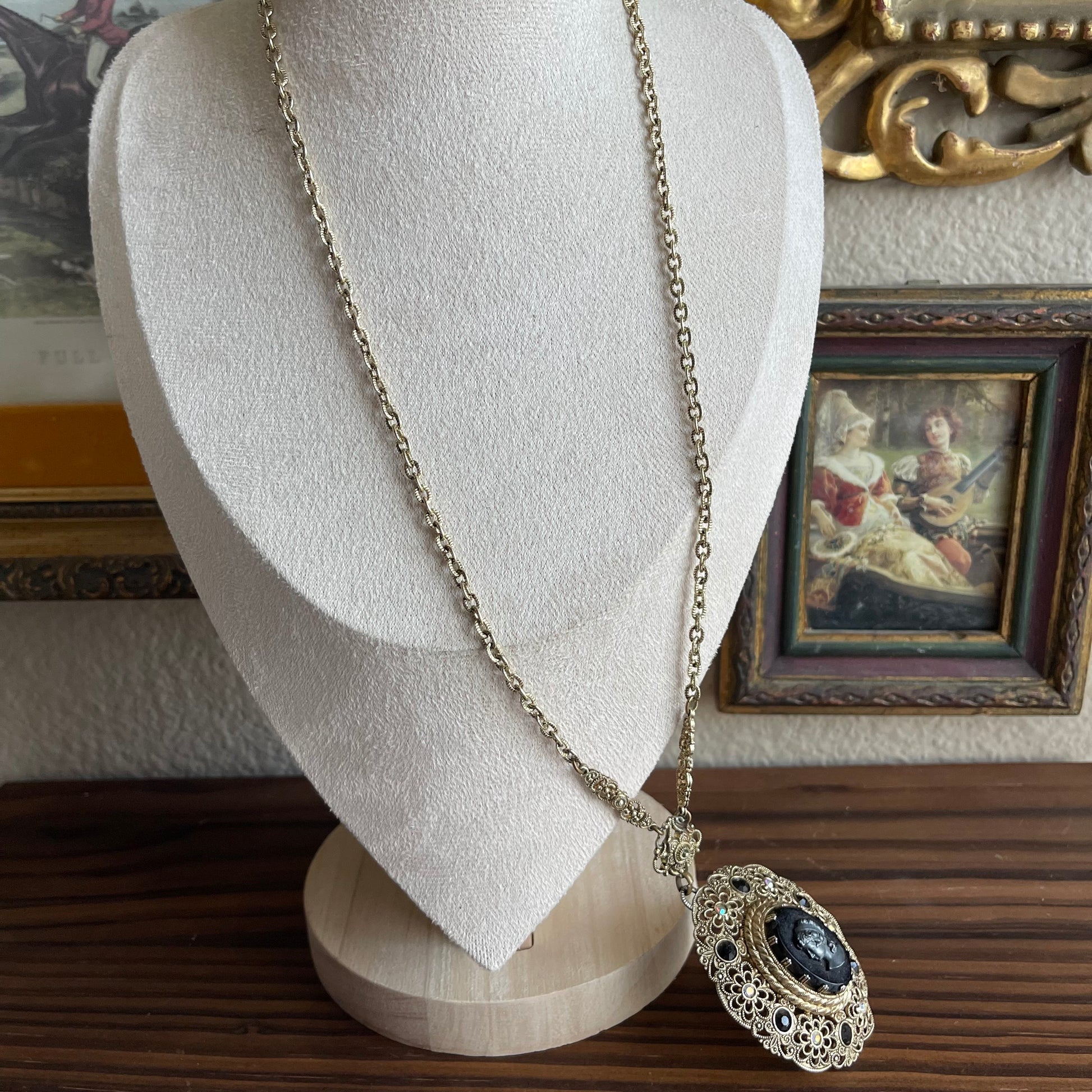 Vintage Germany Black Left Cameo Rhinestone Necklace