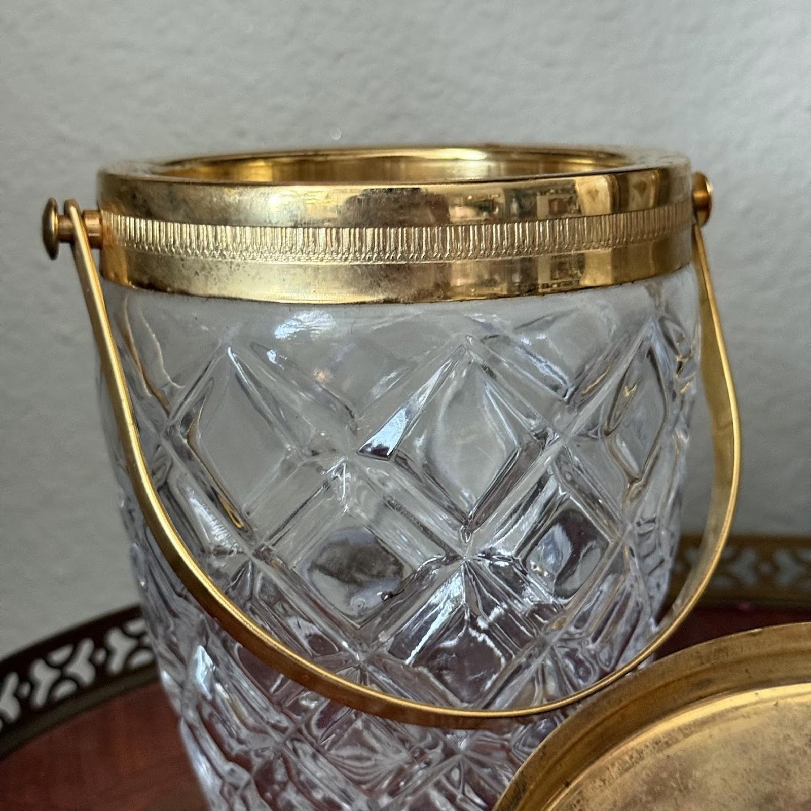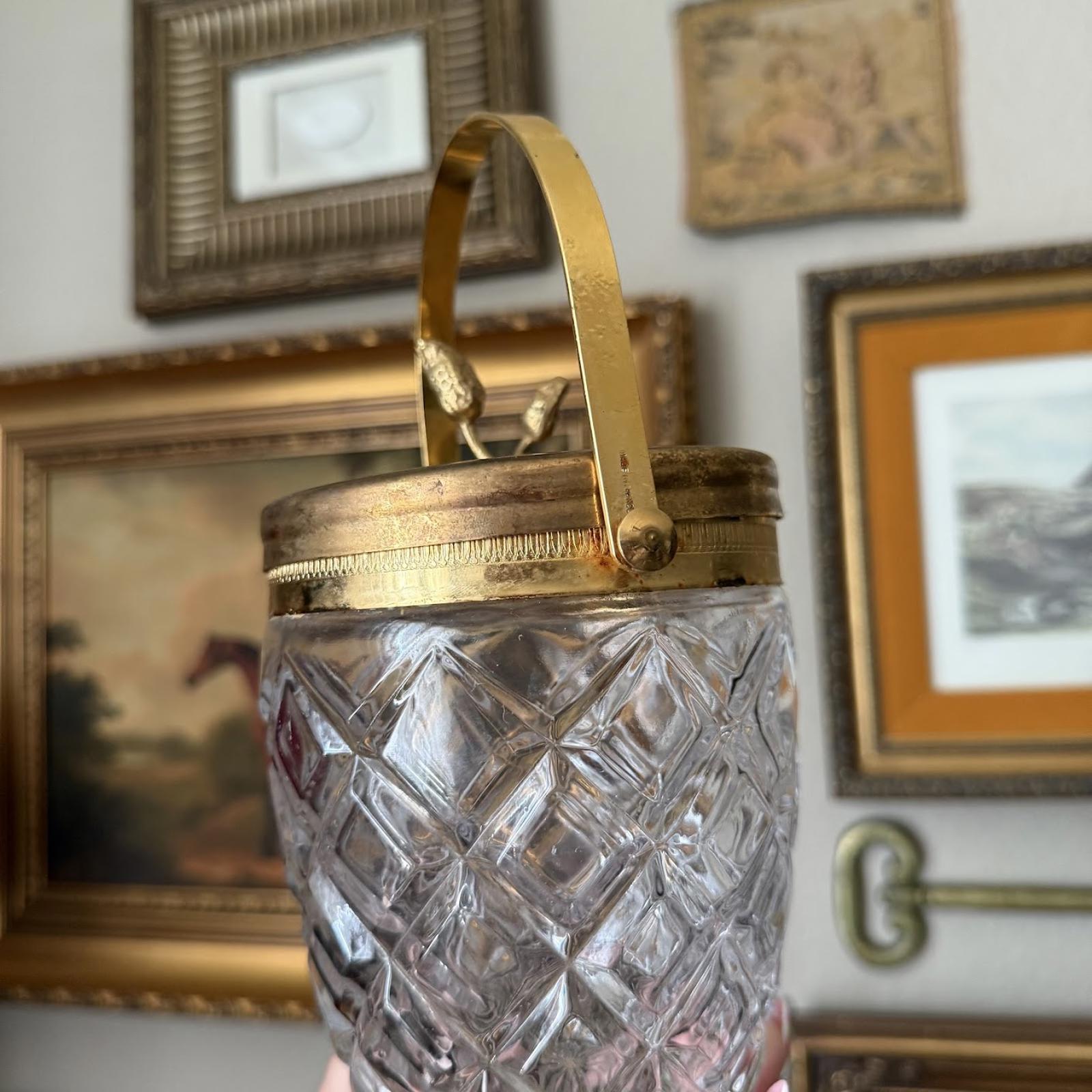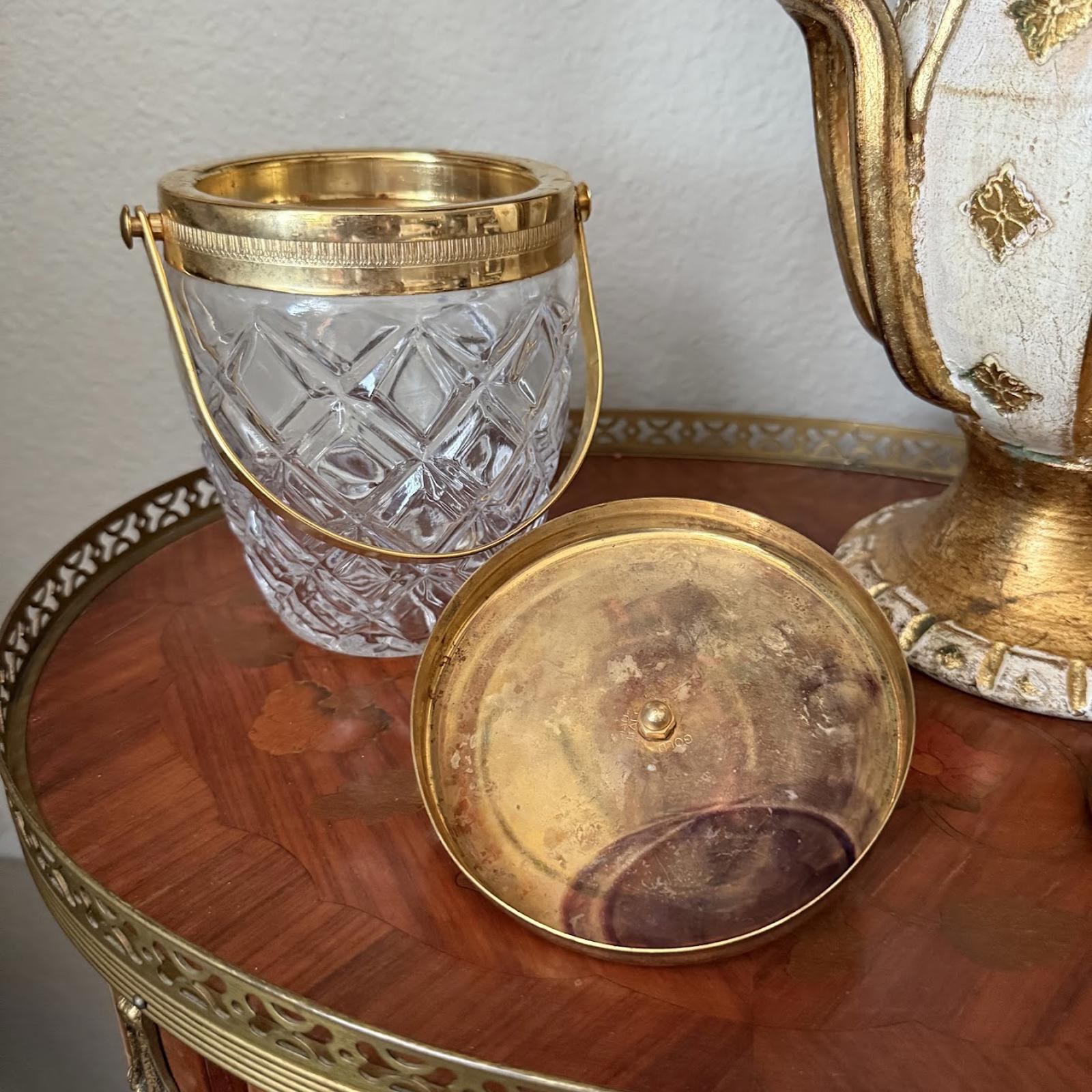 Vintage Glass Ice Bucket with Gold Detailing