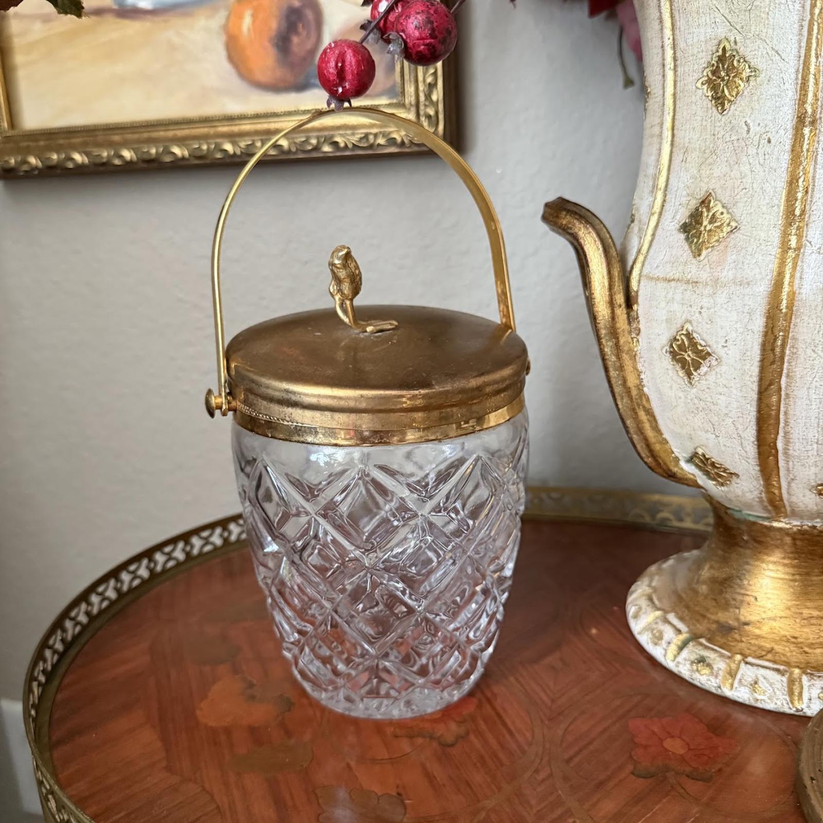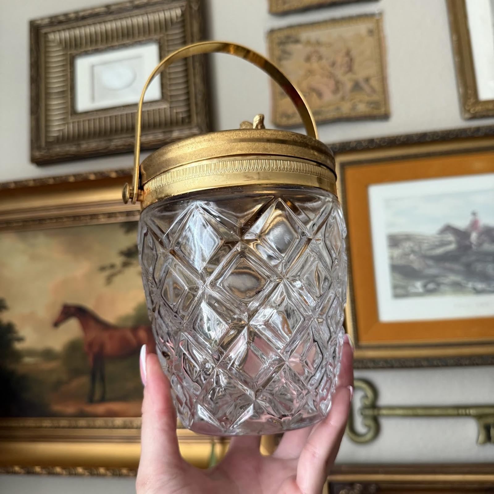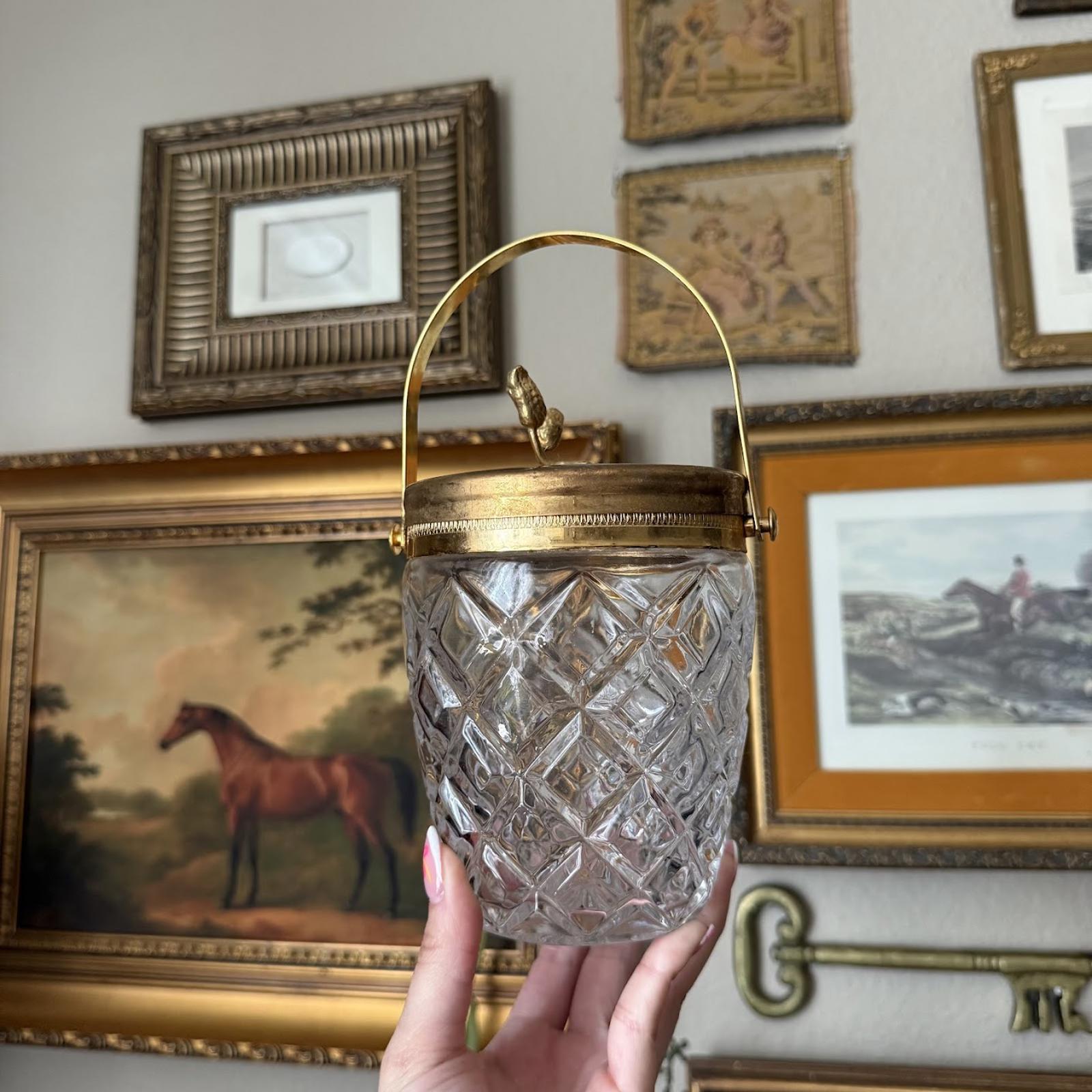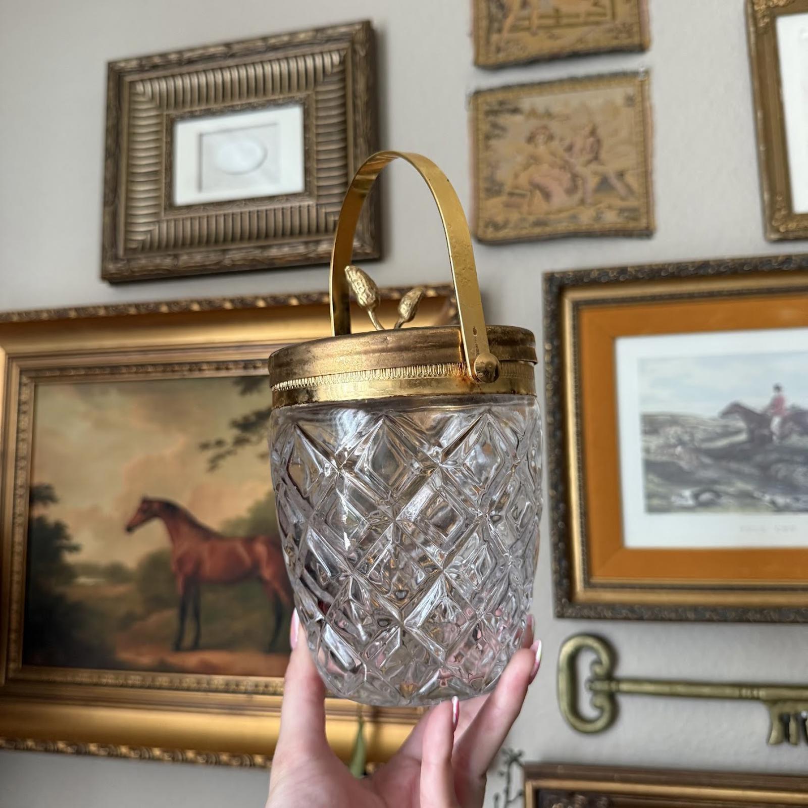 Vintage Glass Ice Bucket with Gold Detailing