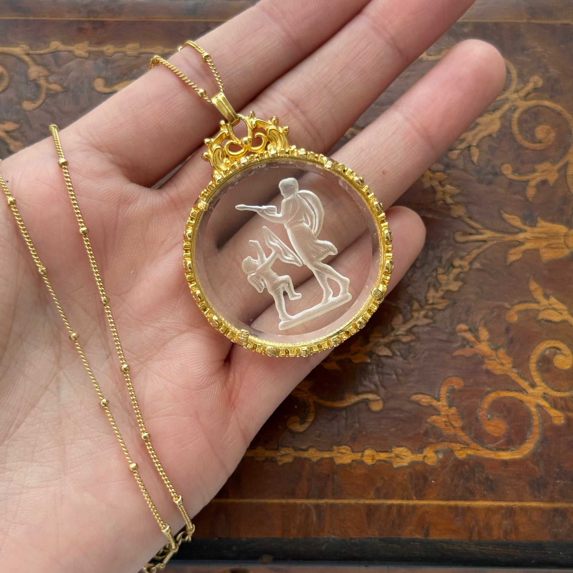 Vintage Glass Intaglio Cherub Necklace Gold Tone