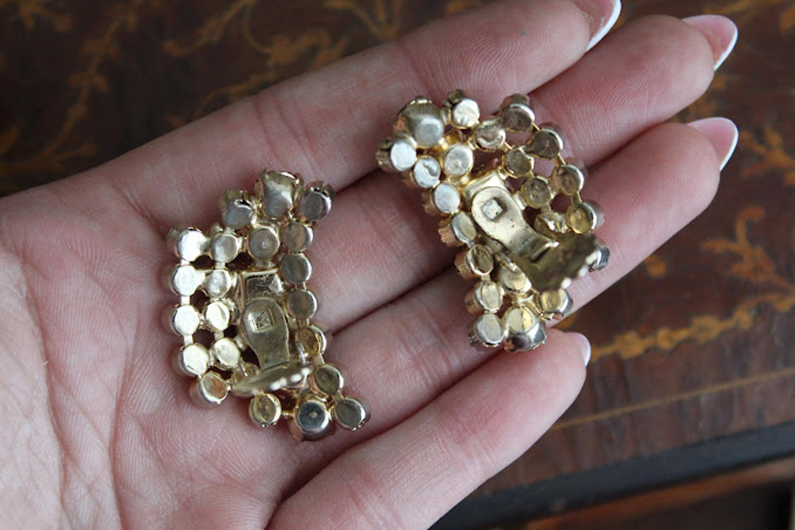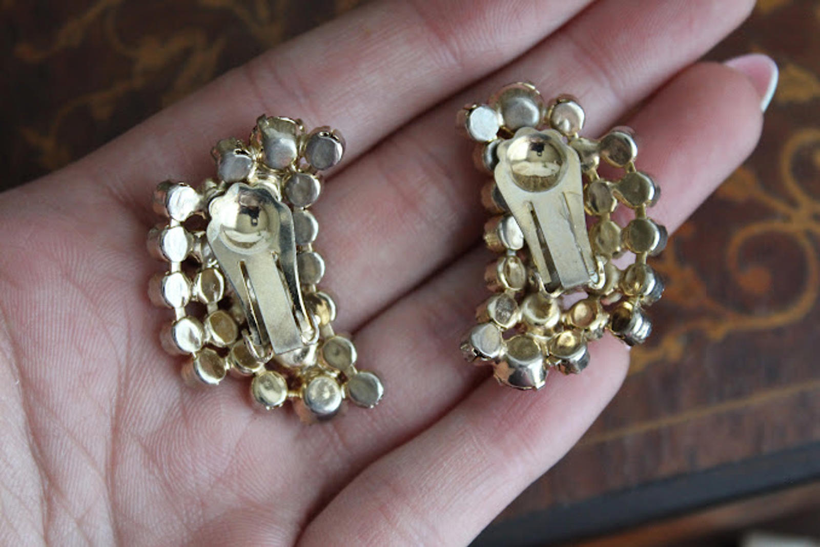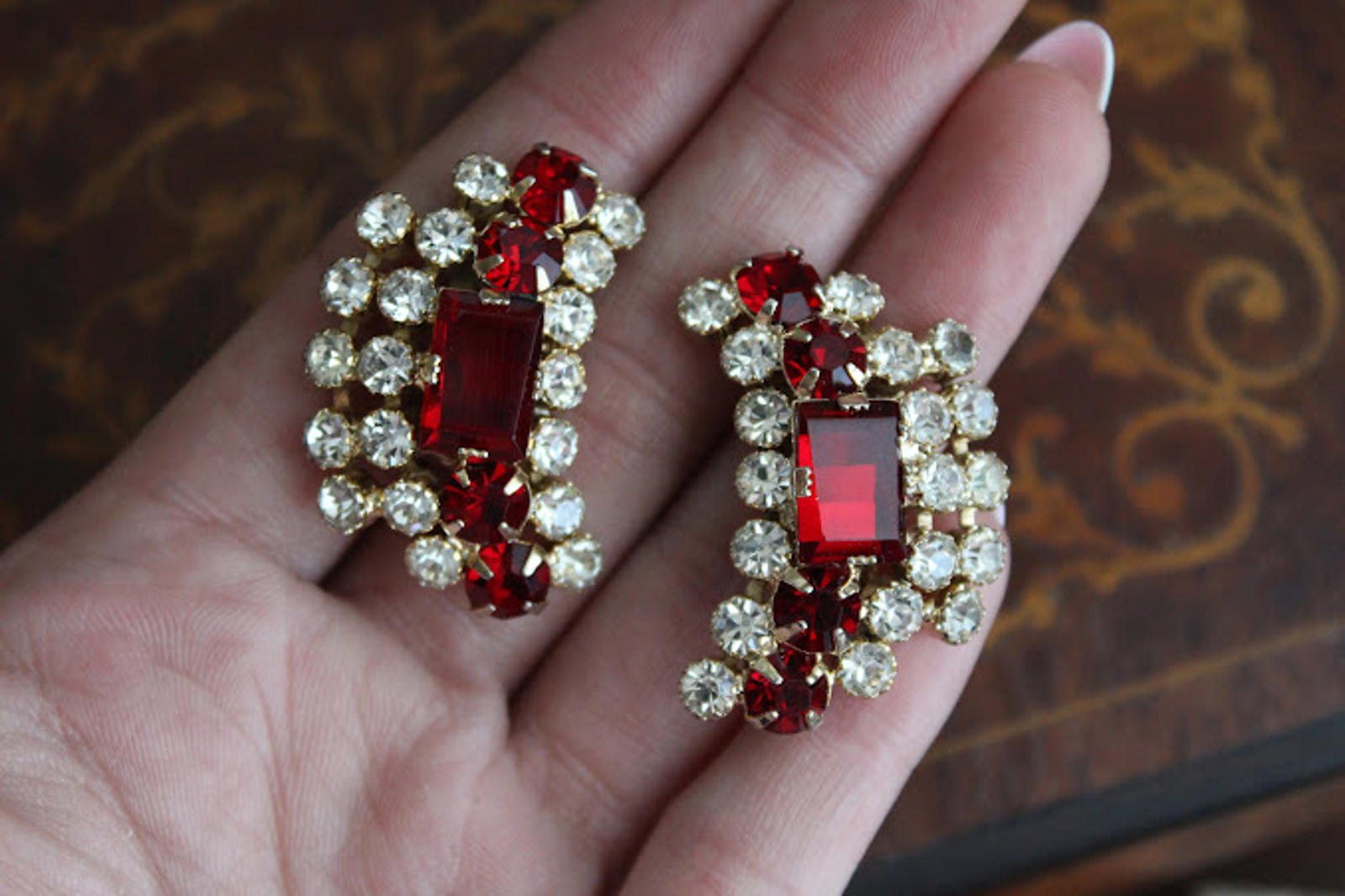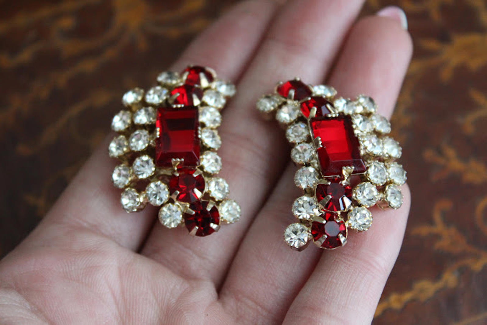 Vintage Glass Red & Clear Rhinestone Clip Earrings