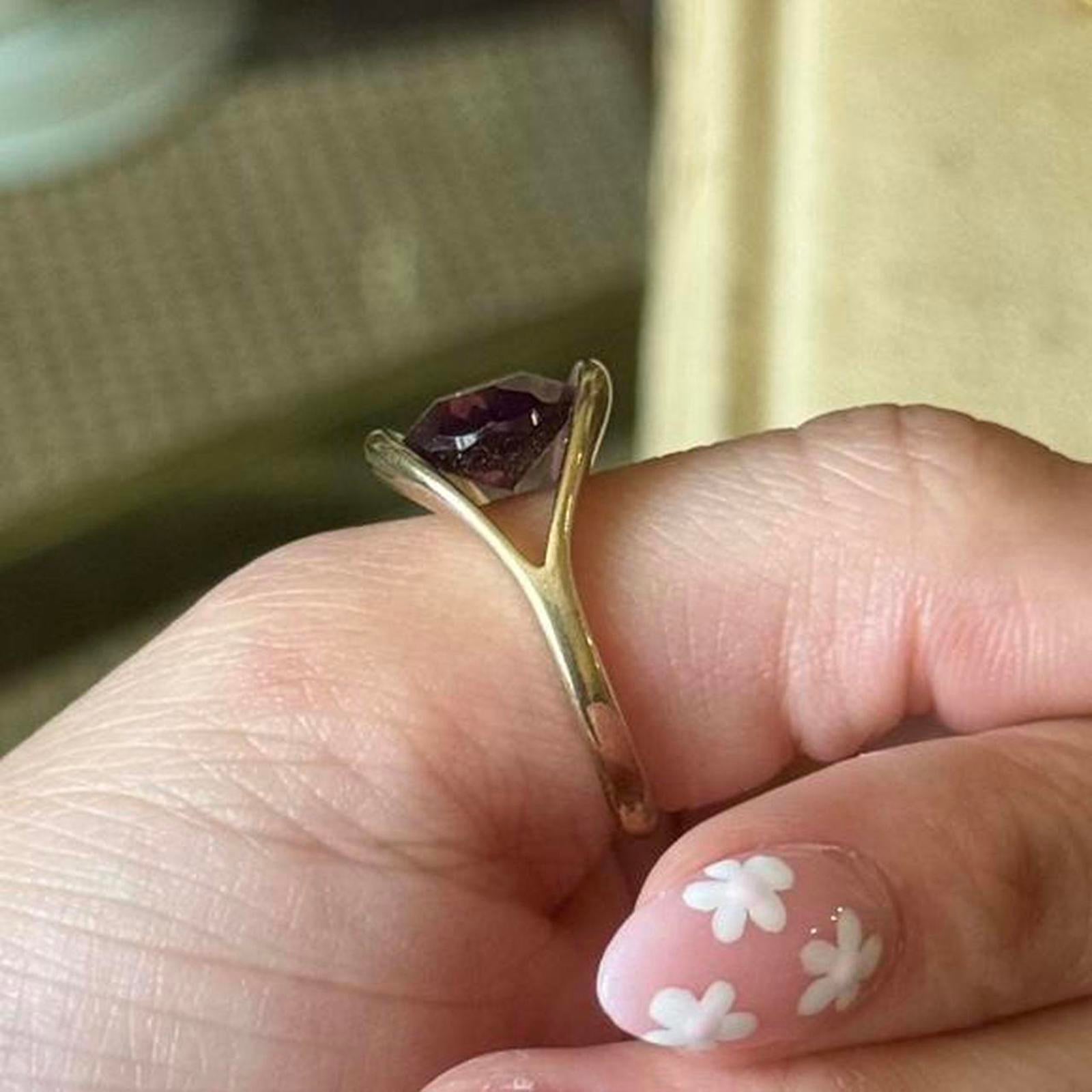 Vintage Gold Electroplated Purple Faux Glass Amethyst Ring