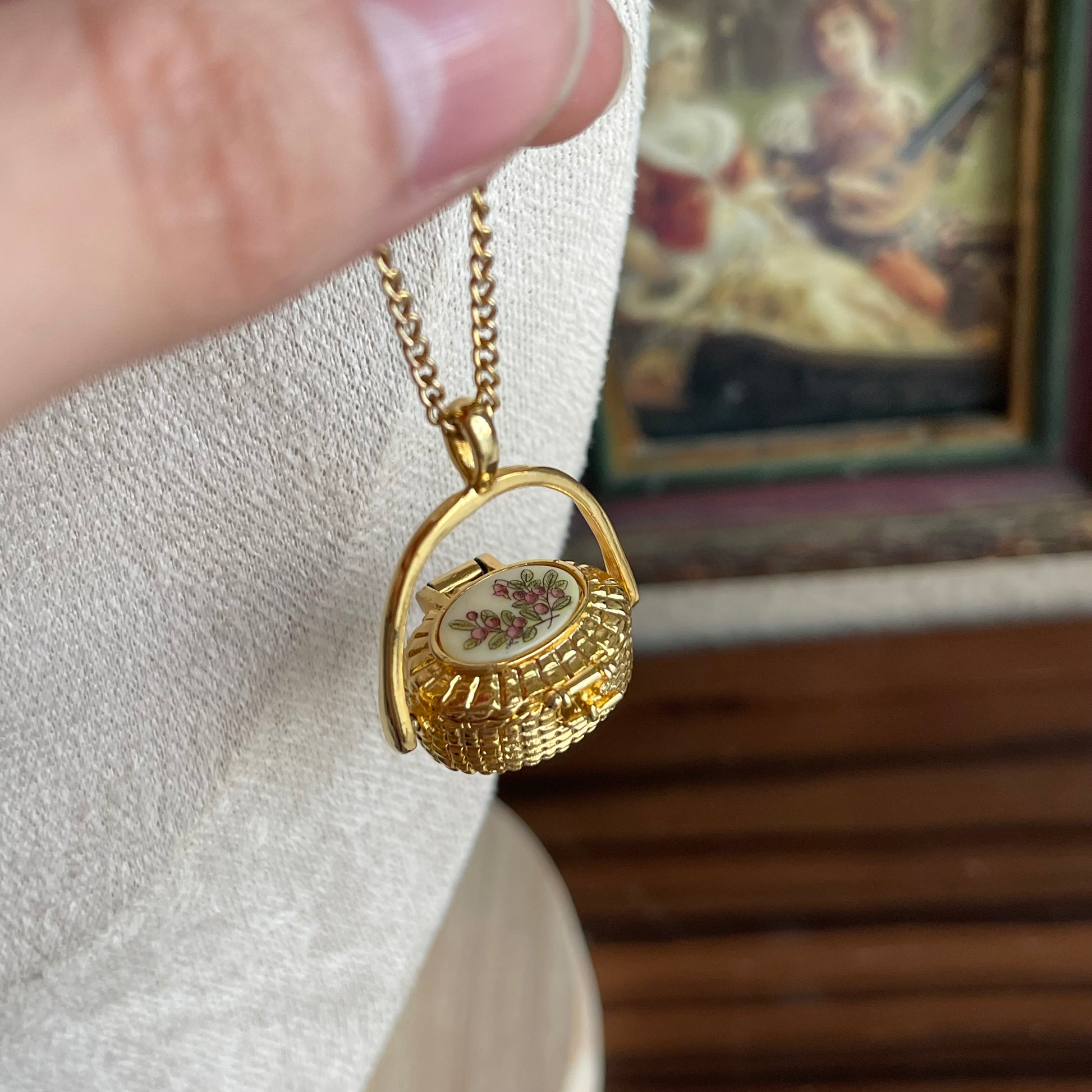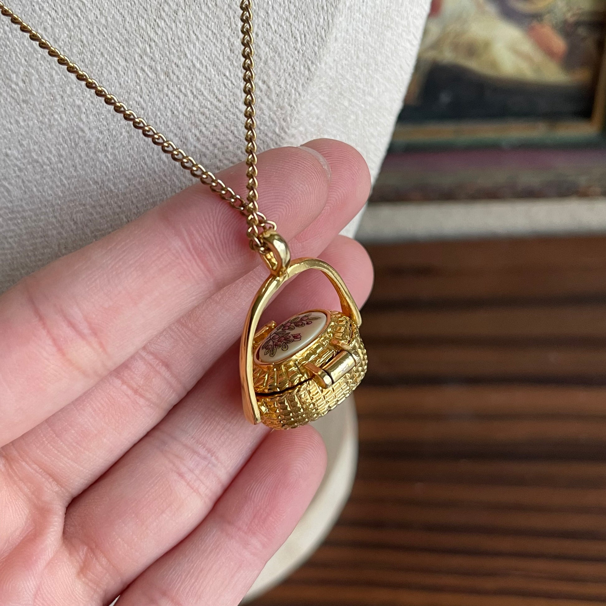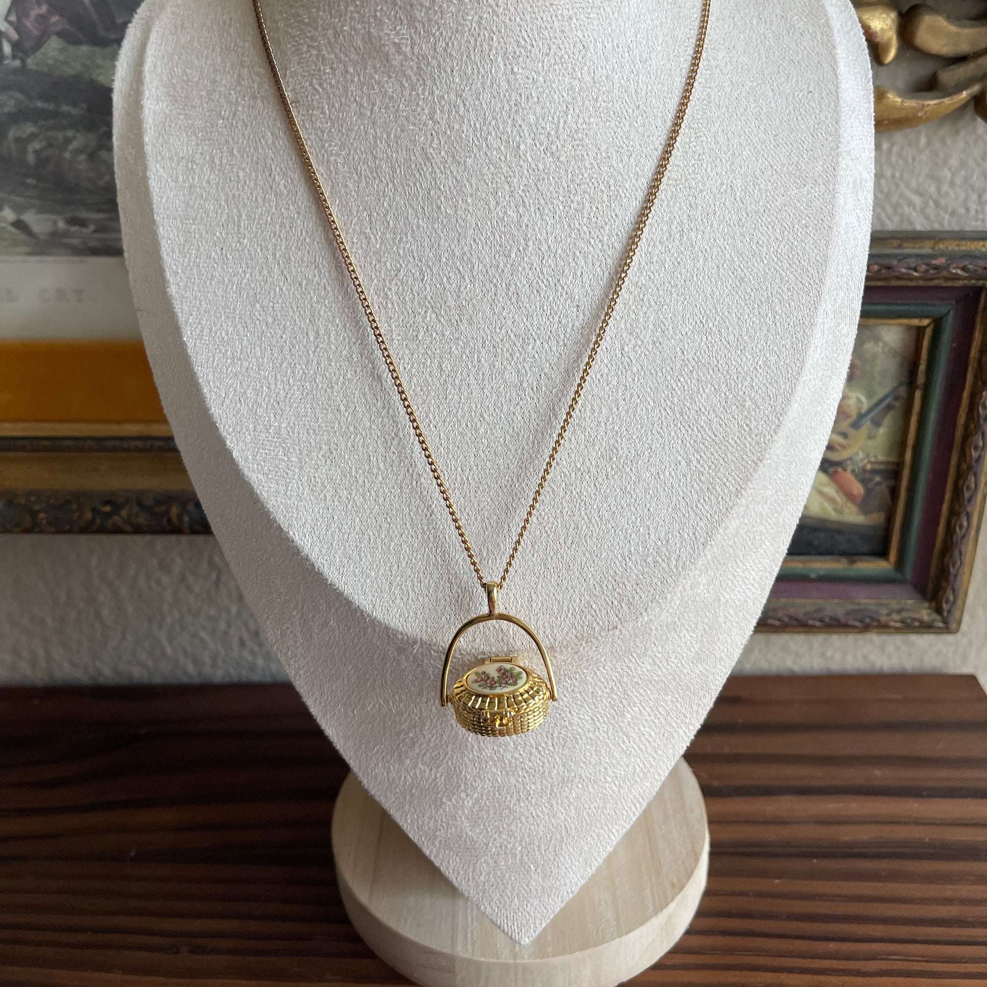 Vintage Gold tone Basket Necklace