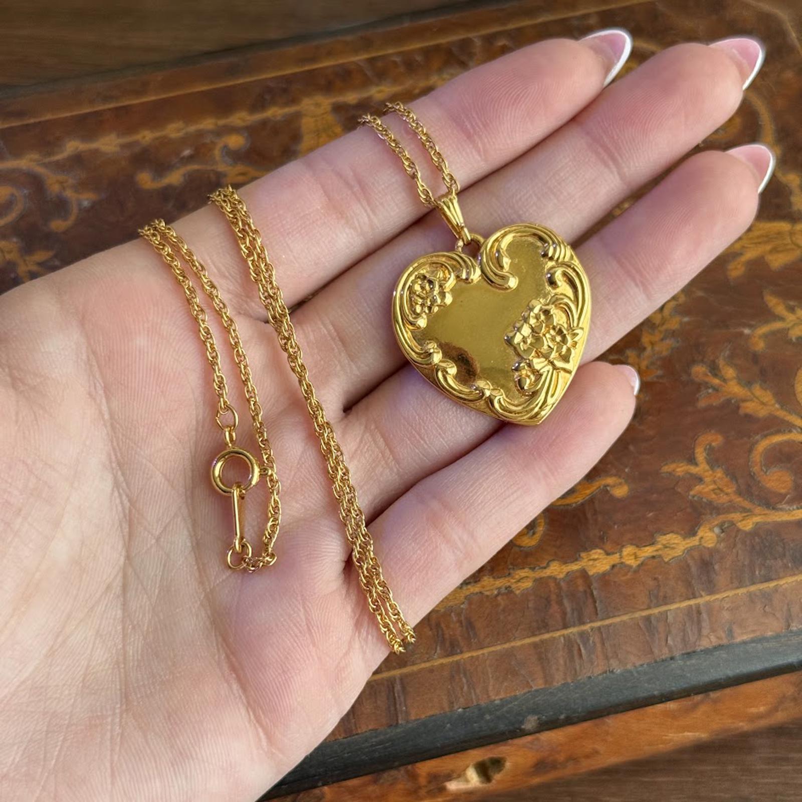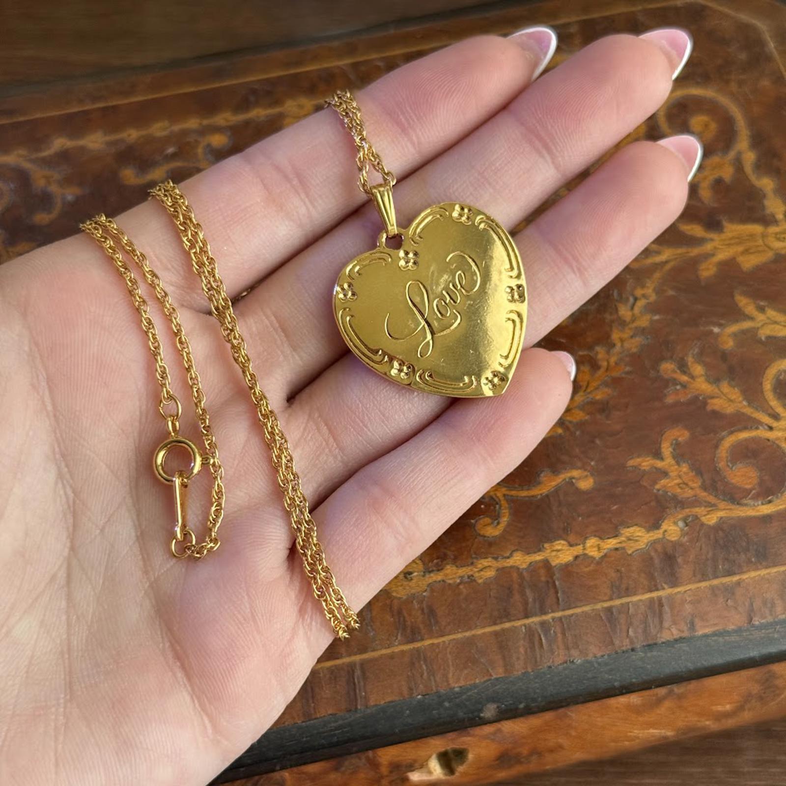 Vintage Gold tone Heart Shape "Love" Pendant Necklace