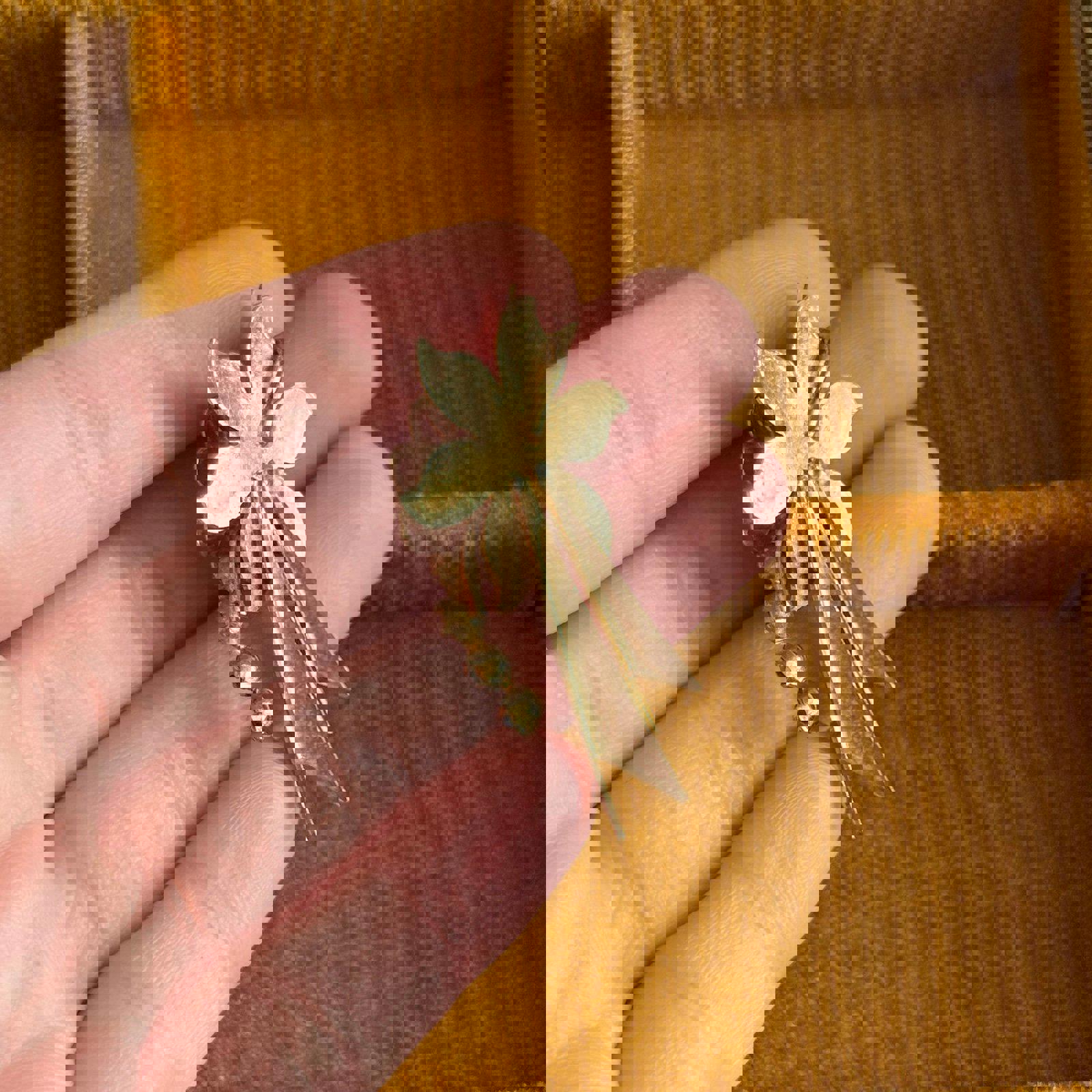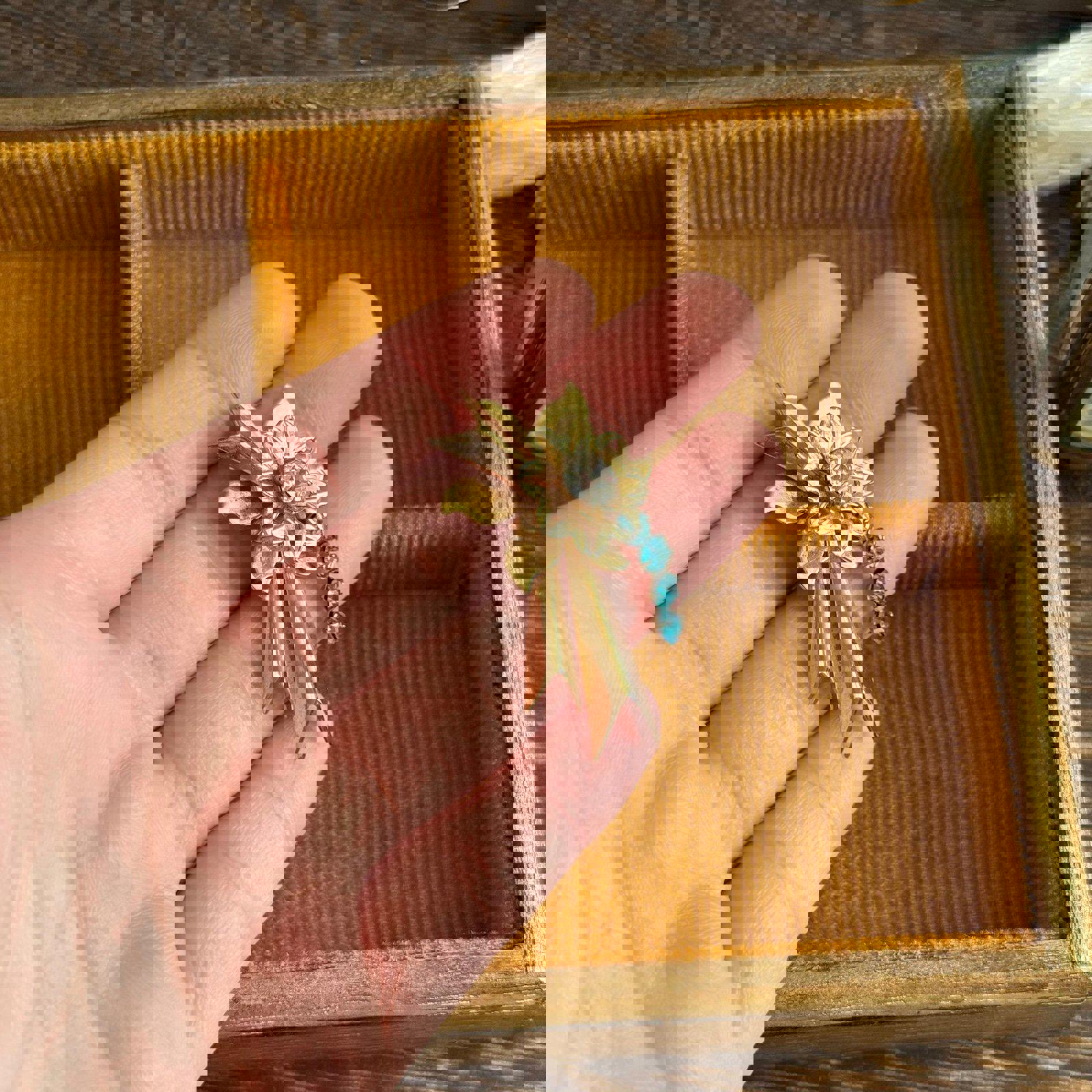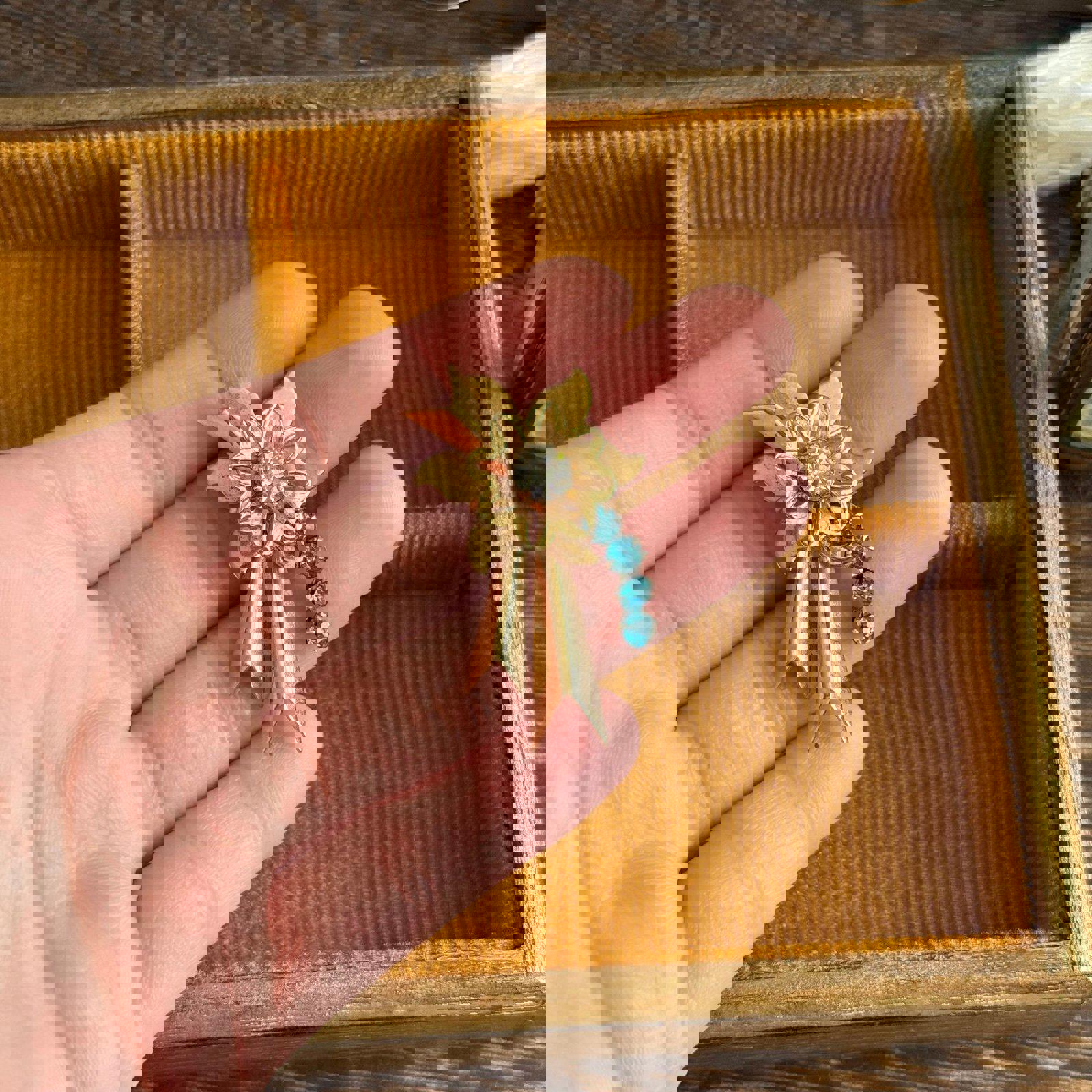 Vintage Gold tone with blue & clear stonesFlower Pendant