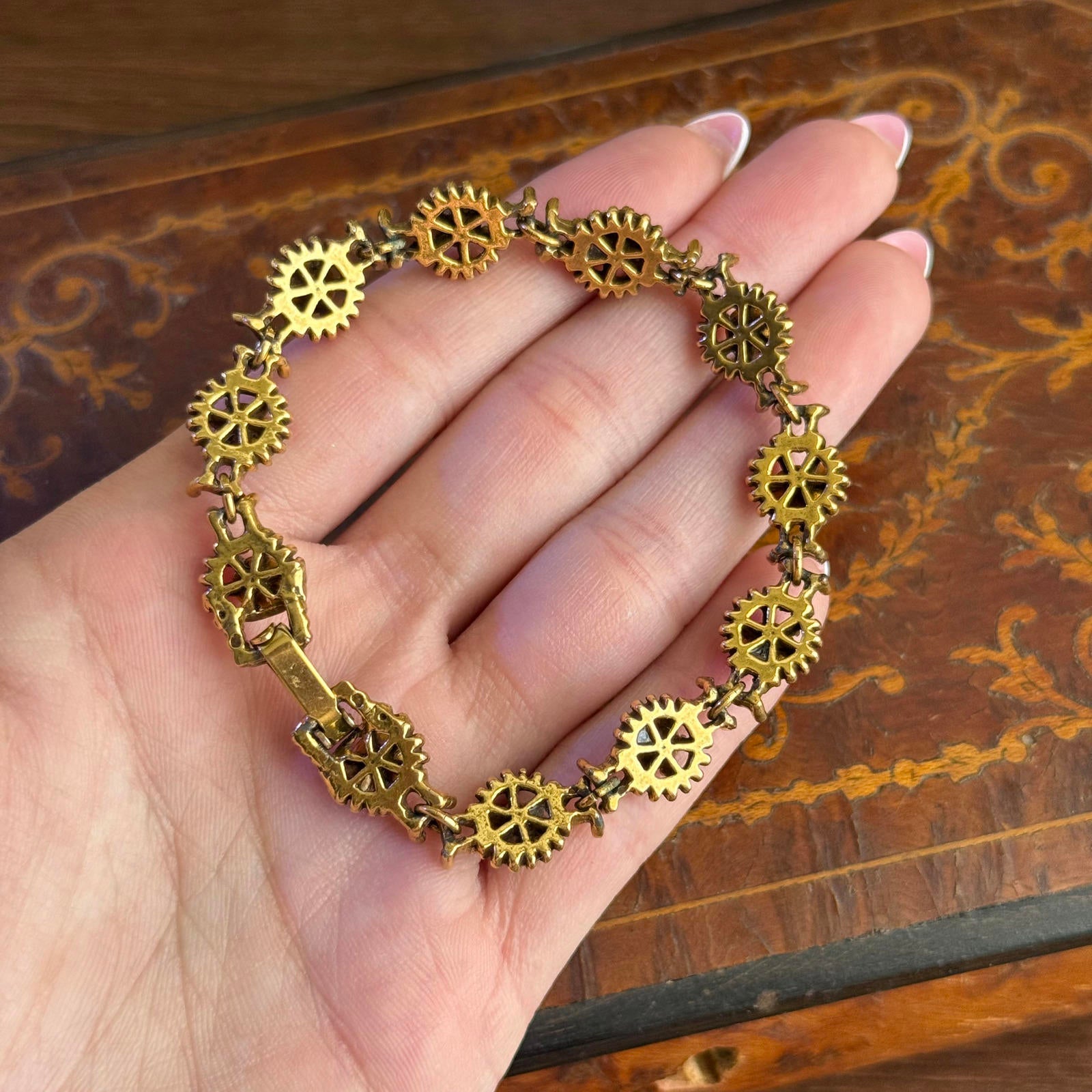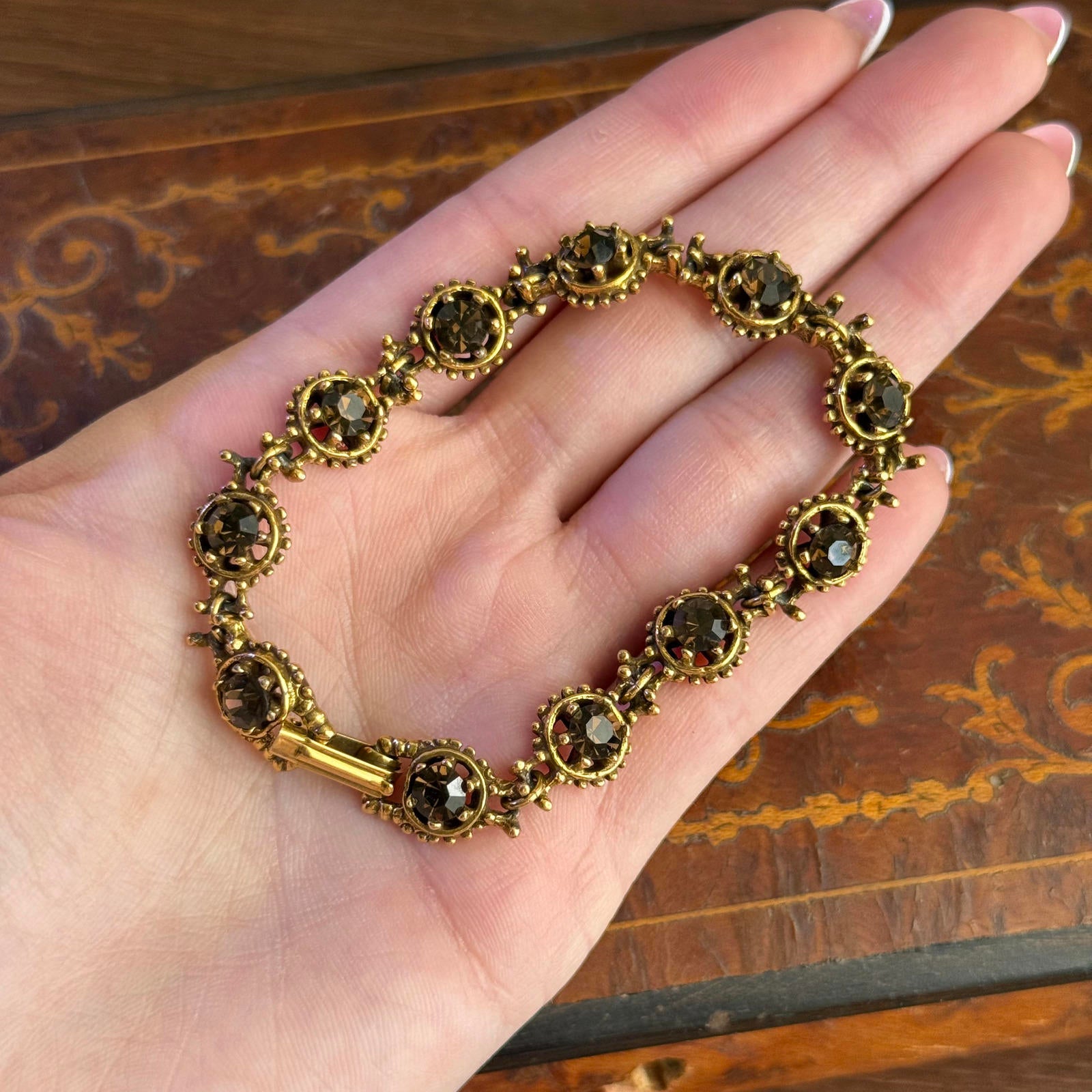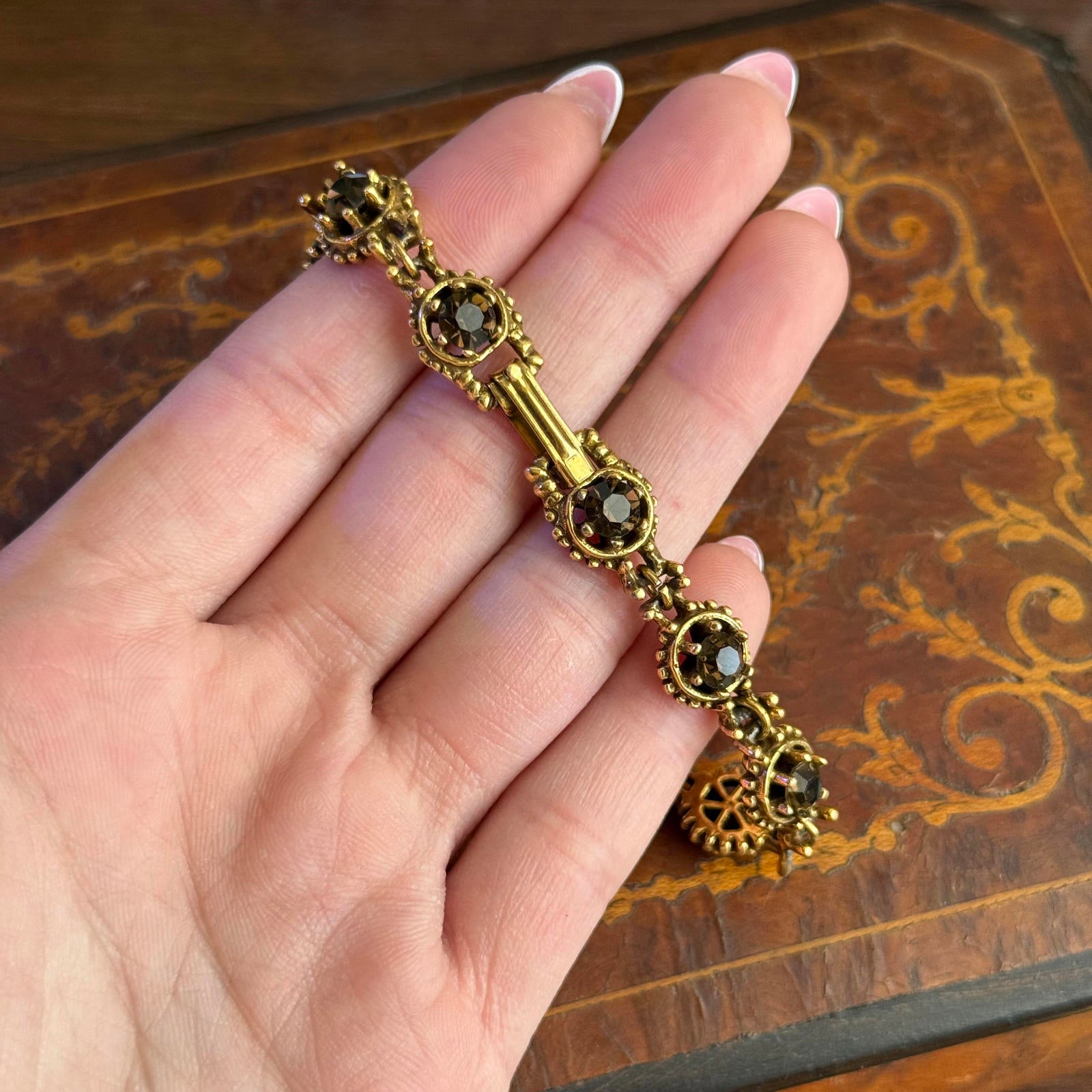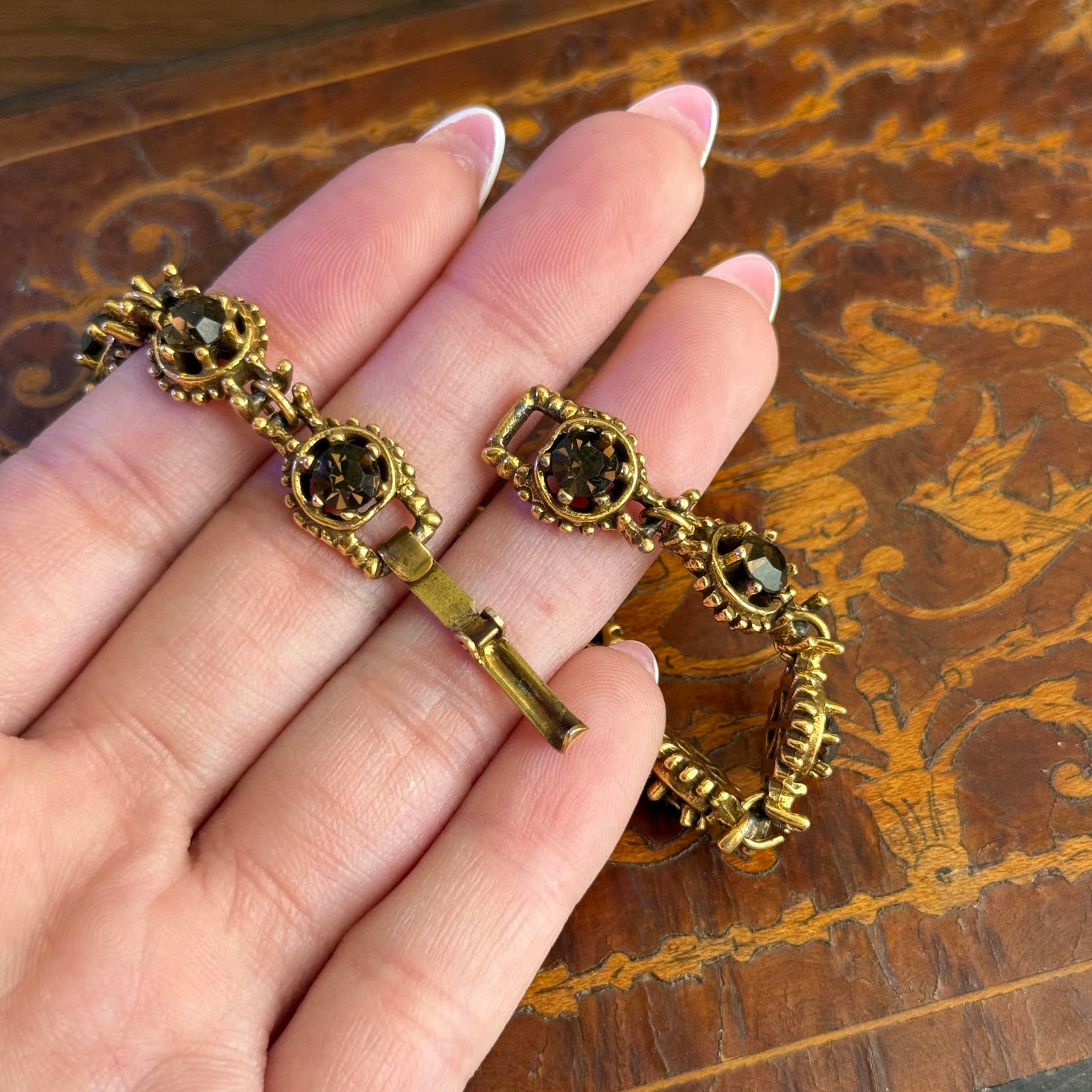 Vintage Gold Tone with Brown Glass Rhinestone Chain Bracelet