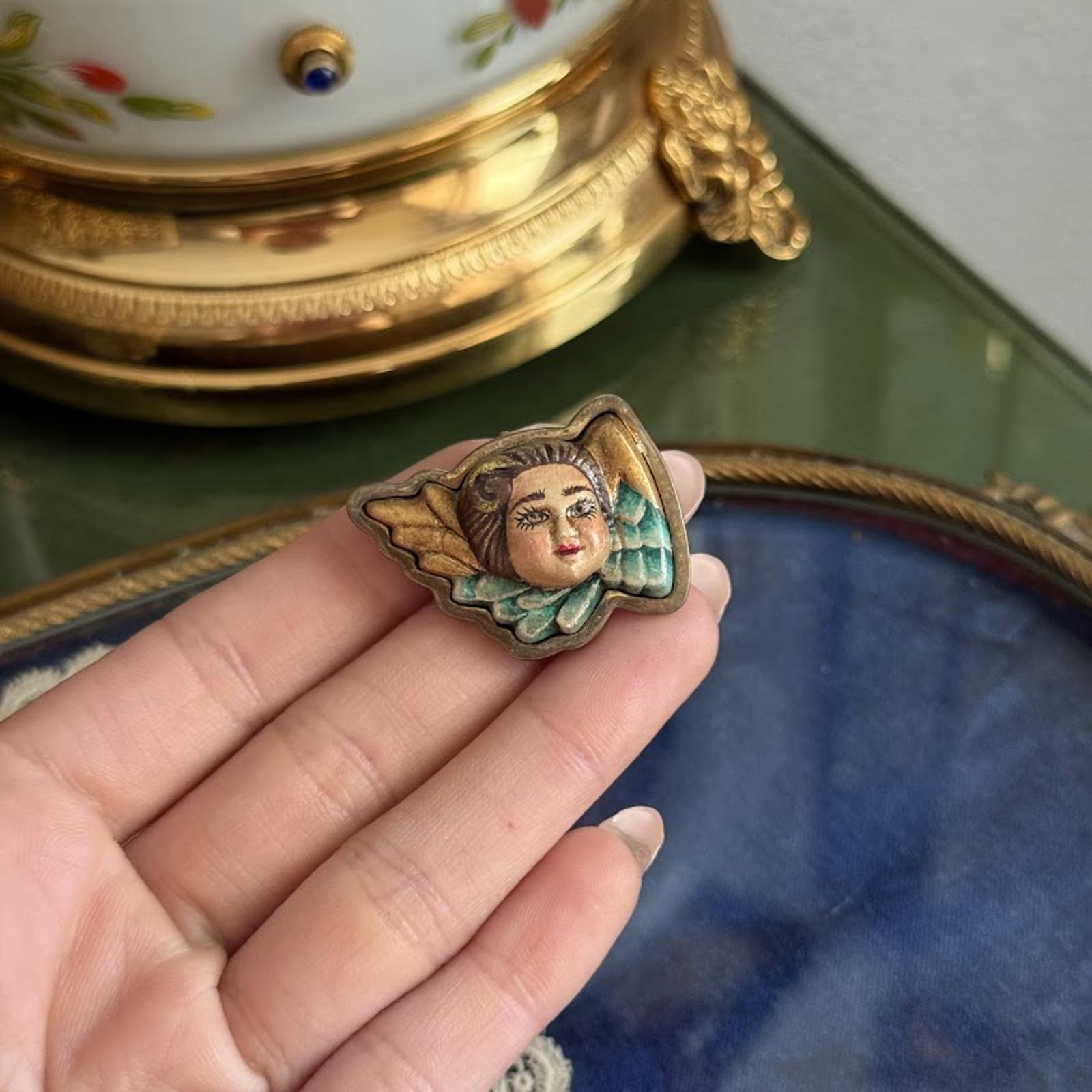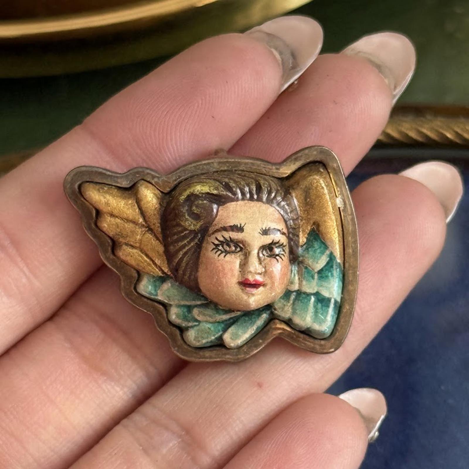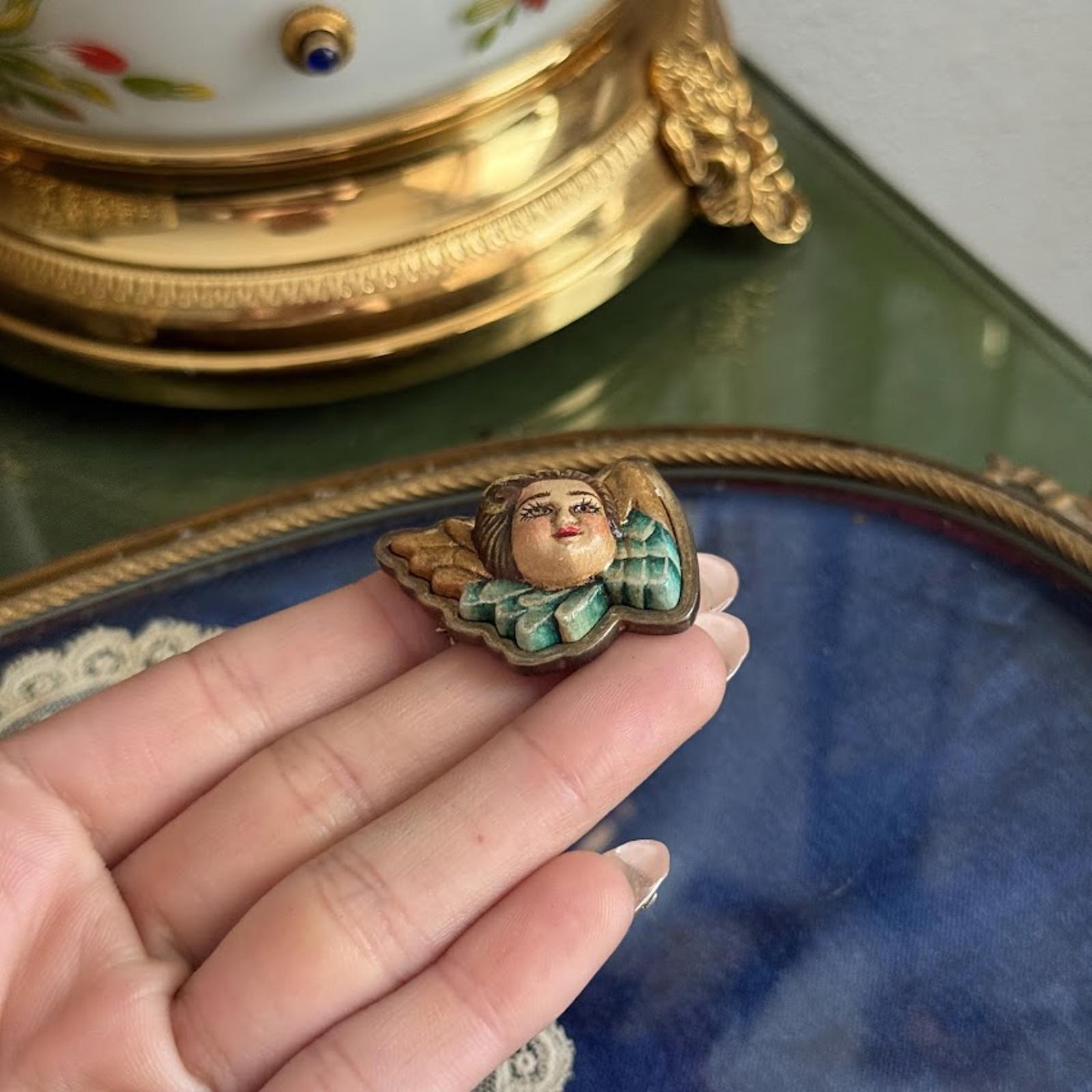Vintage Hand Painted Angel Cherub Brooch Pendant
