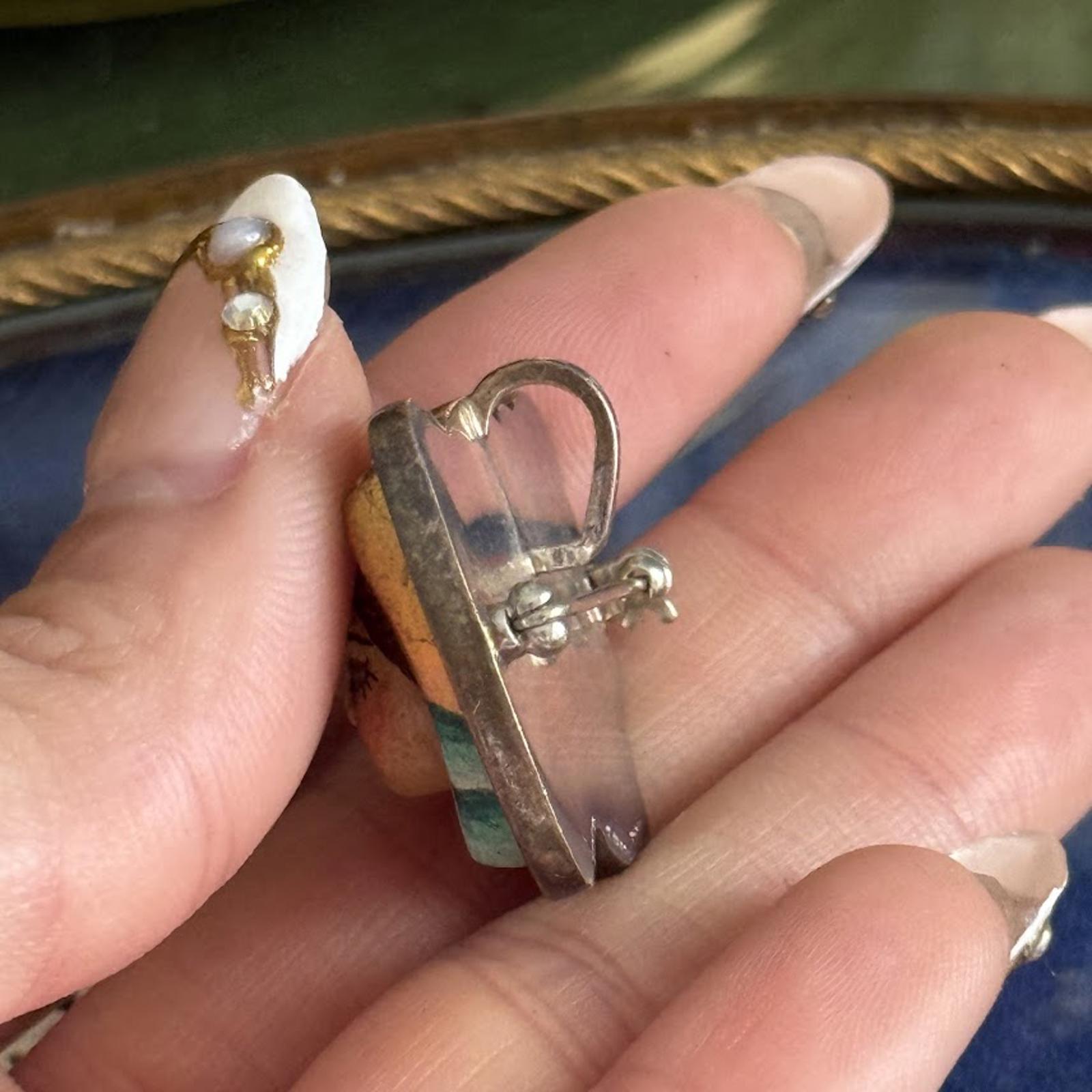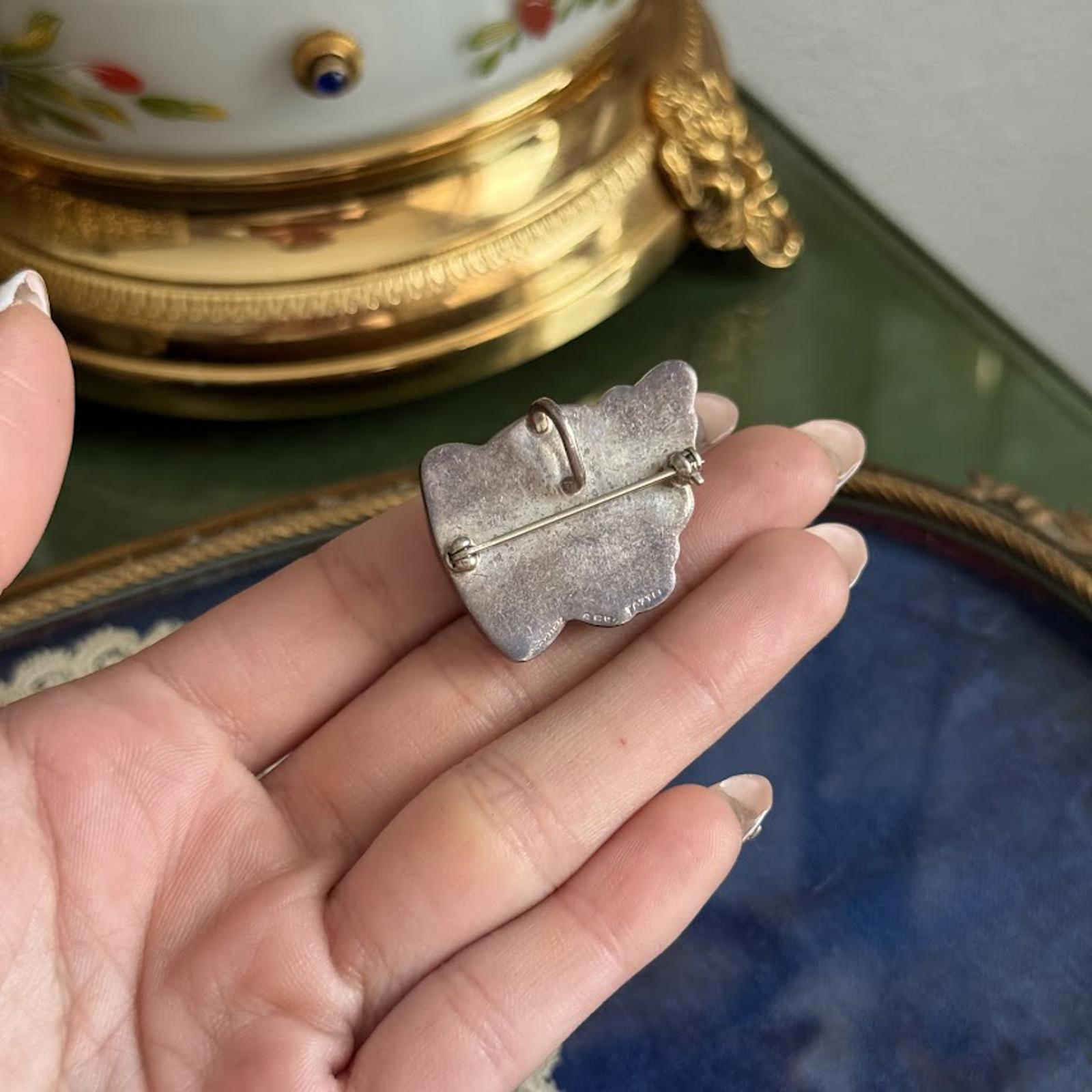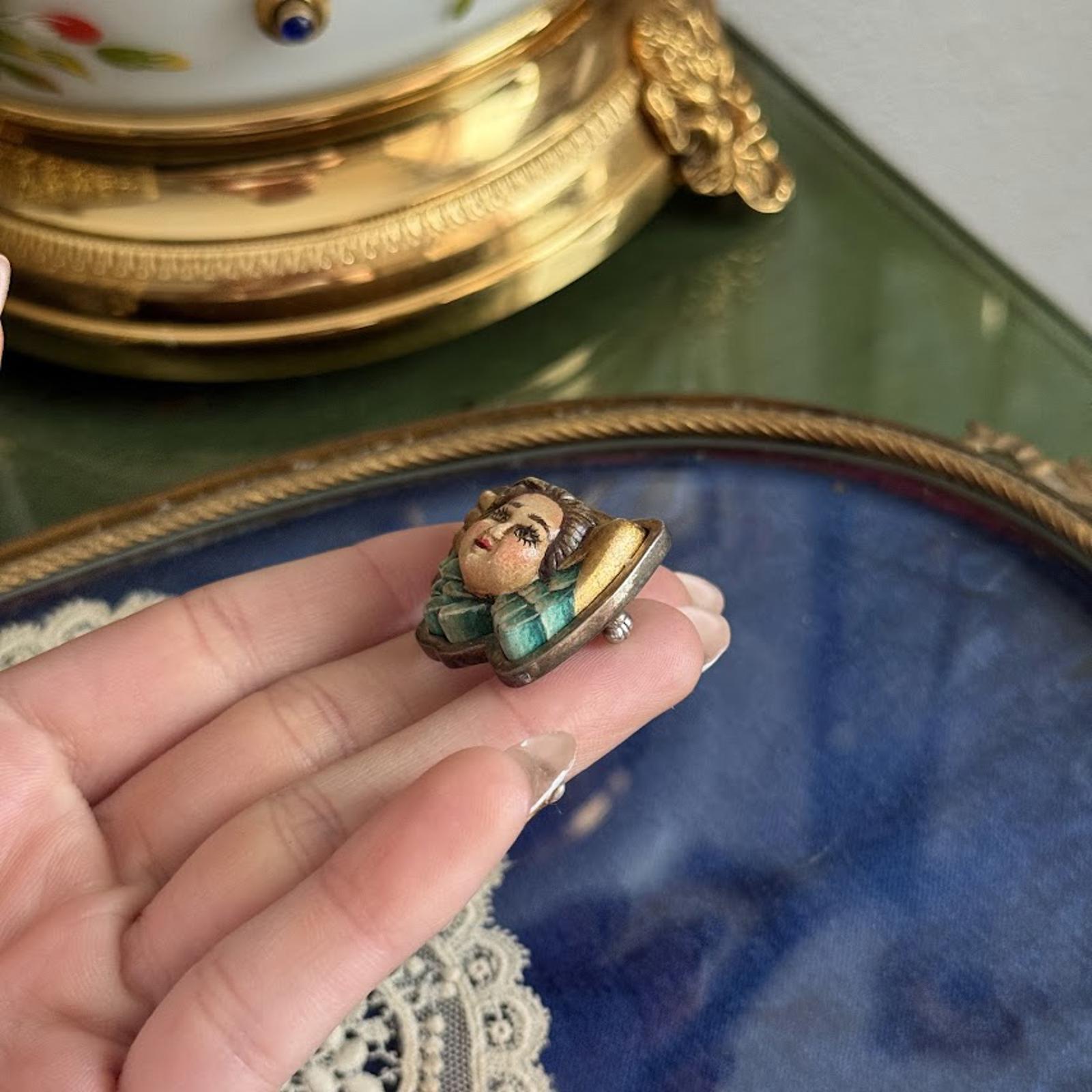 Vintage Hand Painted Angel Cherub Brooch Pendant