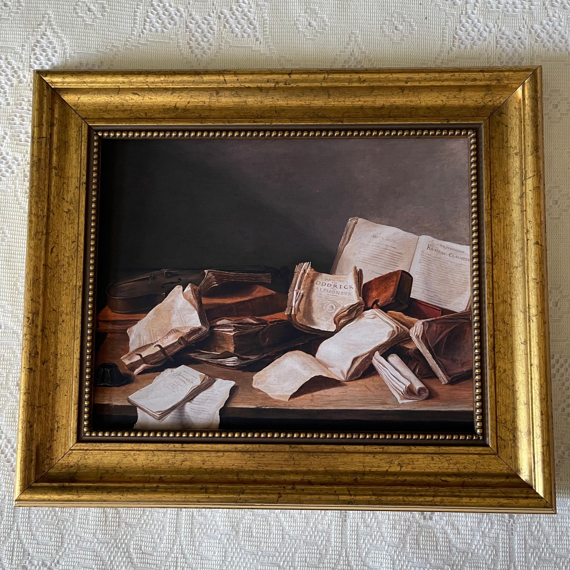 Vintage Inspired stack of vintage books art Print framed Gallery Wall