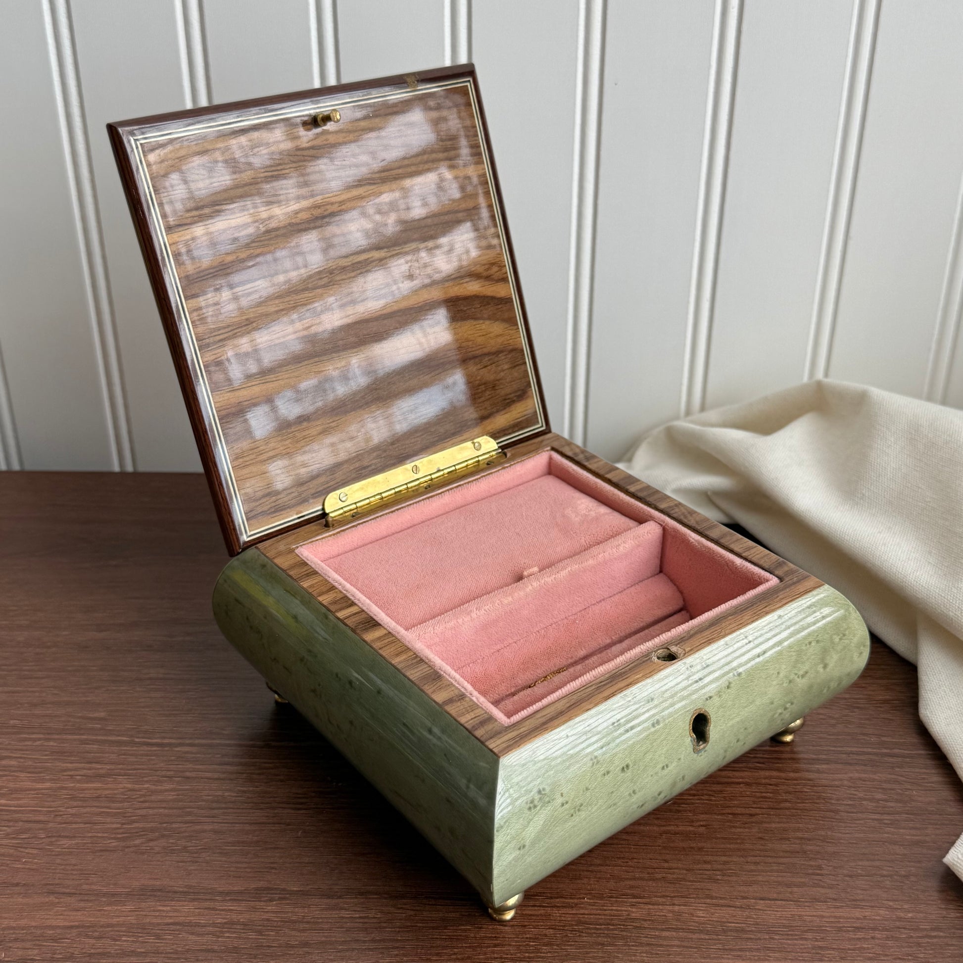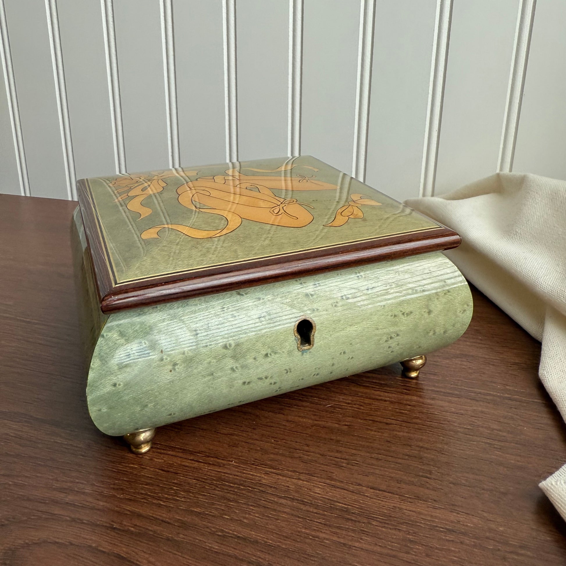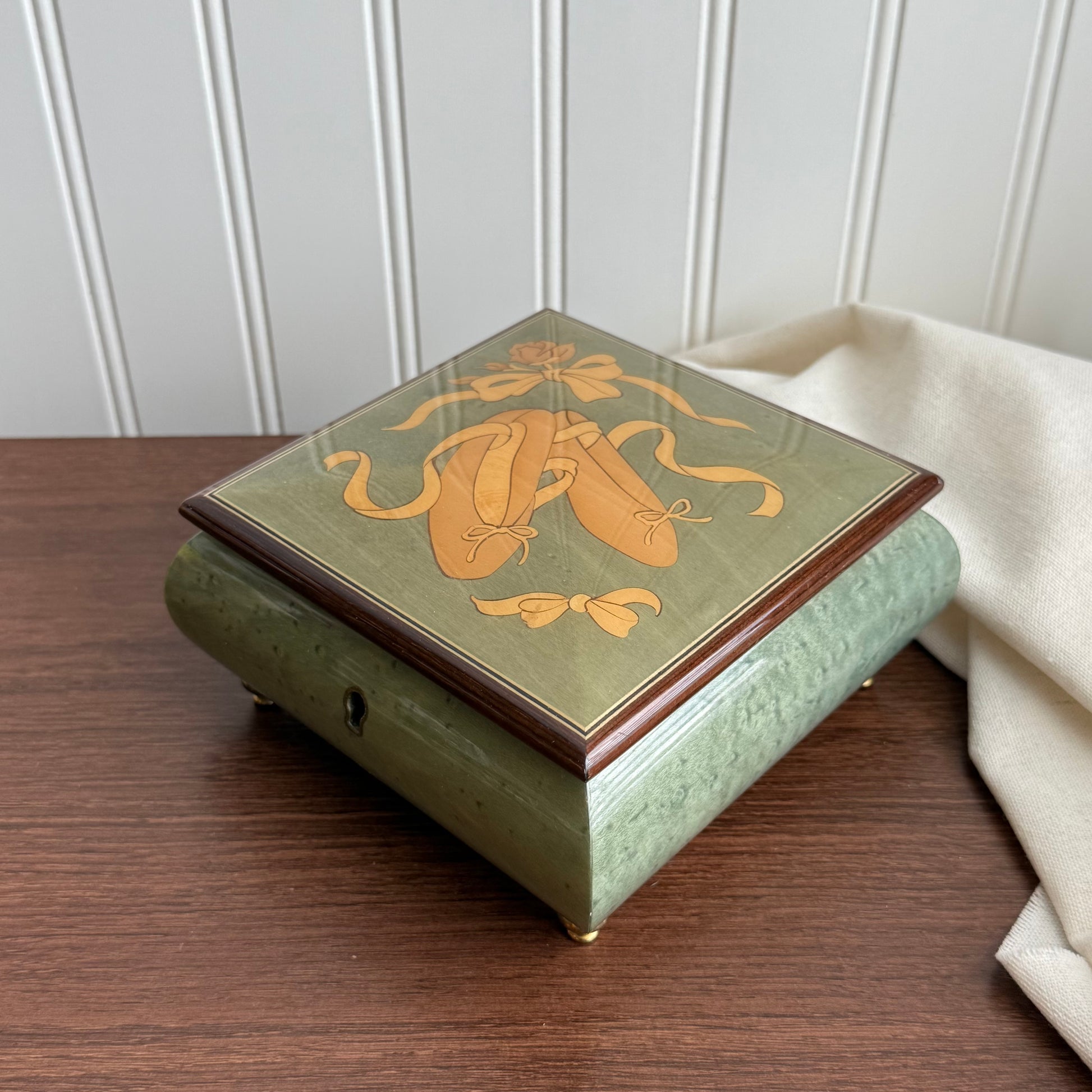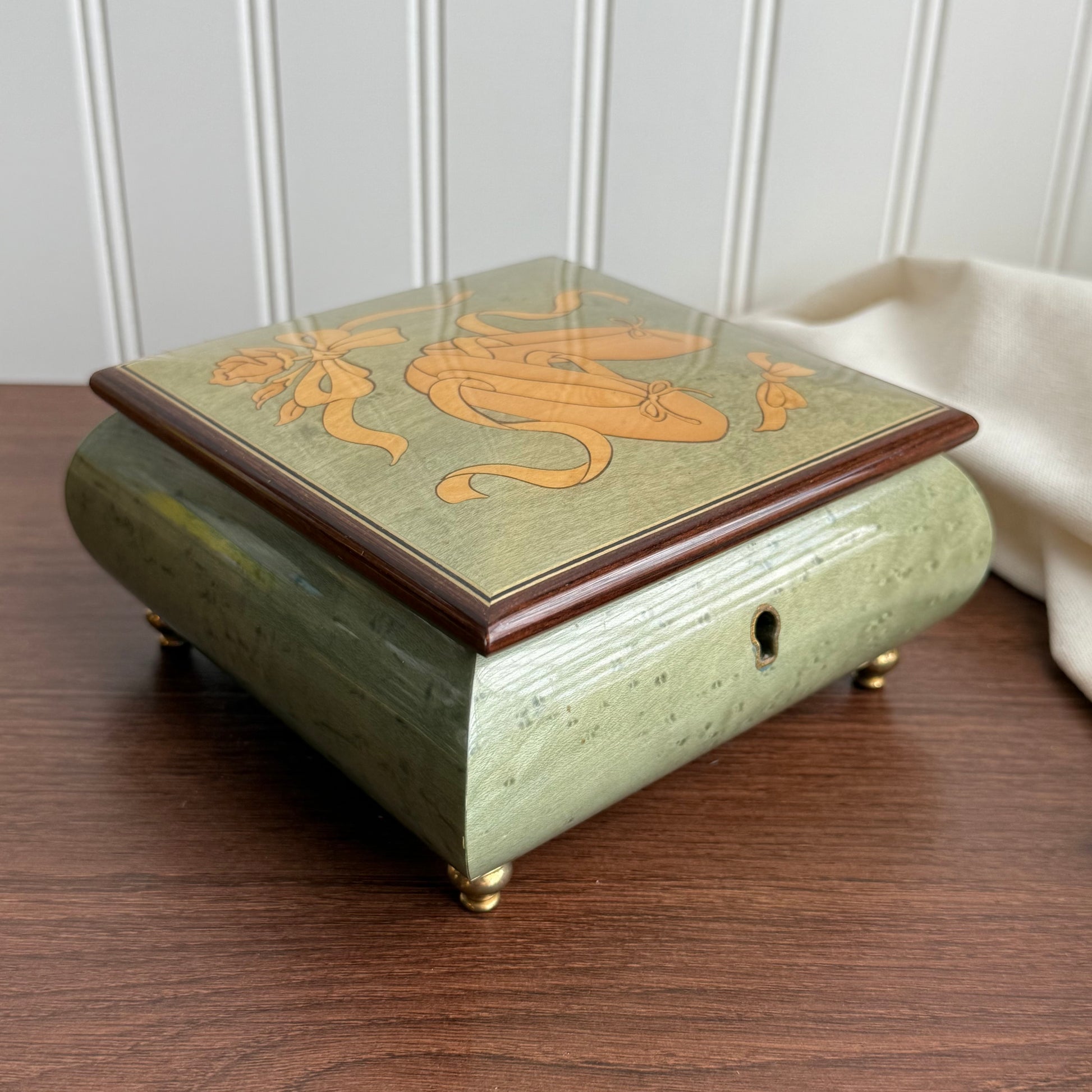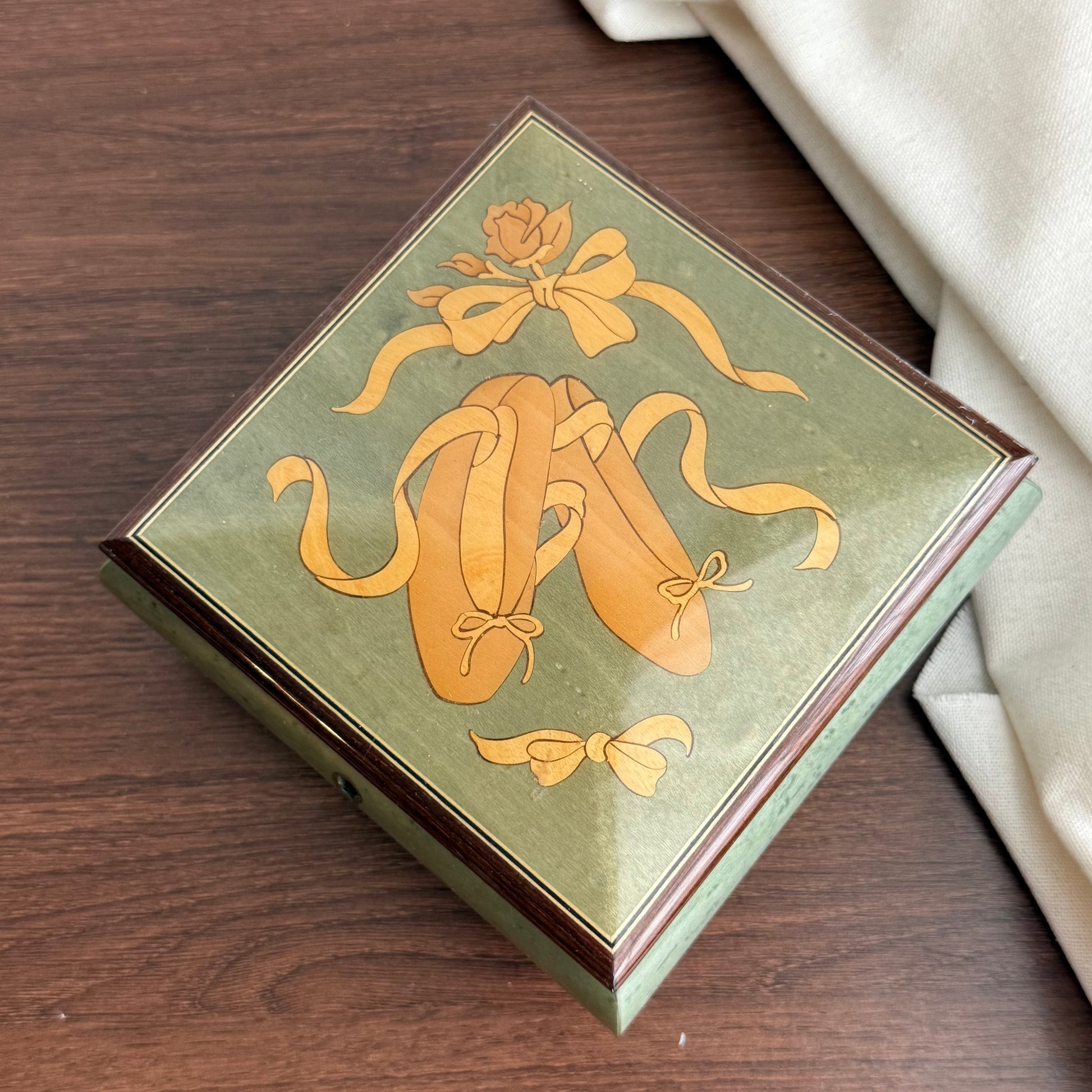 Vintage Italian ballerina Inlaid MusicalWooden Jewelry Box