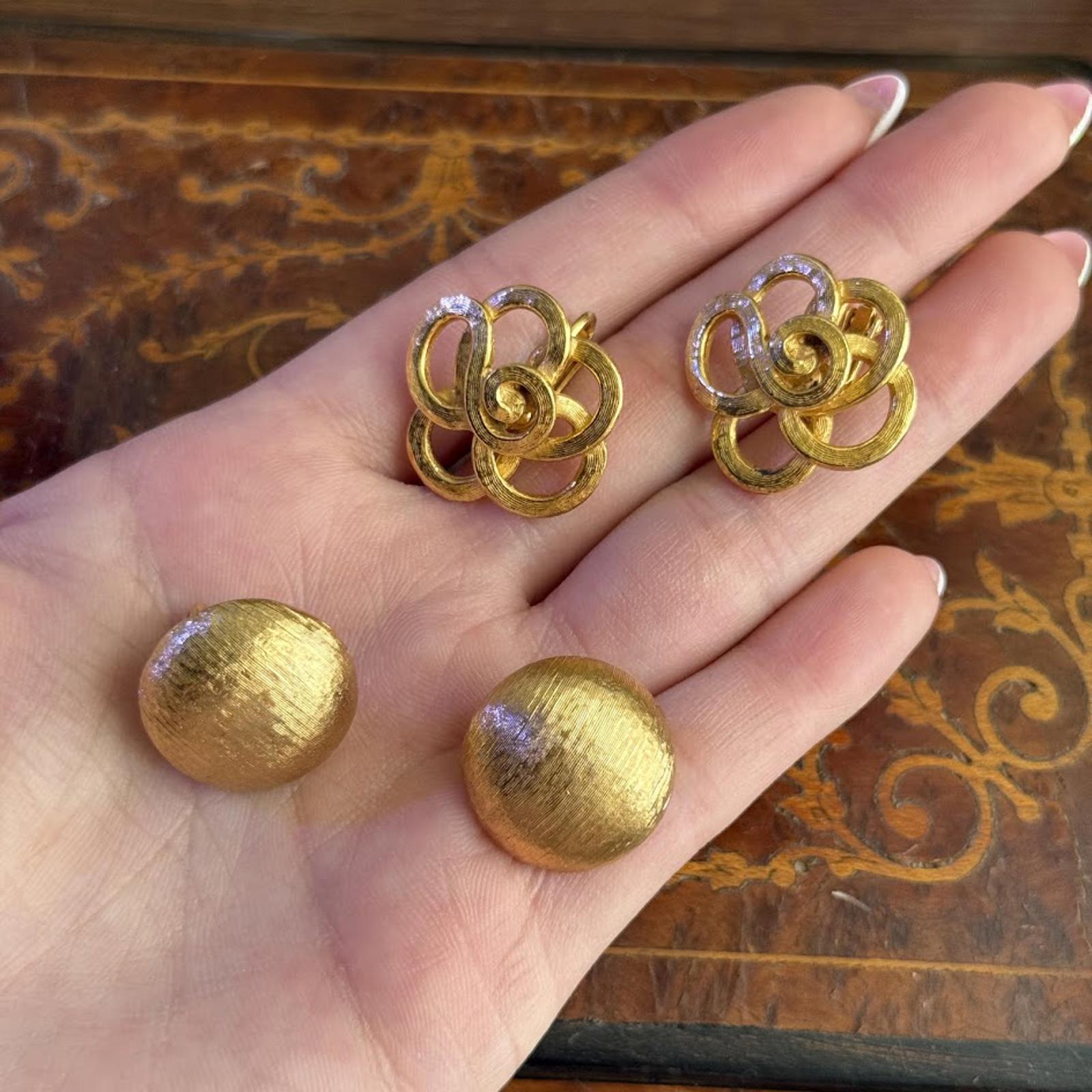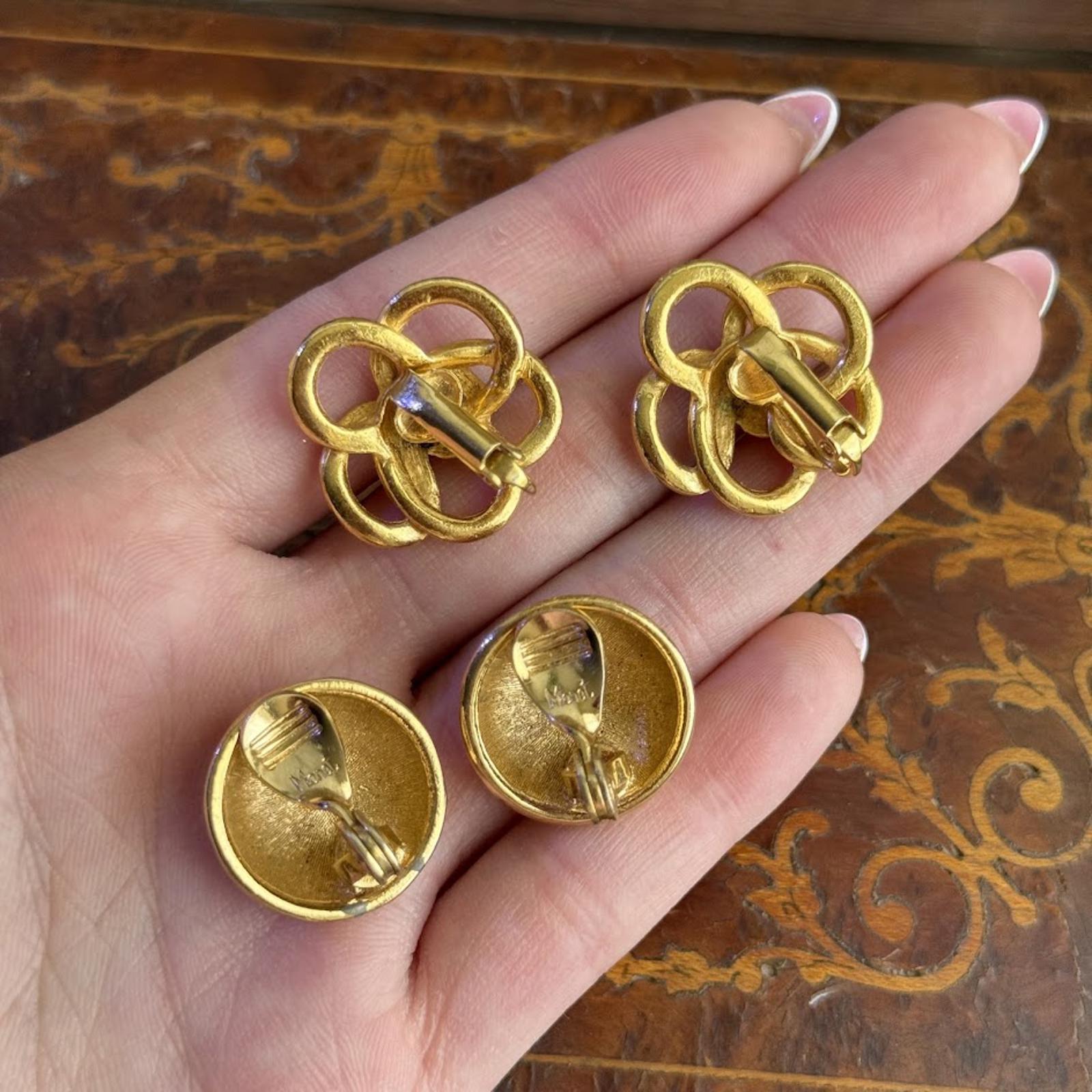 Vintage Knot gold tone earrings & Vintage Gold tone circle Monet Earrings