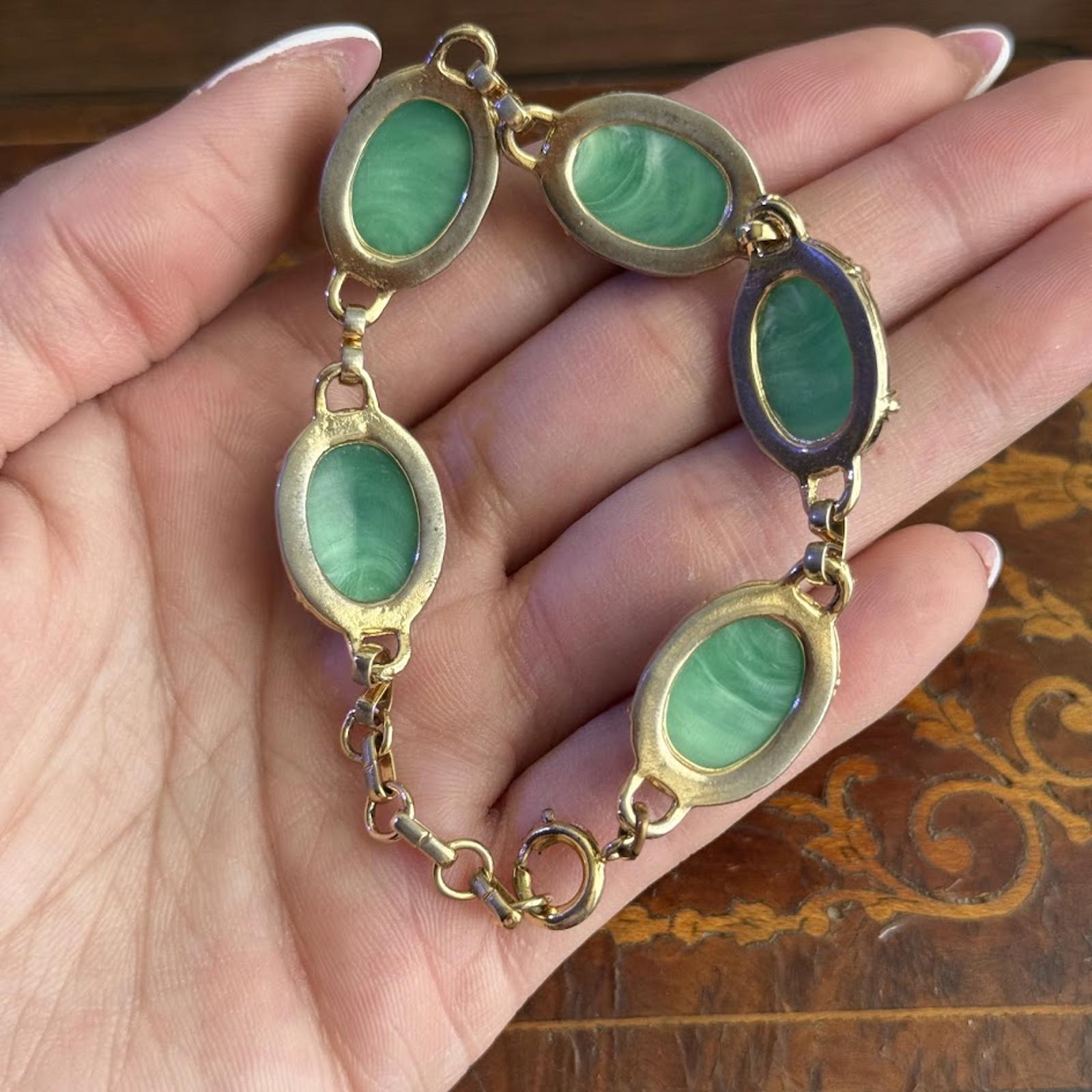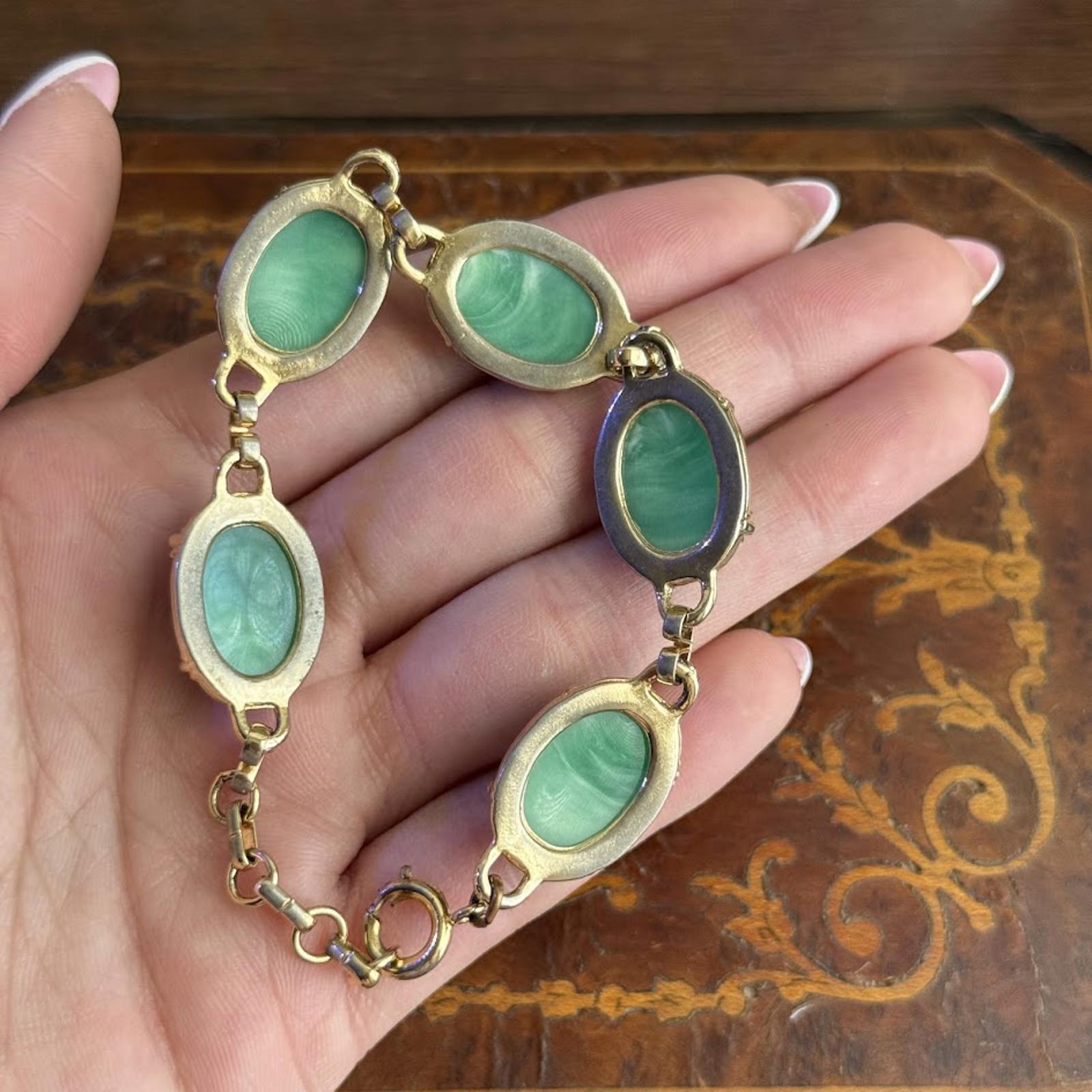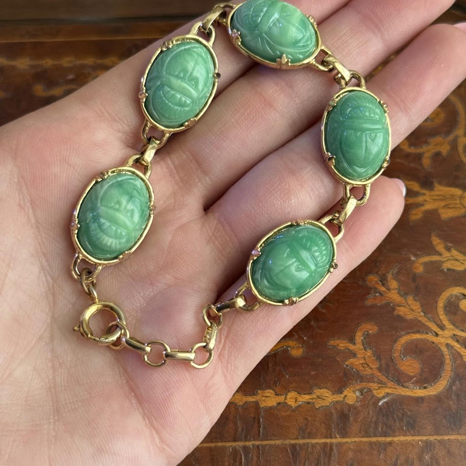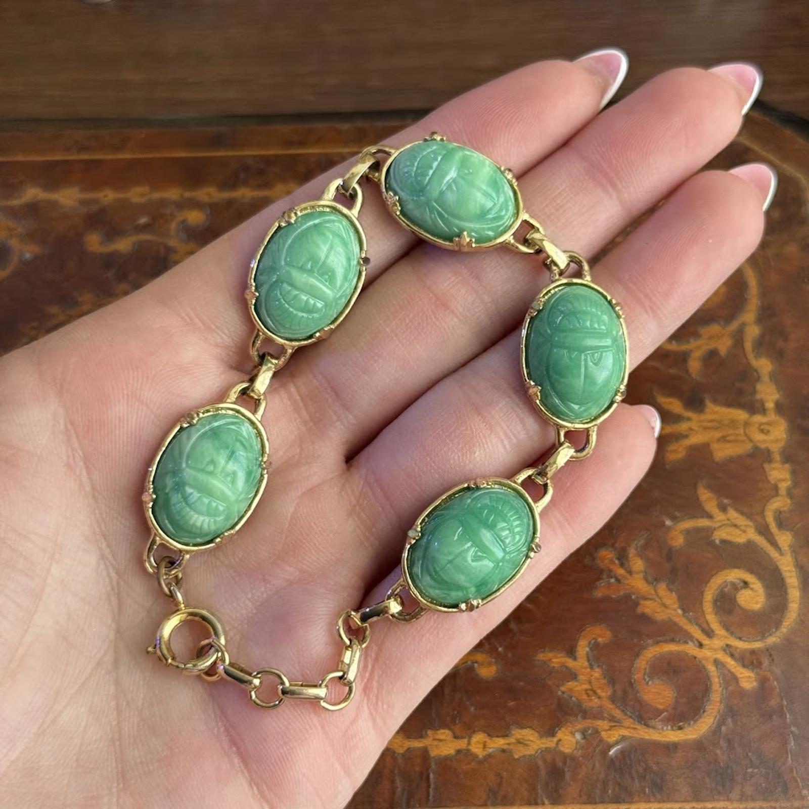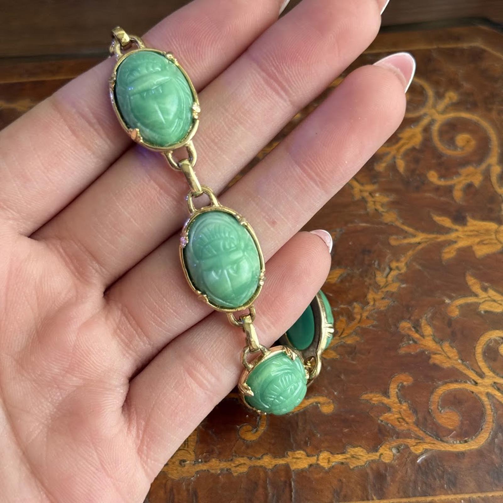 Vintage Mid Century Gold Tone Faux Scarab Bracelet