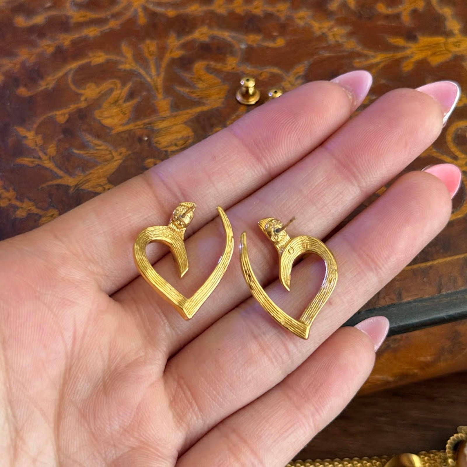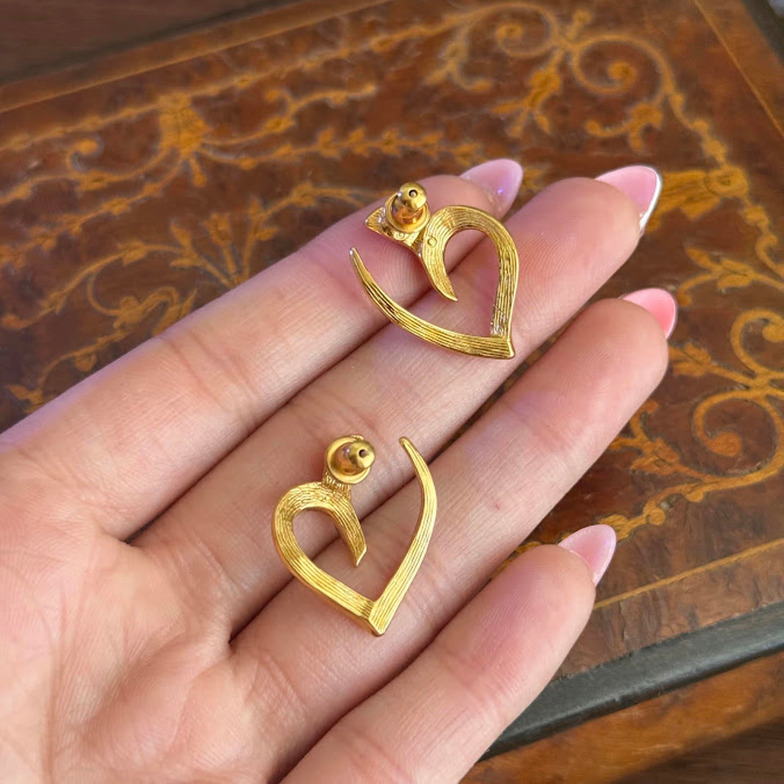 Vintage Monet Gold Tone Open Heart Leaf Drop Pierced Earrings