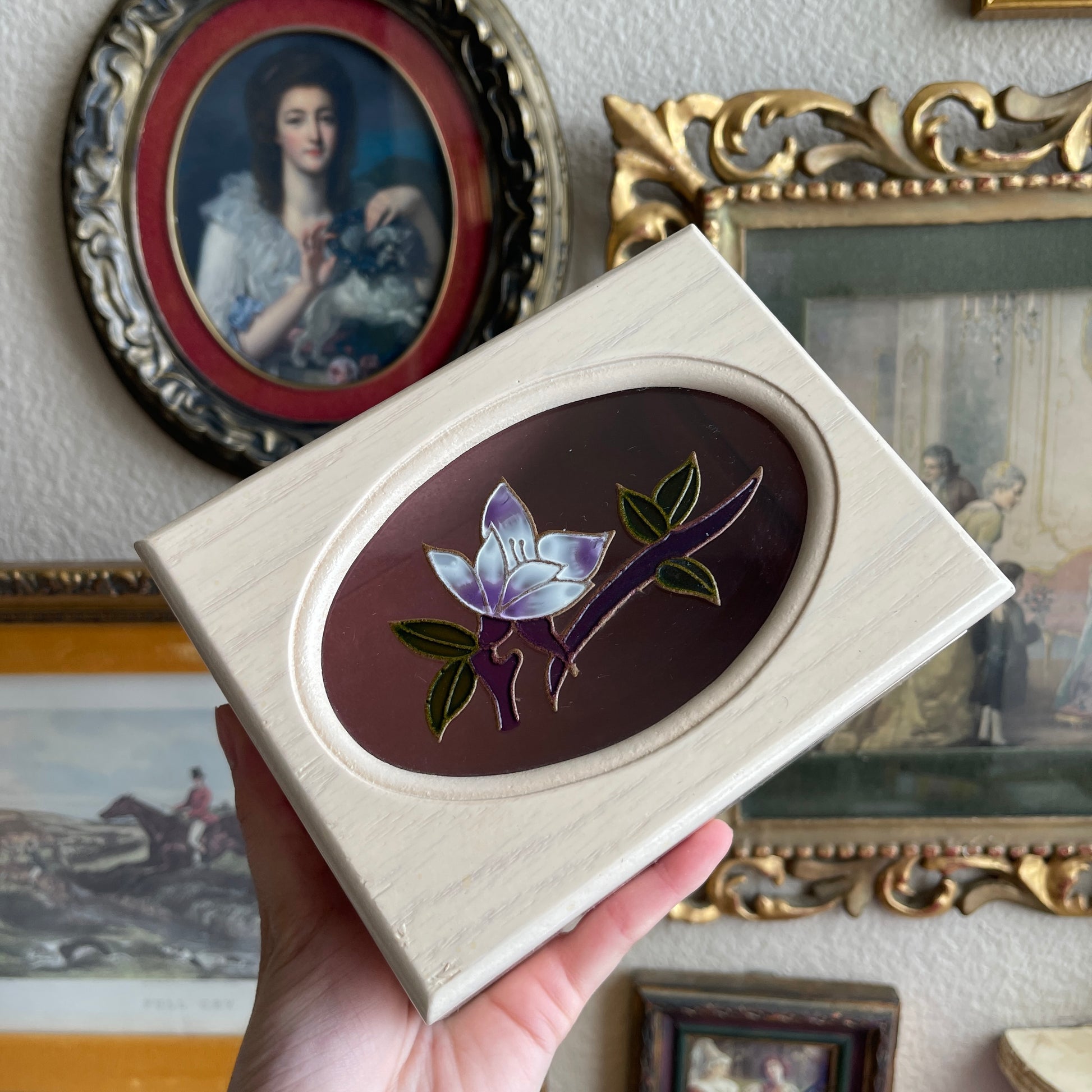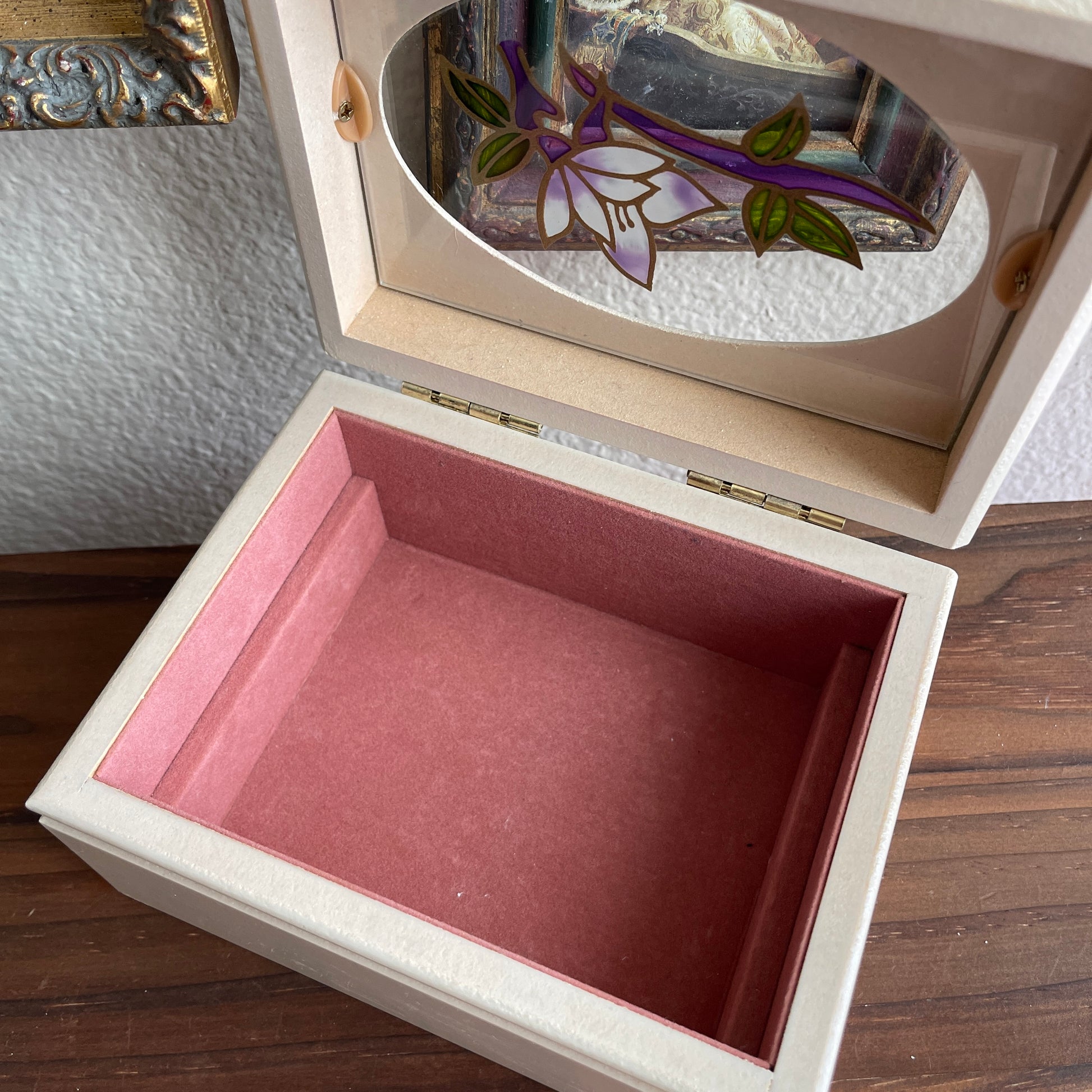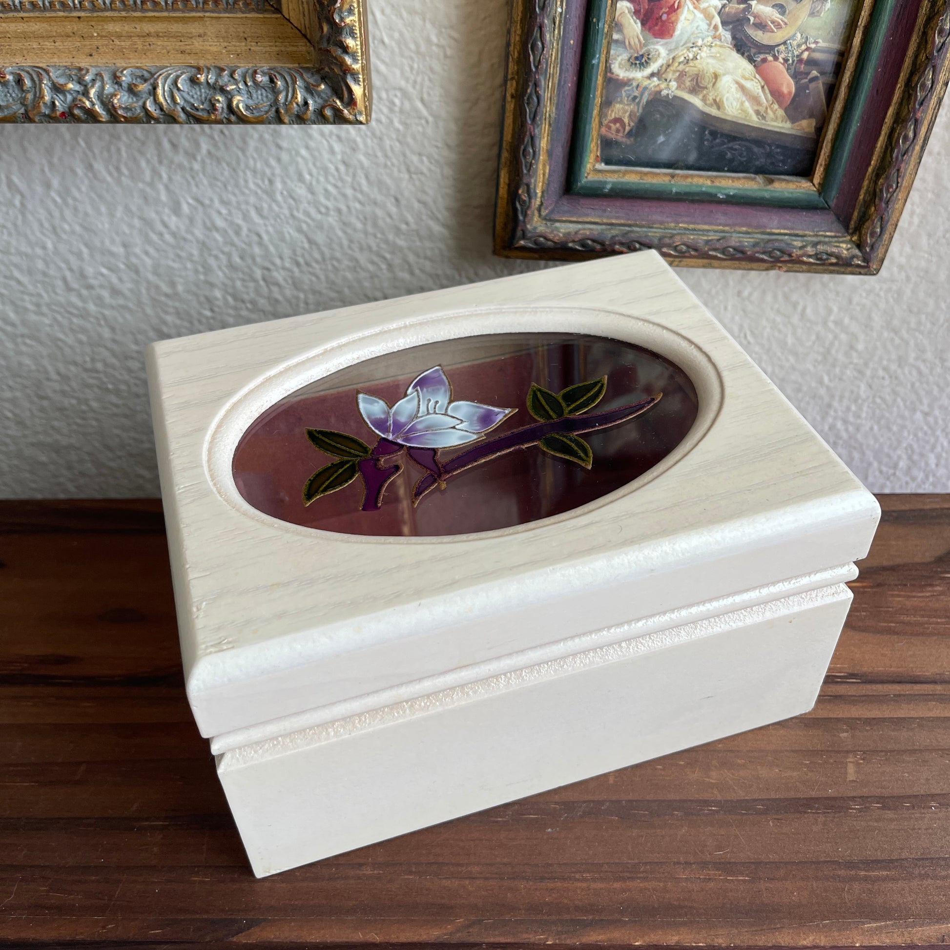 Vintage painted Flower Jewelry Box Wooden with link velvet interior