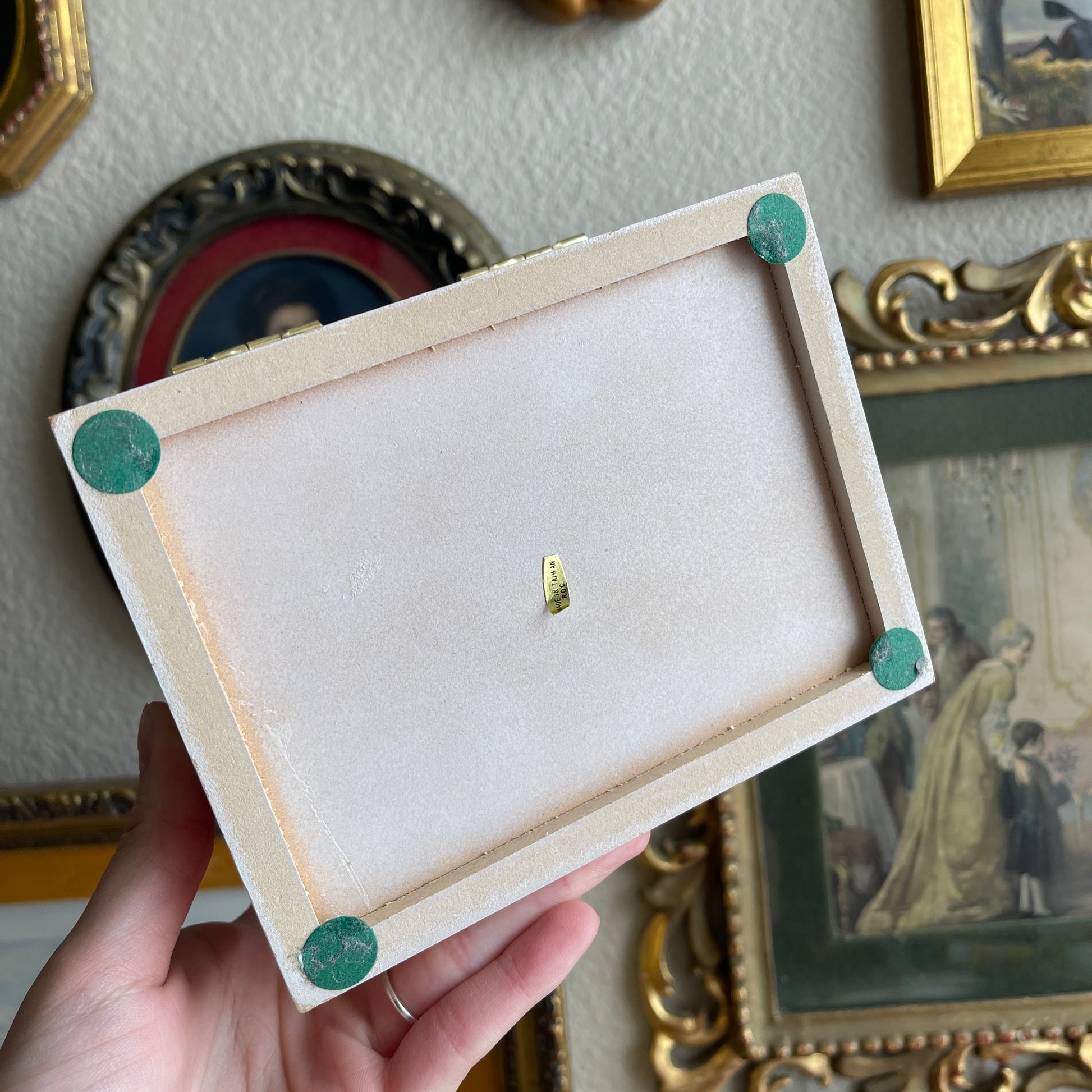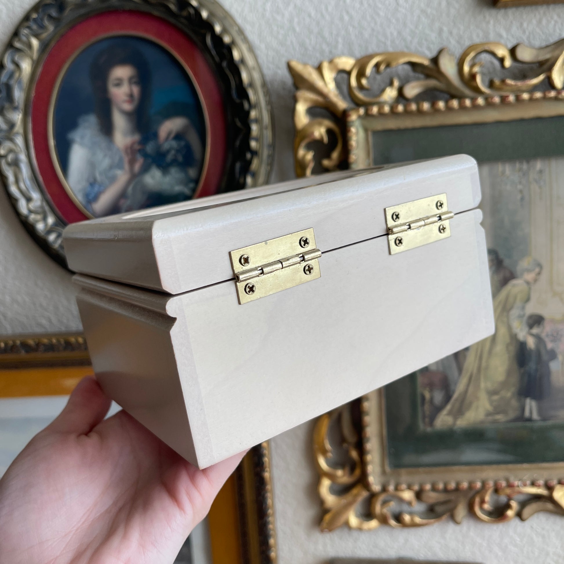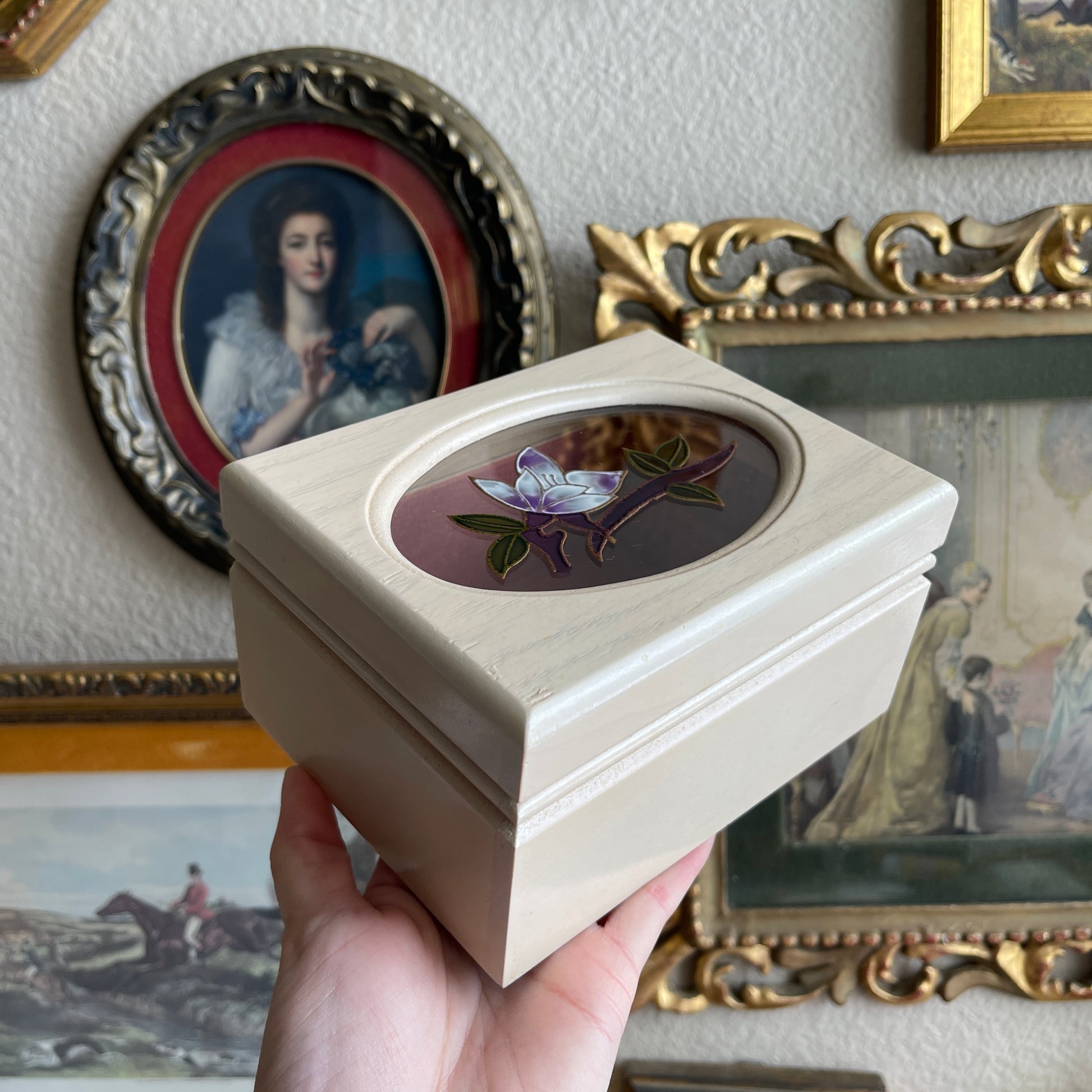 Vintage painted Flower Jewelry Box Wooden with link velvet interior