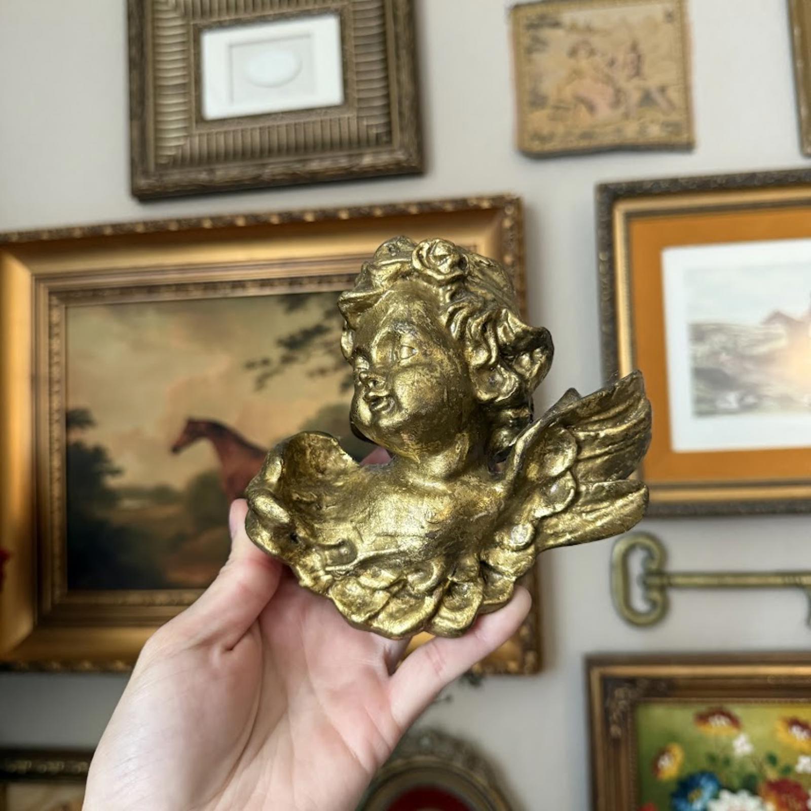 Vintage Plaster Cherub Figurine