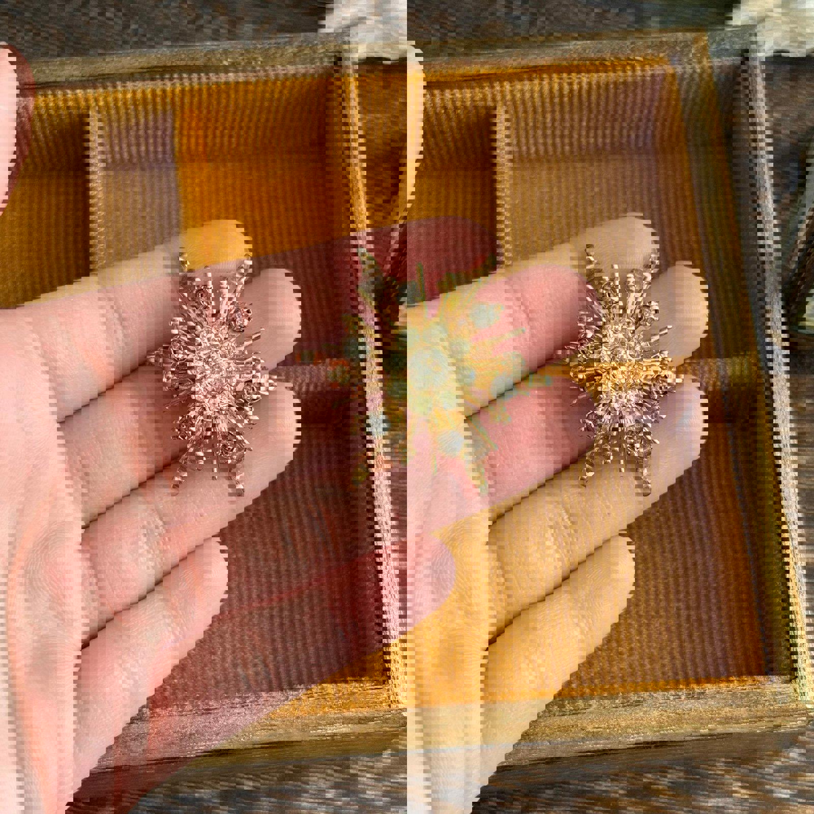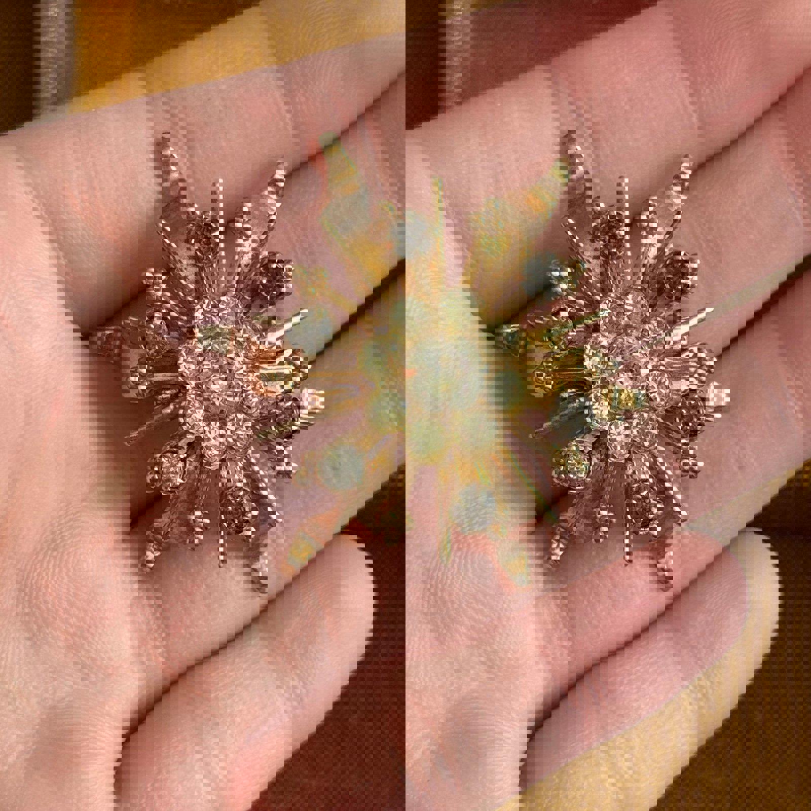Vintage Rhinestone Starburst Sun Shaped Brooch Gold Tone brooch & pendant