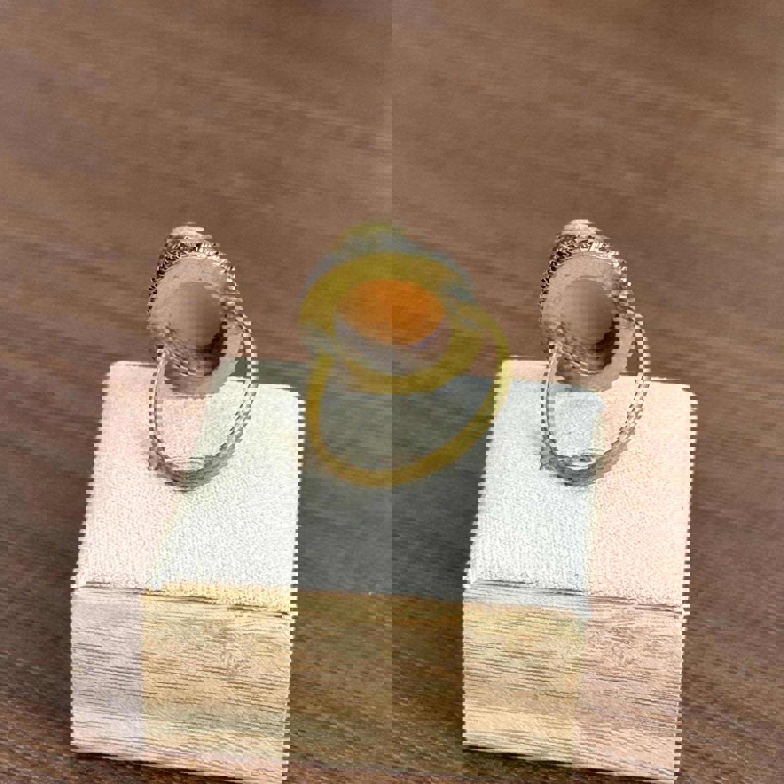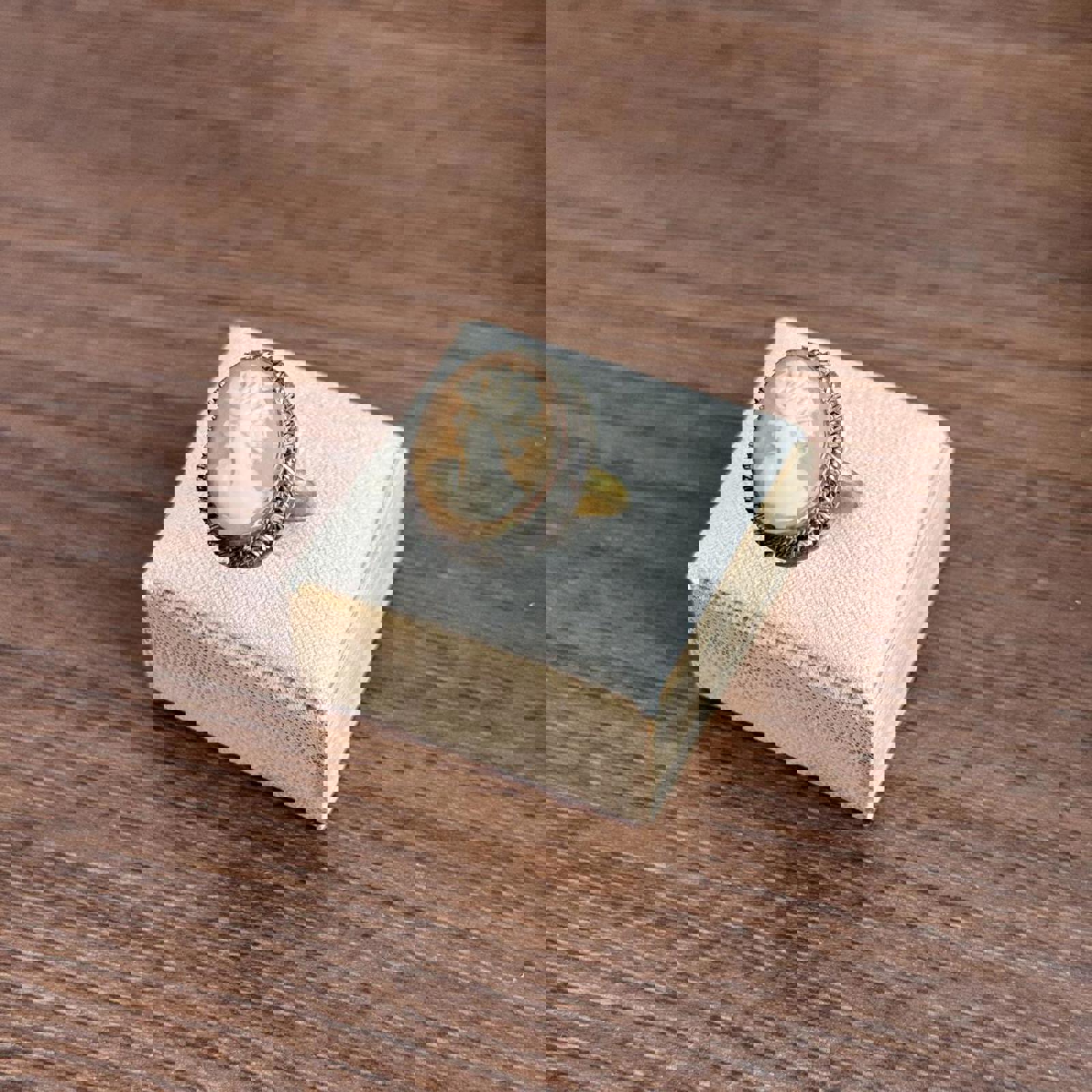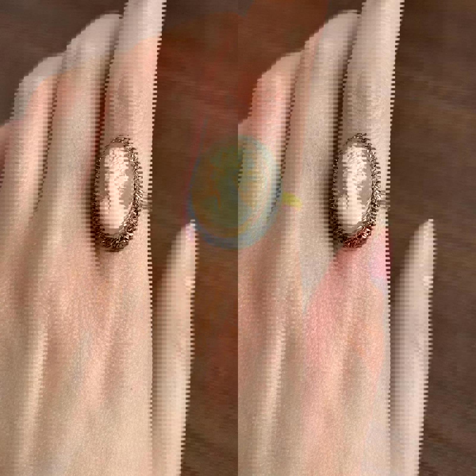 Vintage Shell Cream and brown cameo ring with a touch of vintage charm